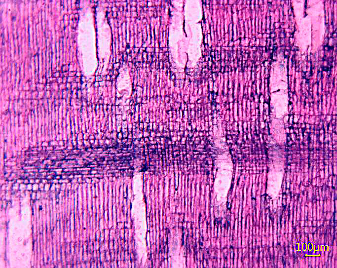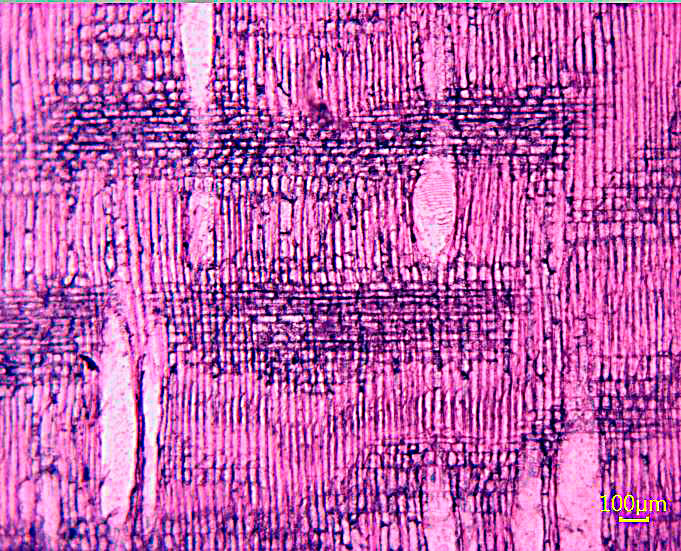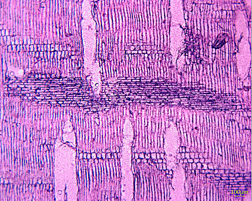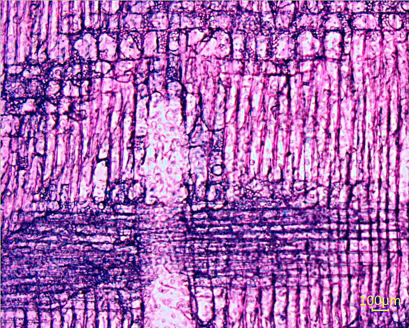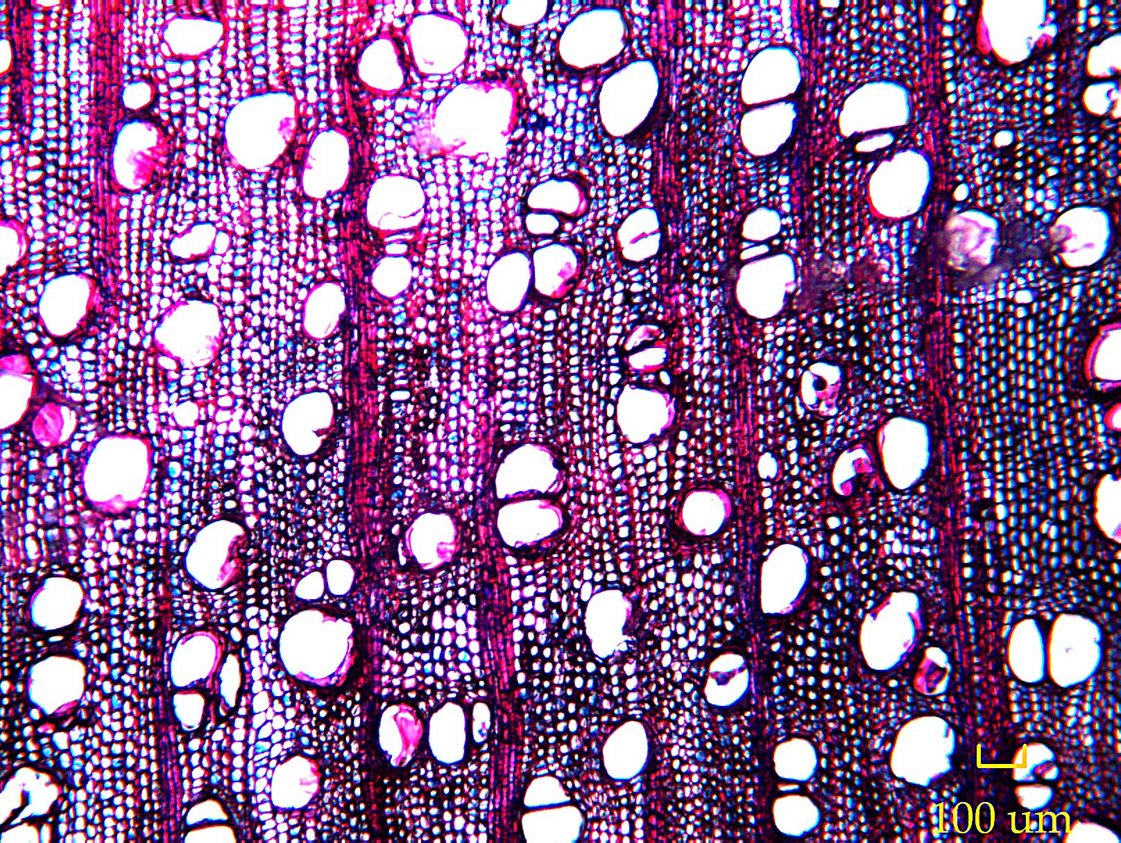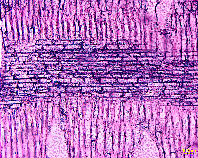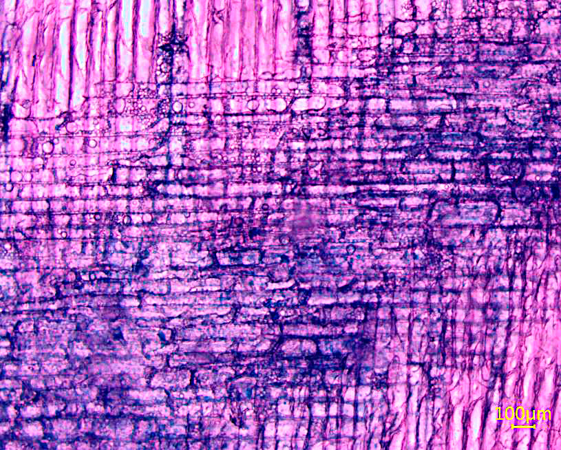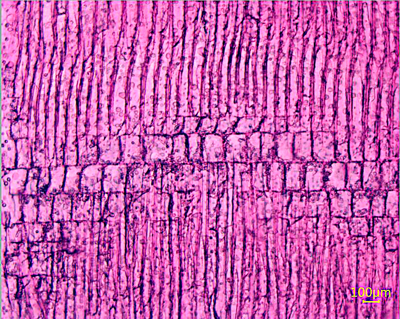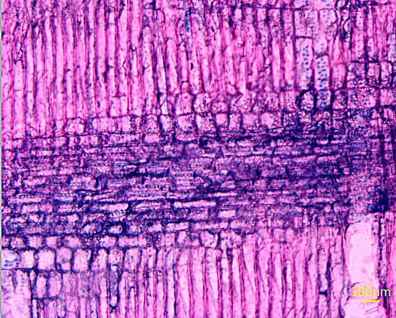- 100 - Radios con porciones multiseriadas y porciones uniseriadas.