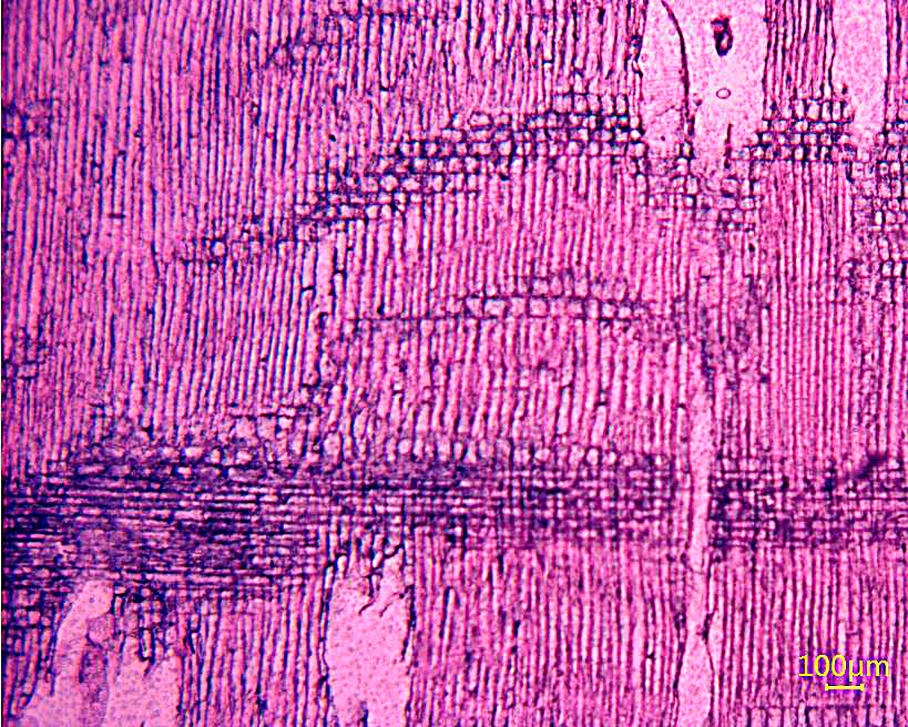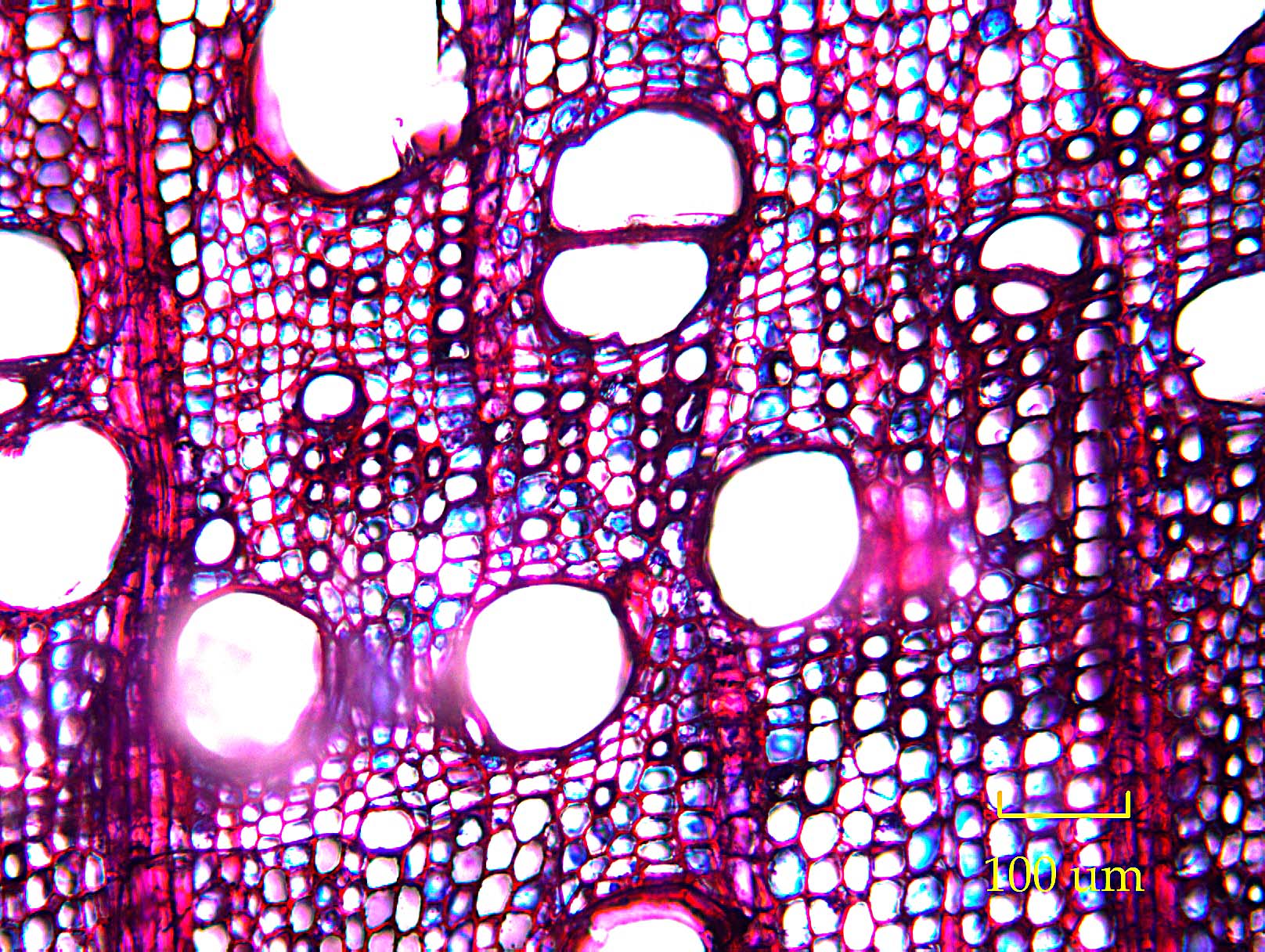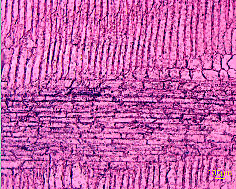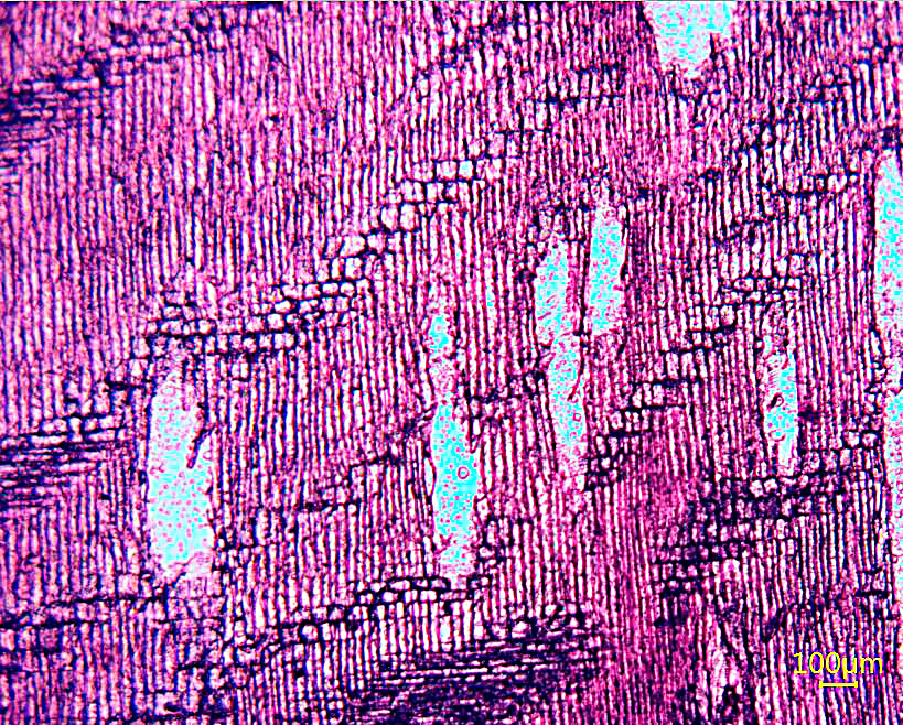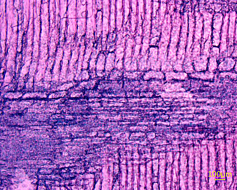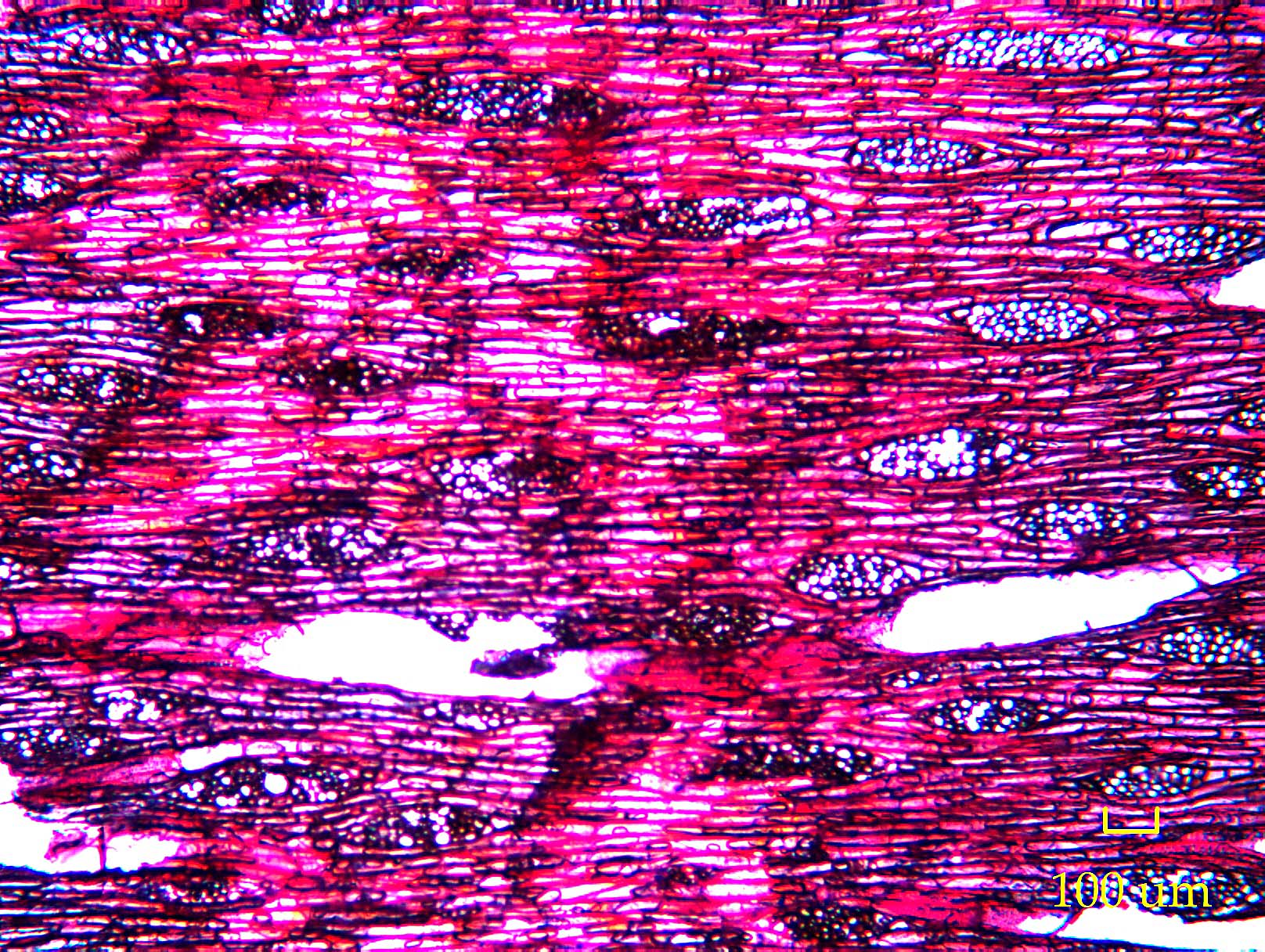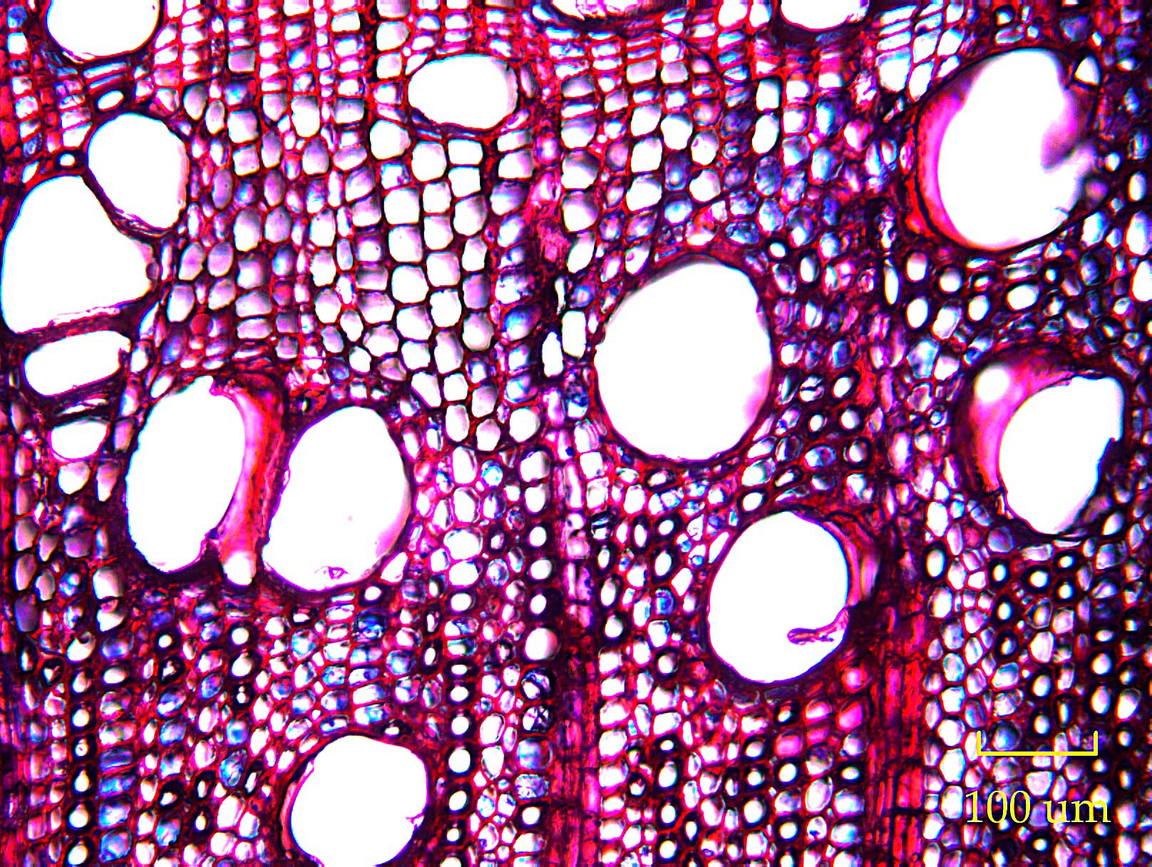 - 100 - Radios con porciones multiseriadas y porciones uniseriadas.