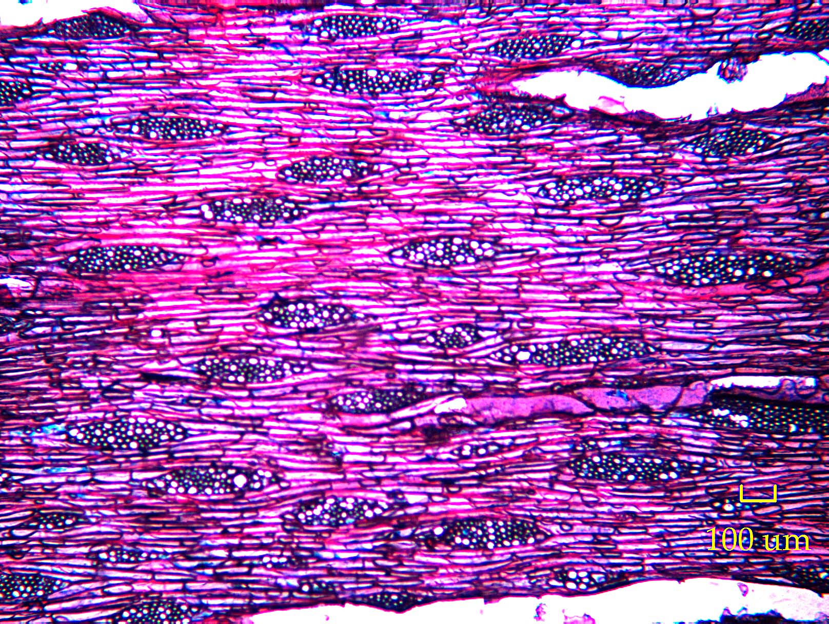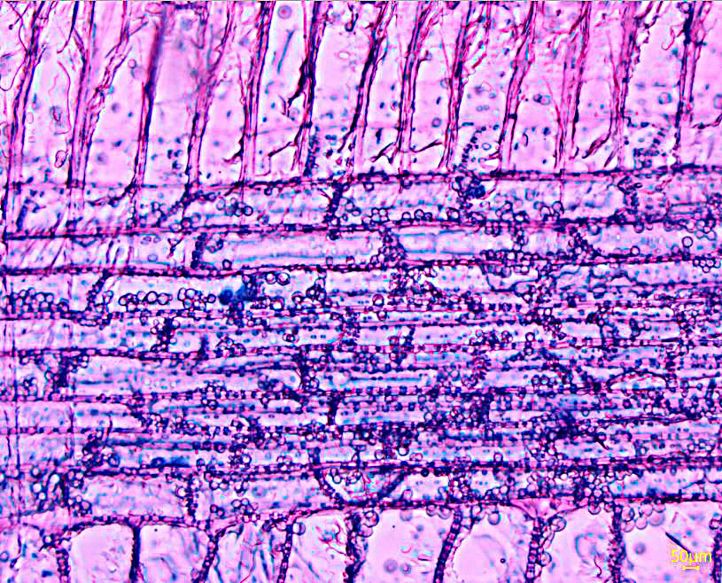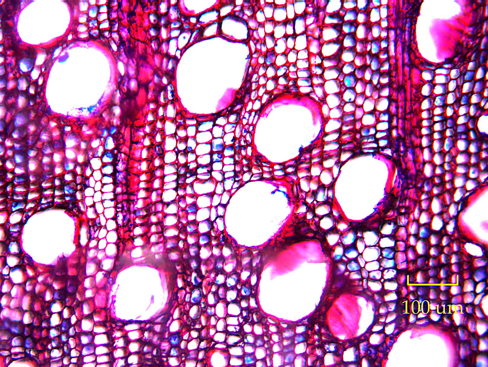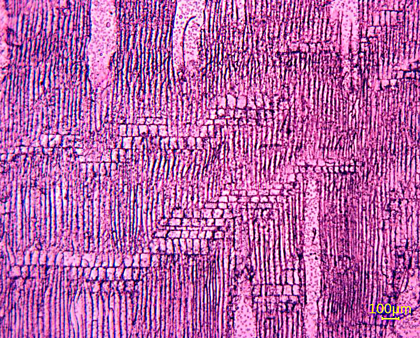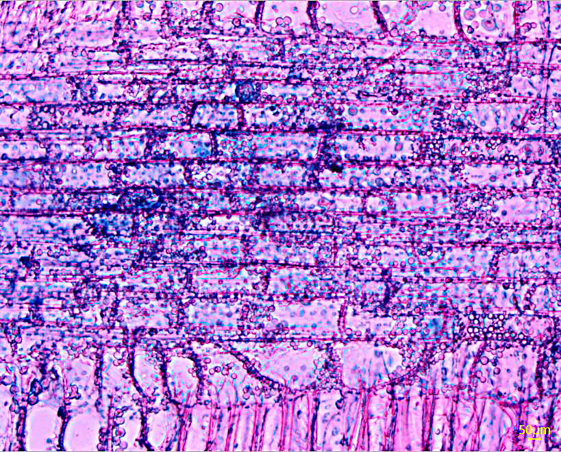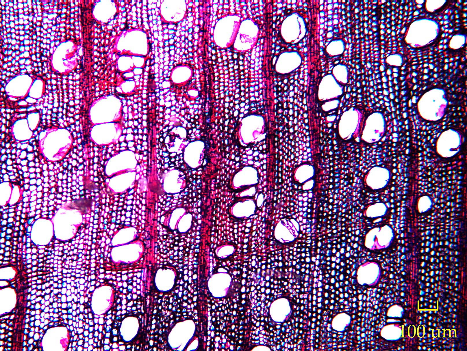 - 100 - Radios con porciones multiseriadas y porciones uniseriadas.