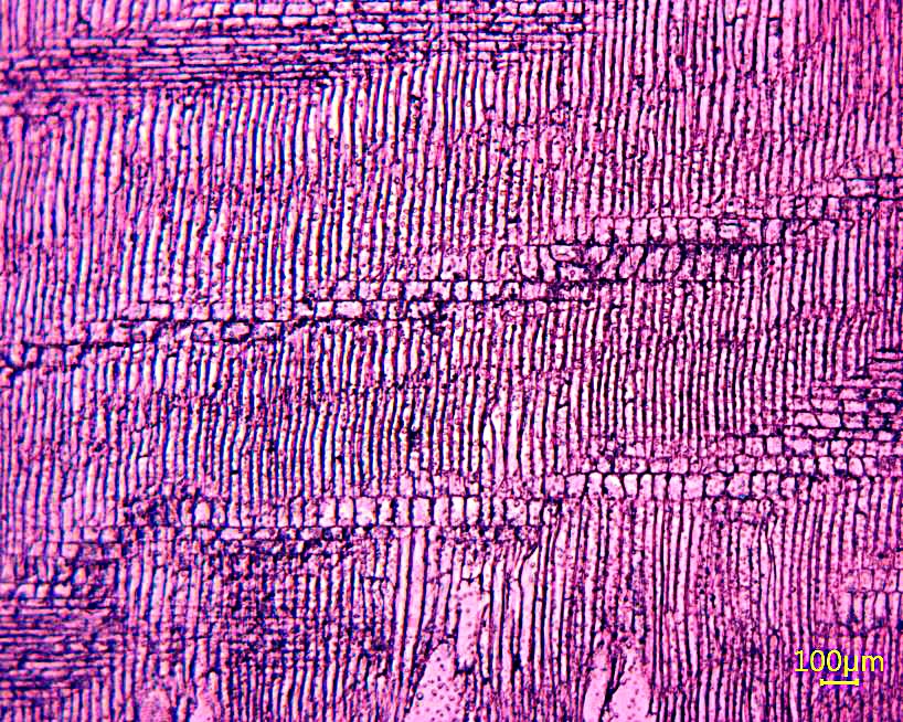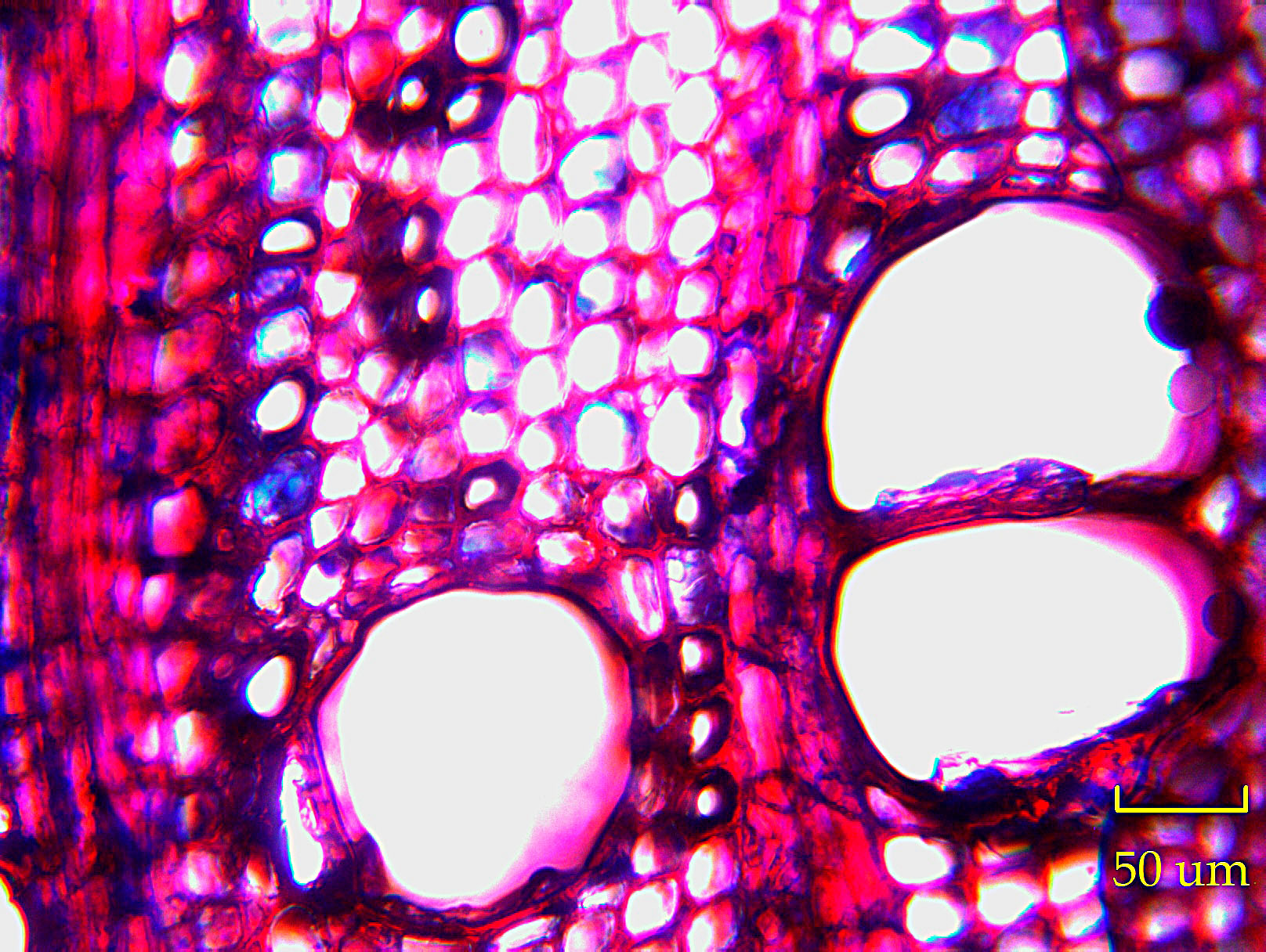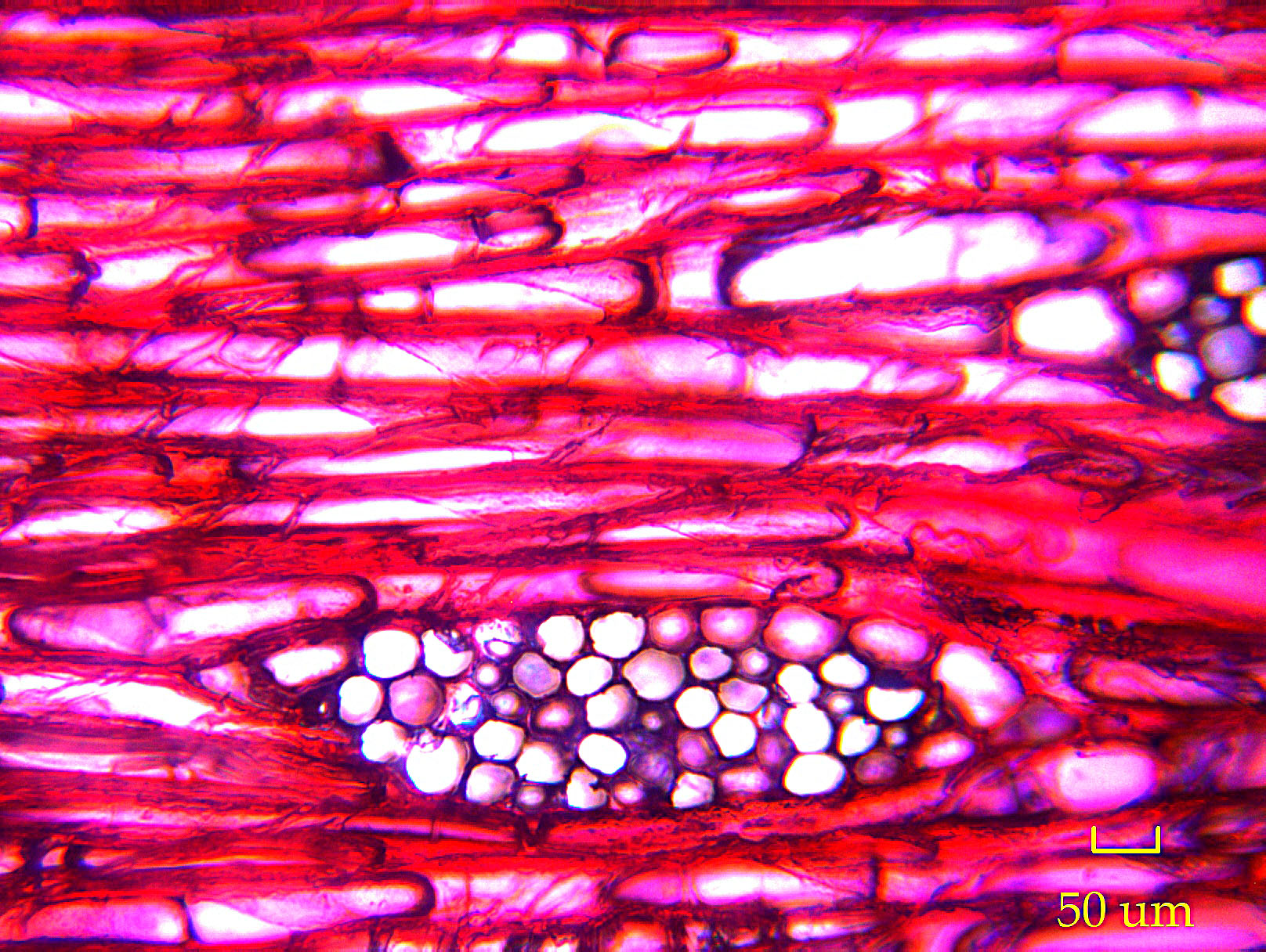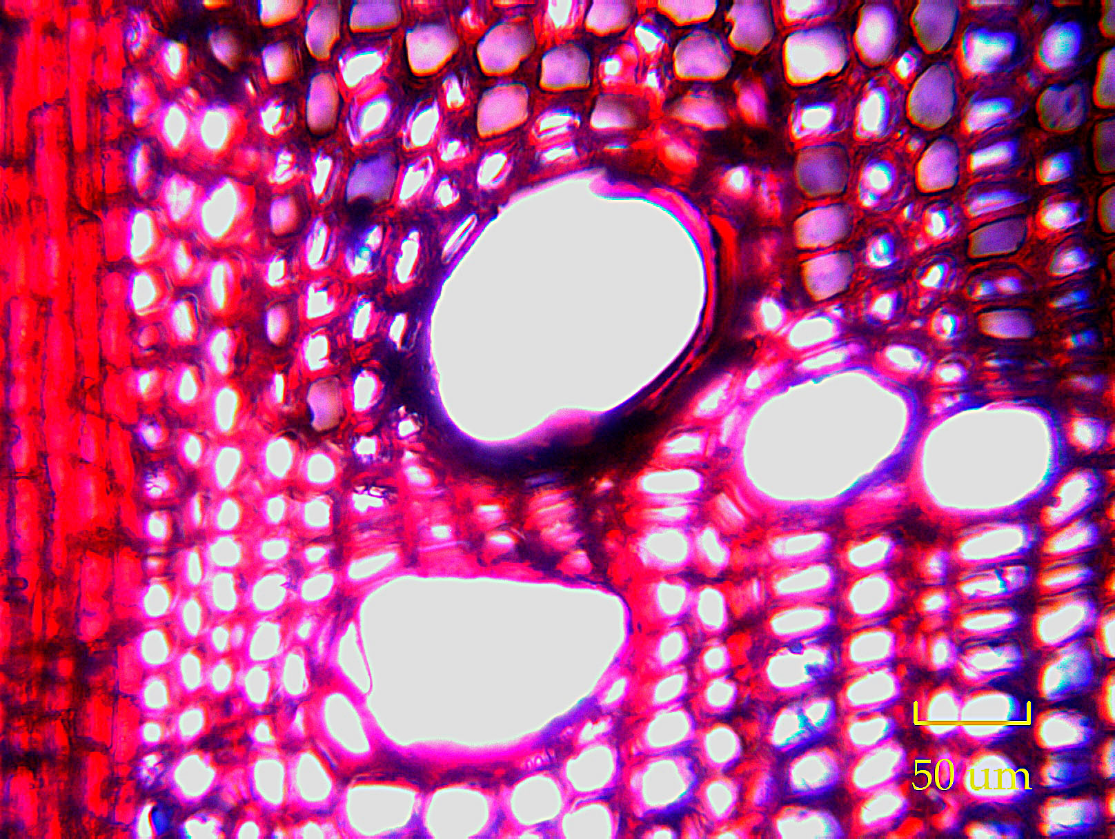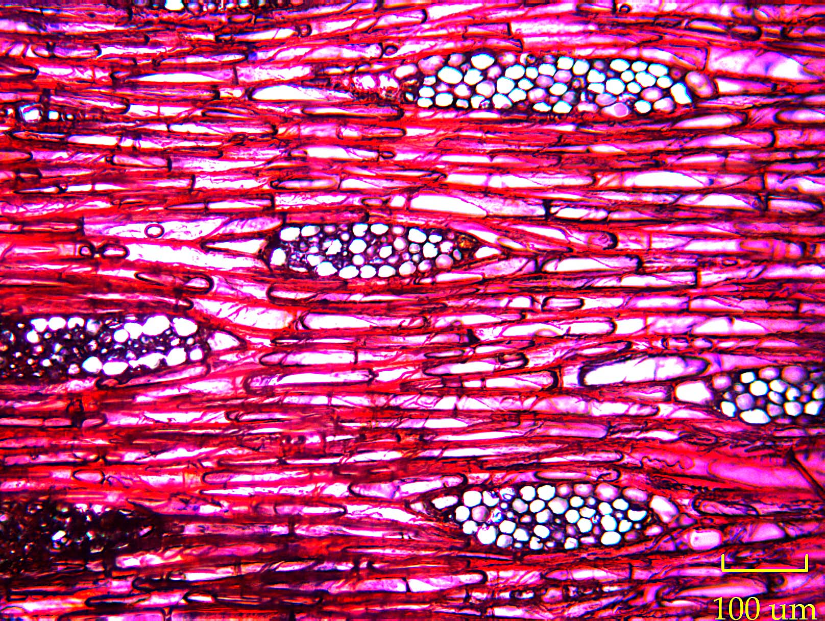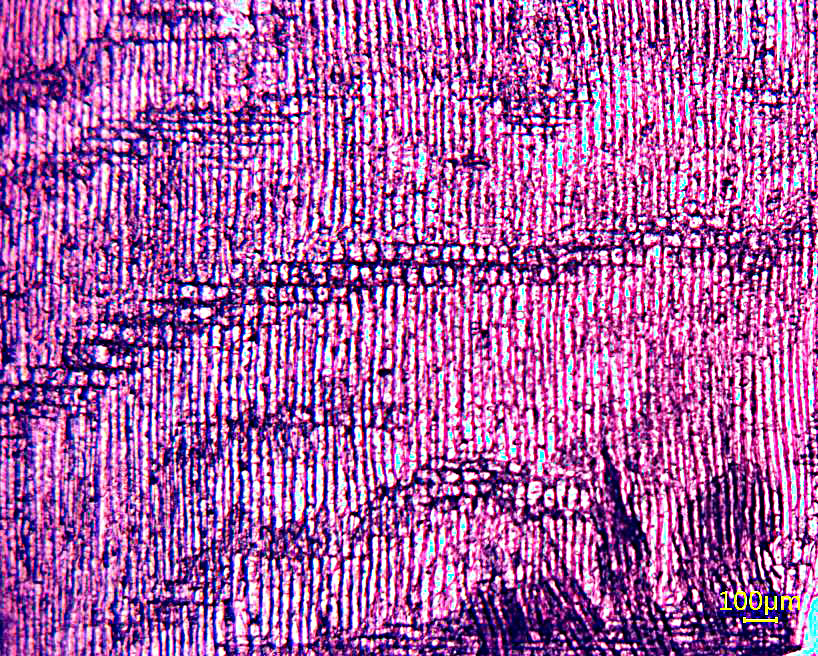 - 100 - Radios con porciones multiseriadas y porciones uniseriadas.