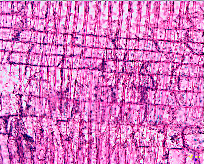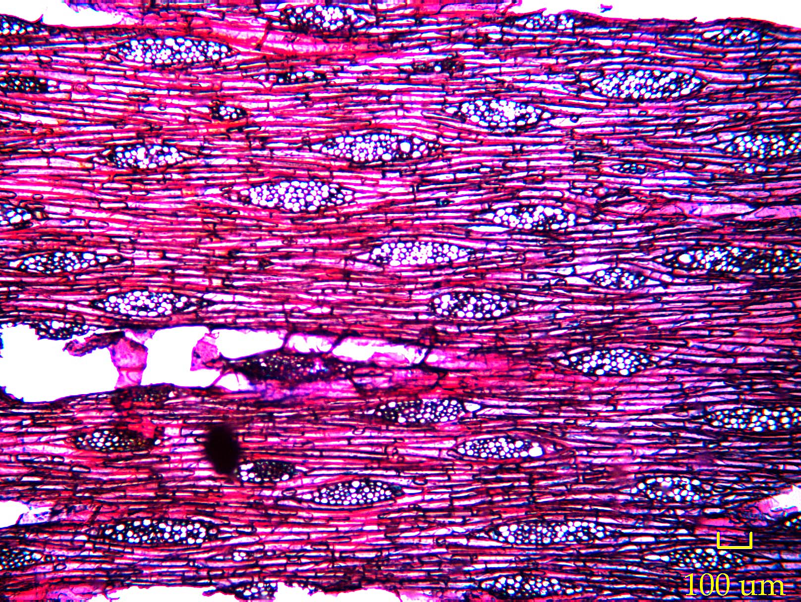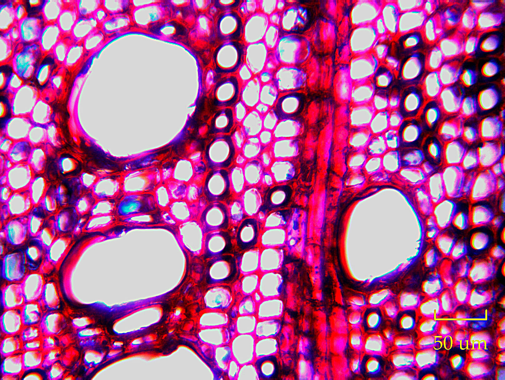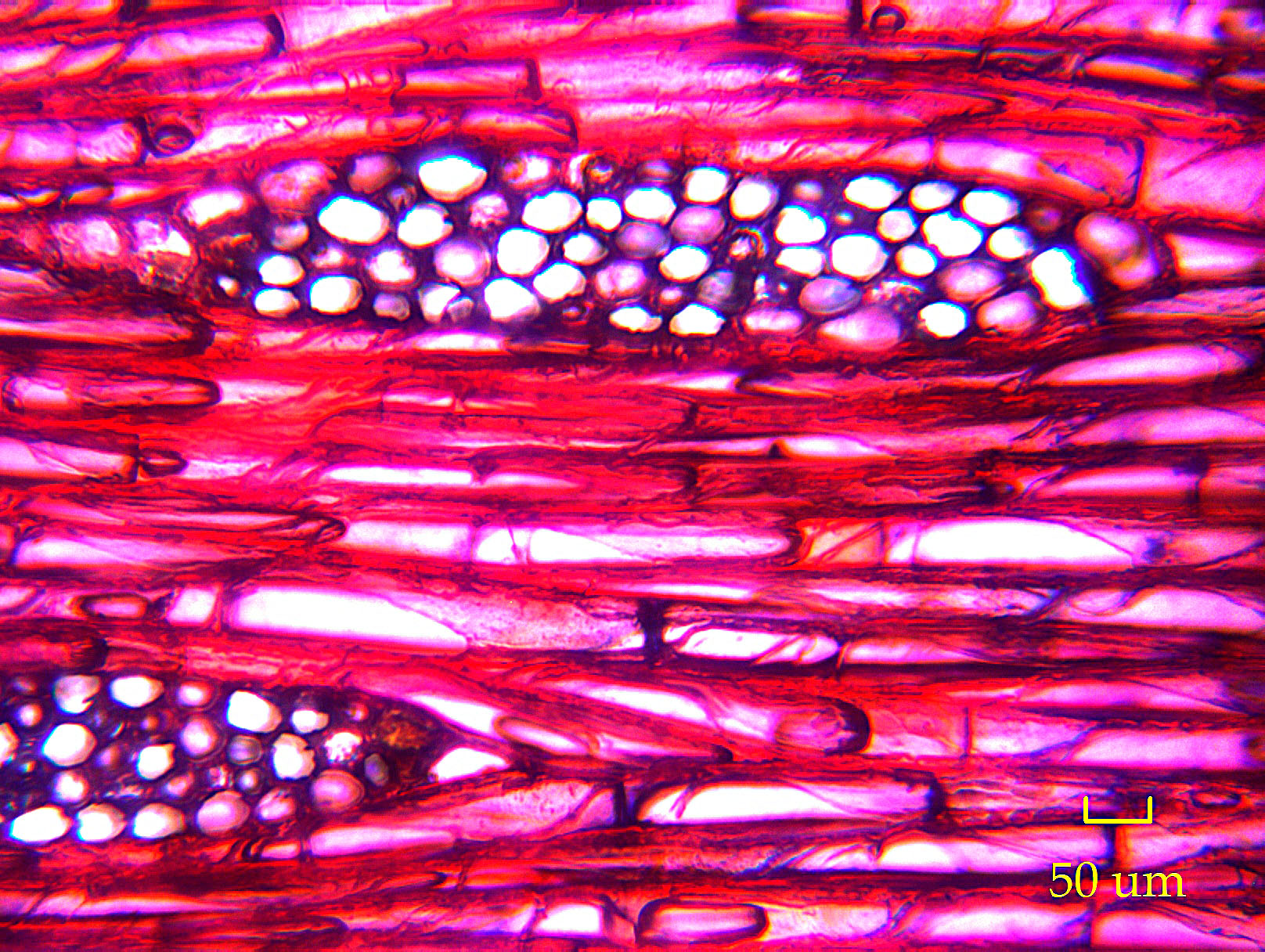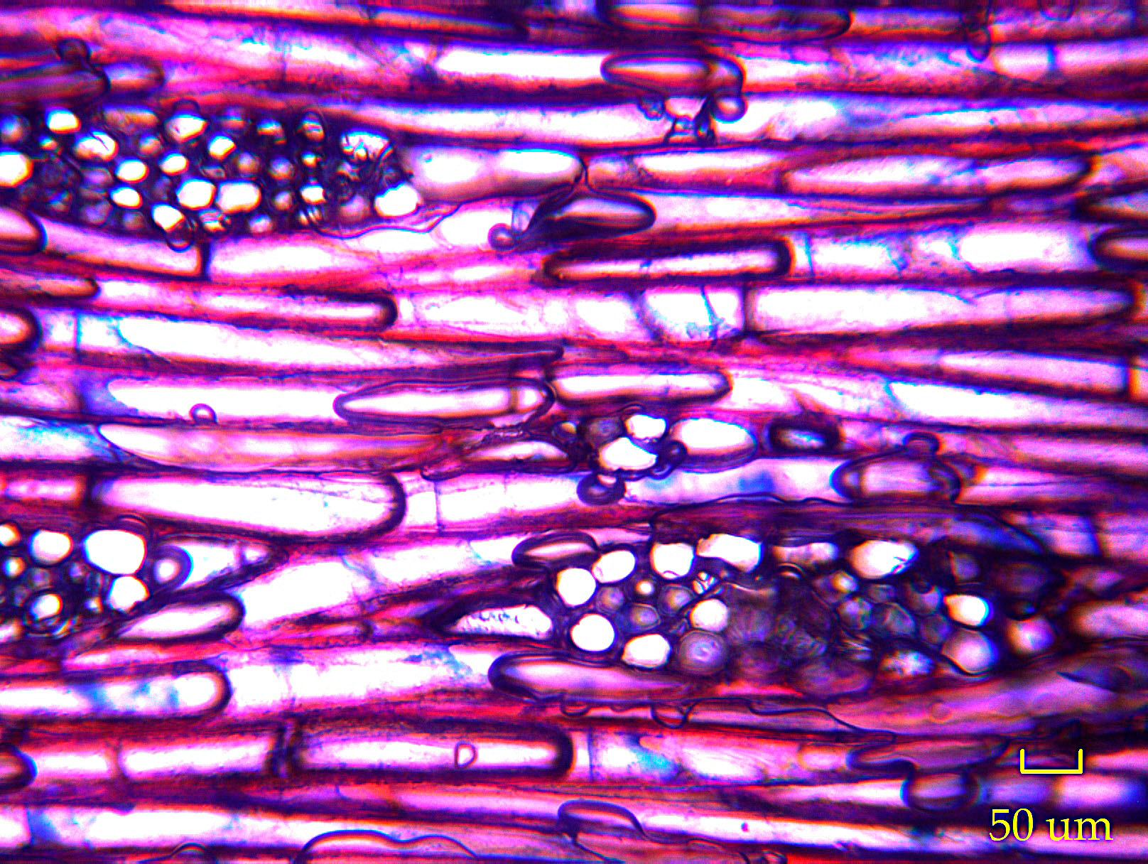 - 100 - Radios con porciones multiseriadas y porciones uniseriadas.