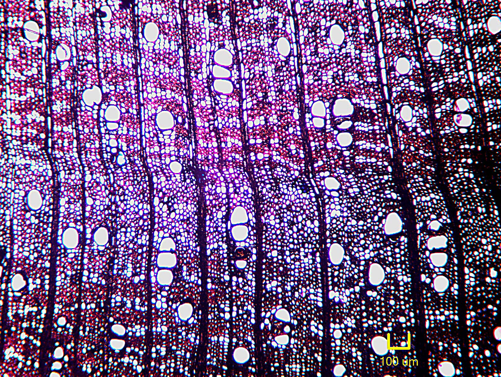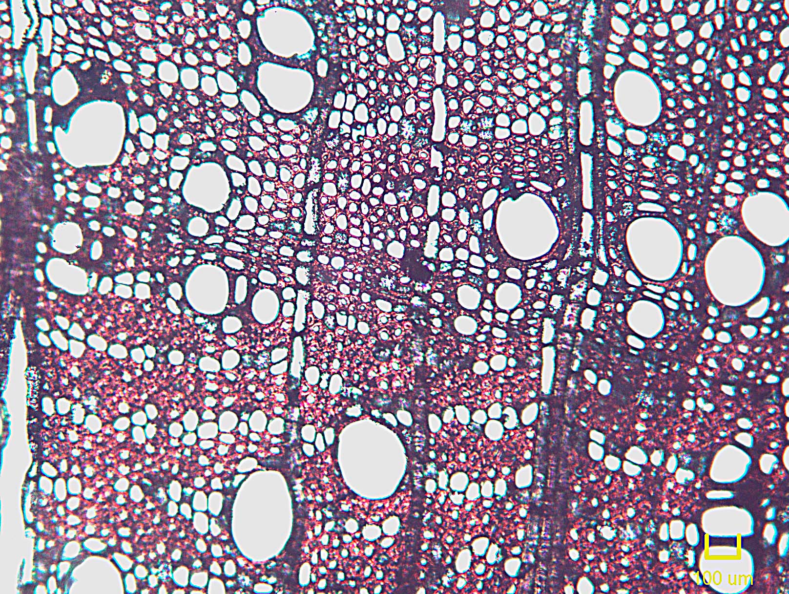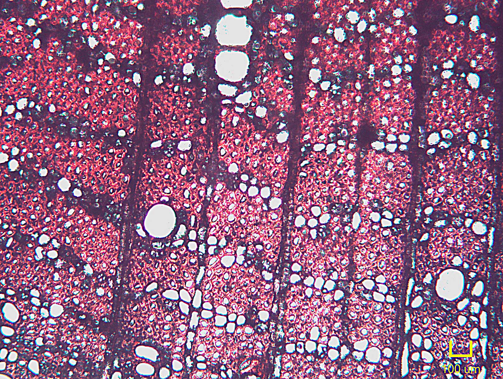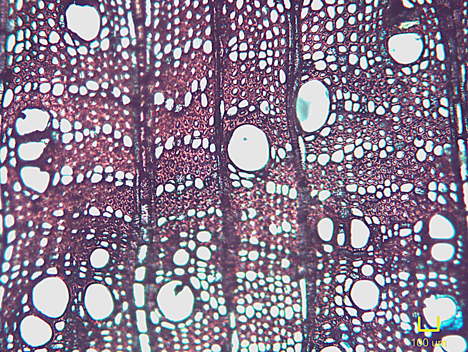 - 7 - Vasos (poros) en patrones radiales o diagonales