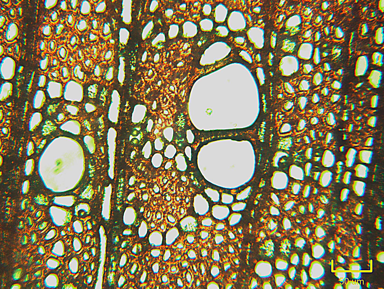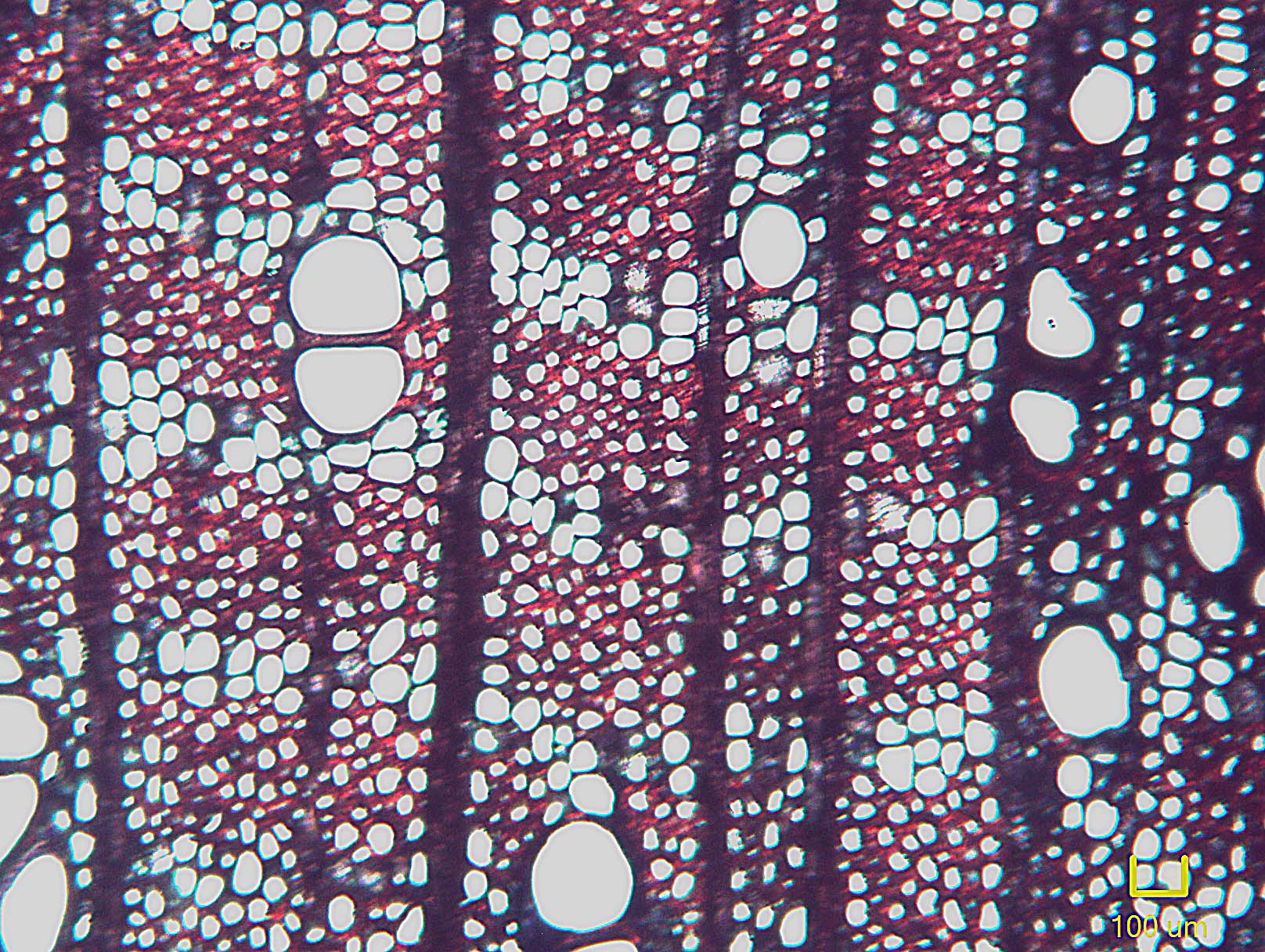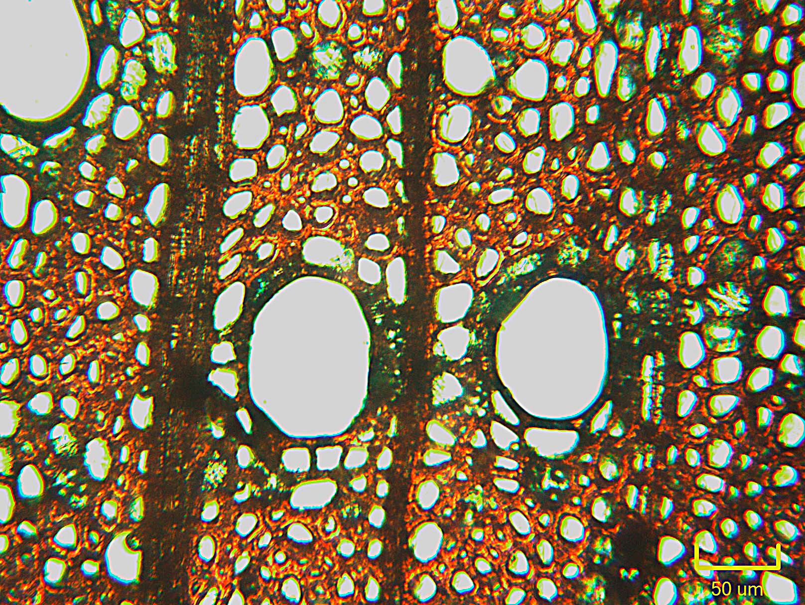 - 7 - Vasos (poros) en patrones radiales o diagonales