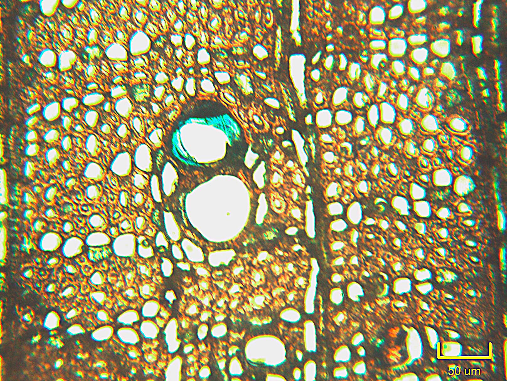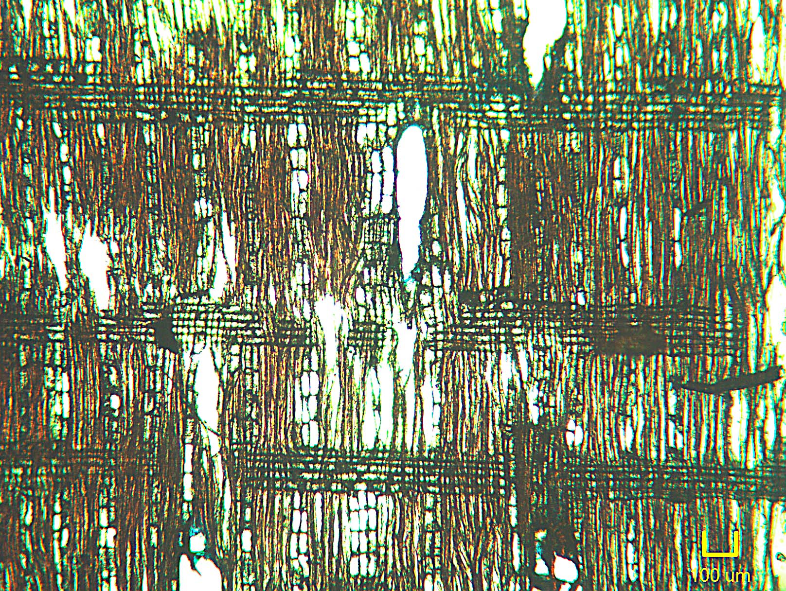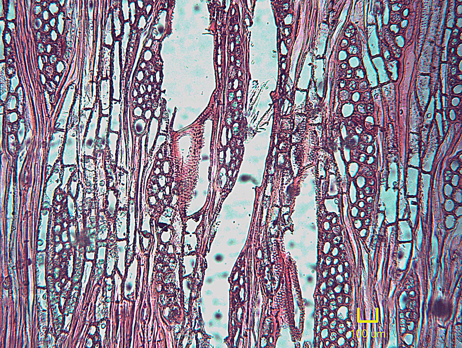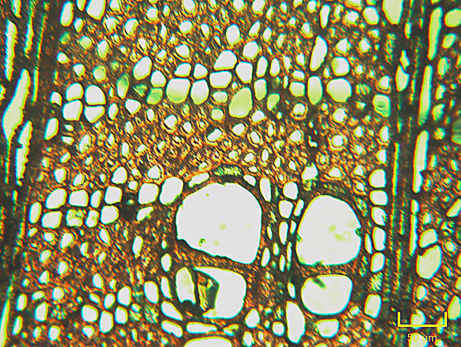 - 7 - Vasos (poros) en patrones radiales o diagonales