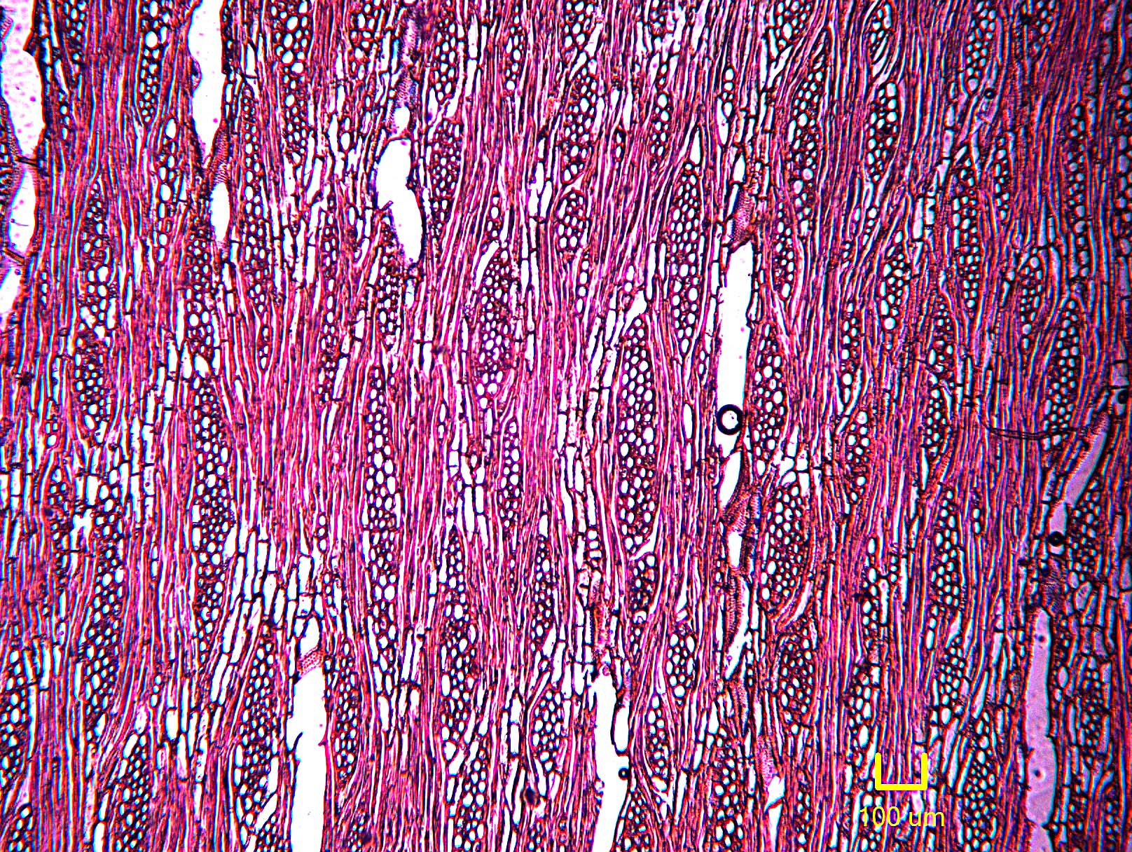 - 92 - Cuatro (3-4) células por hebra de parénquima