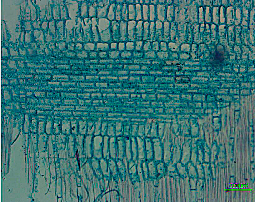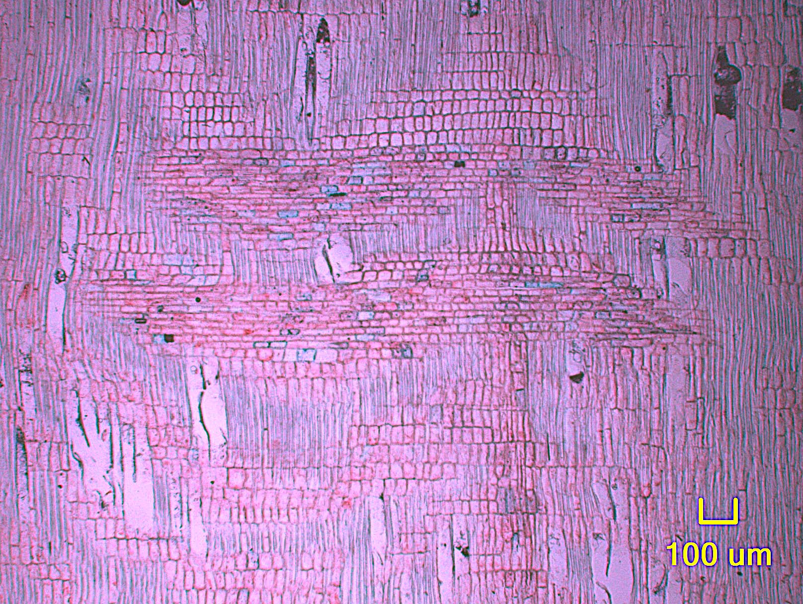 - 108 - Cuerpo del radio con células procumbentes con más de 4 filas de células verticales y/o cuadradas marginales