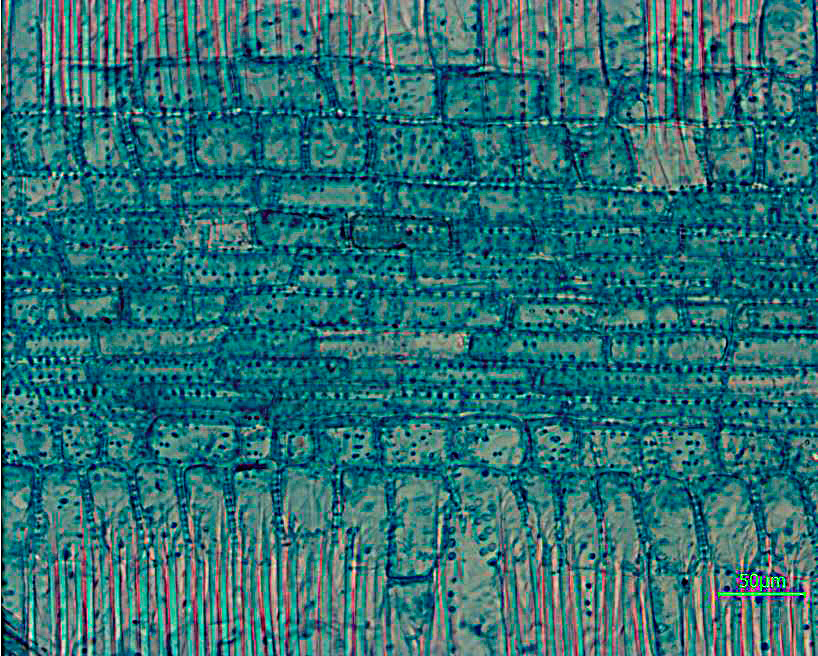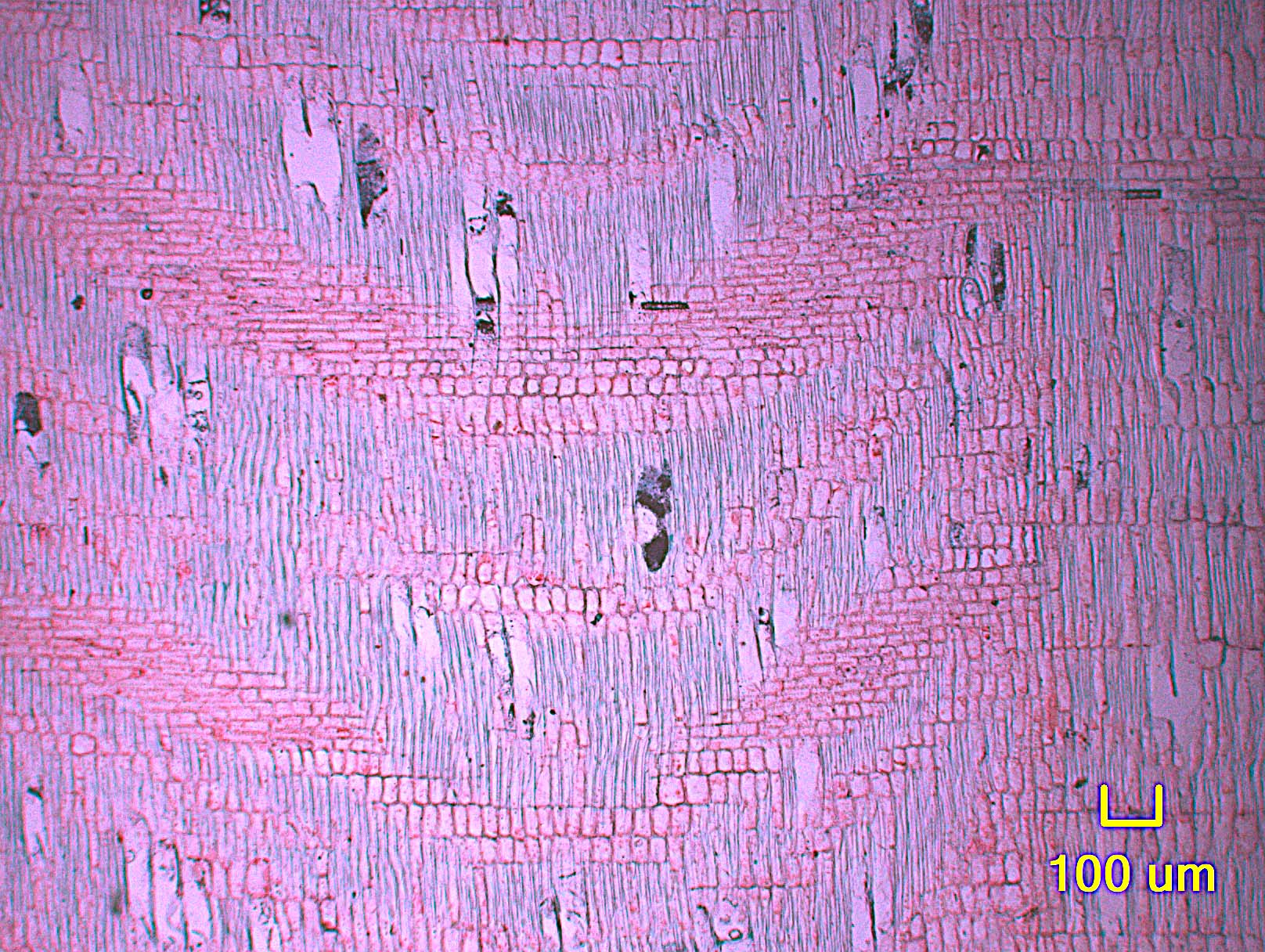 - 7 - Vasos (poros) en patrones radiales o diagonales