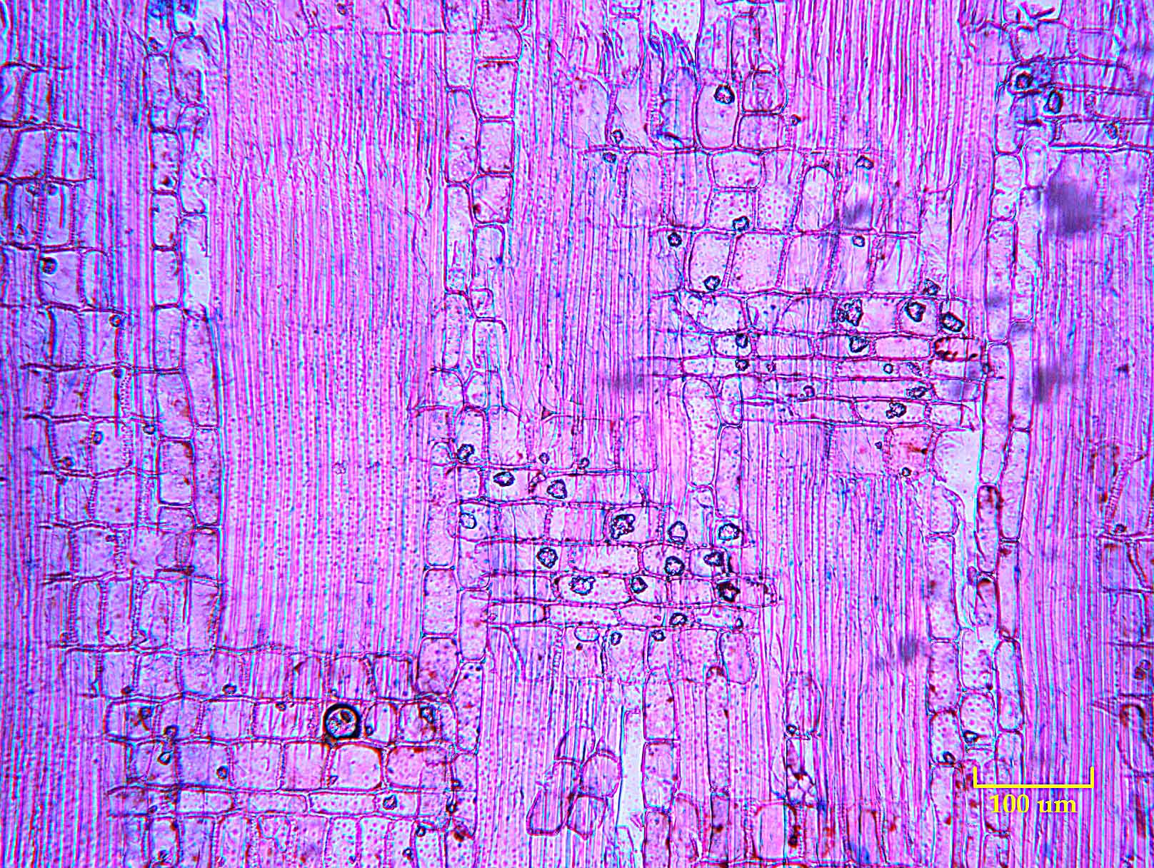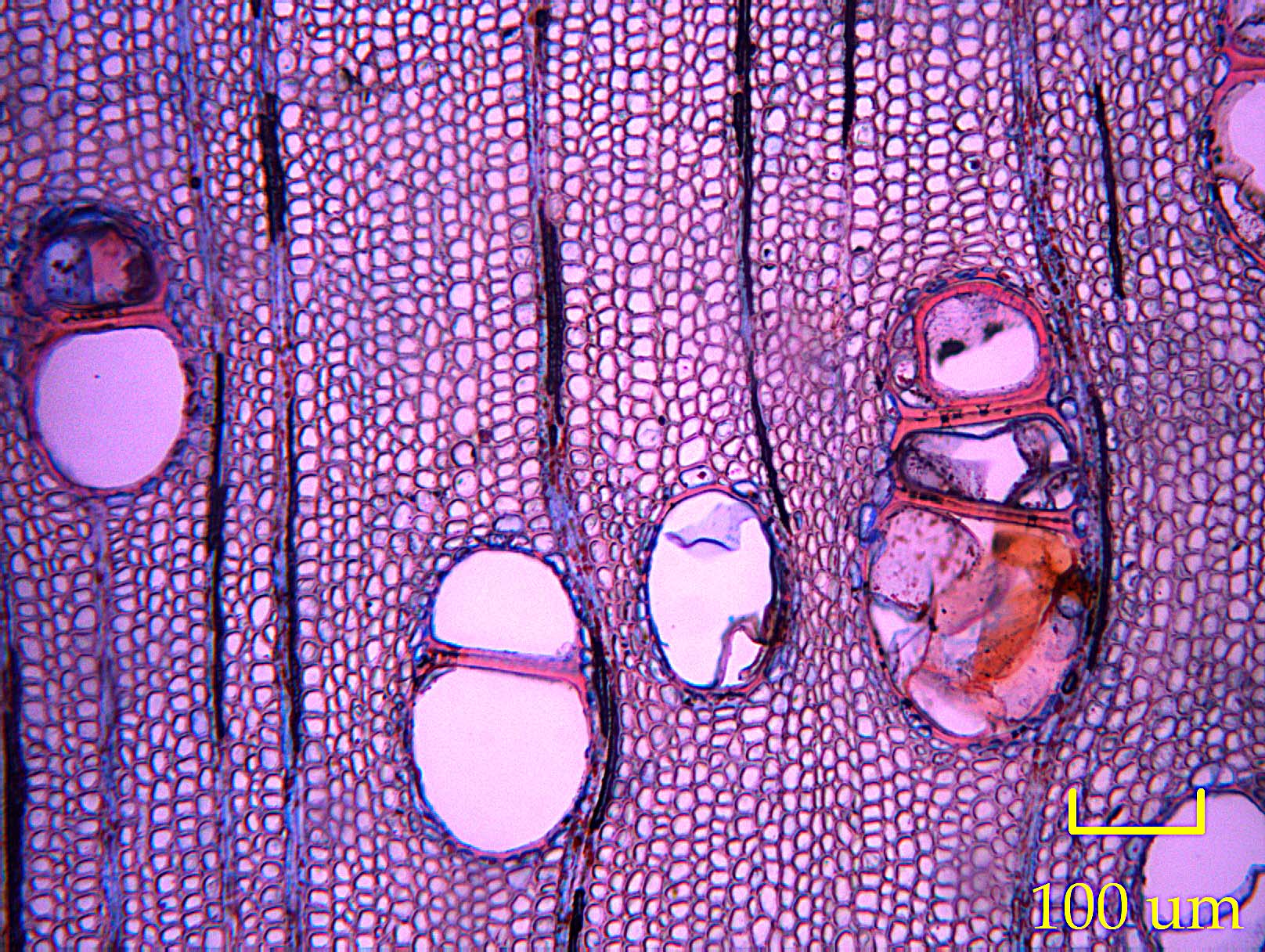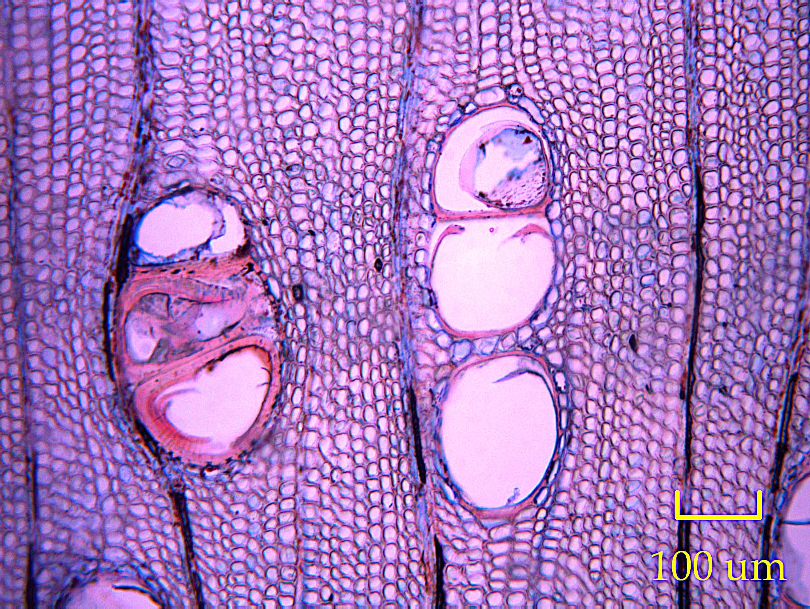 - 7 - Vasos (poros) en patrones radiales o diagonales