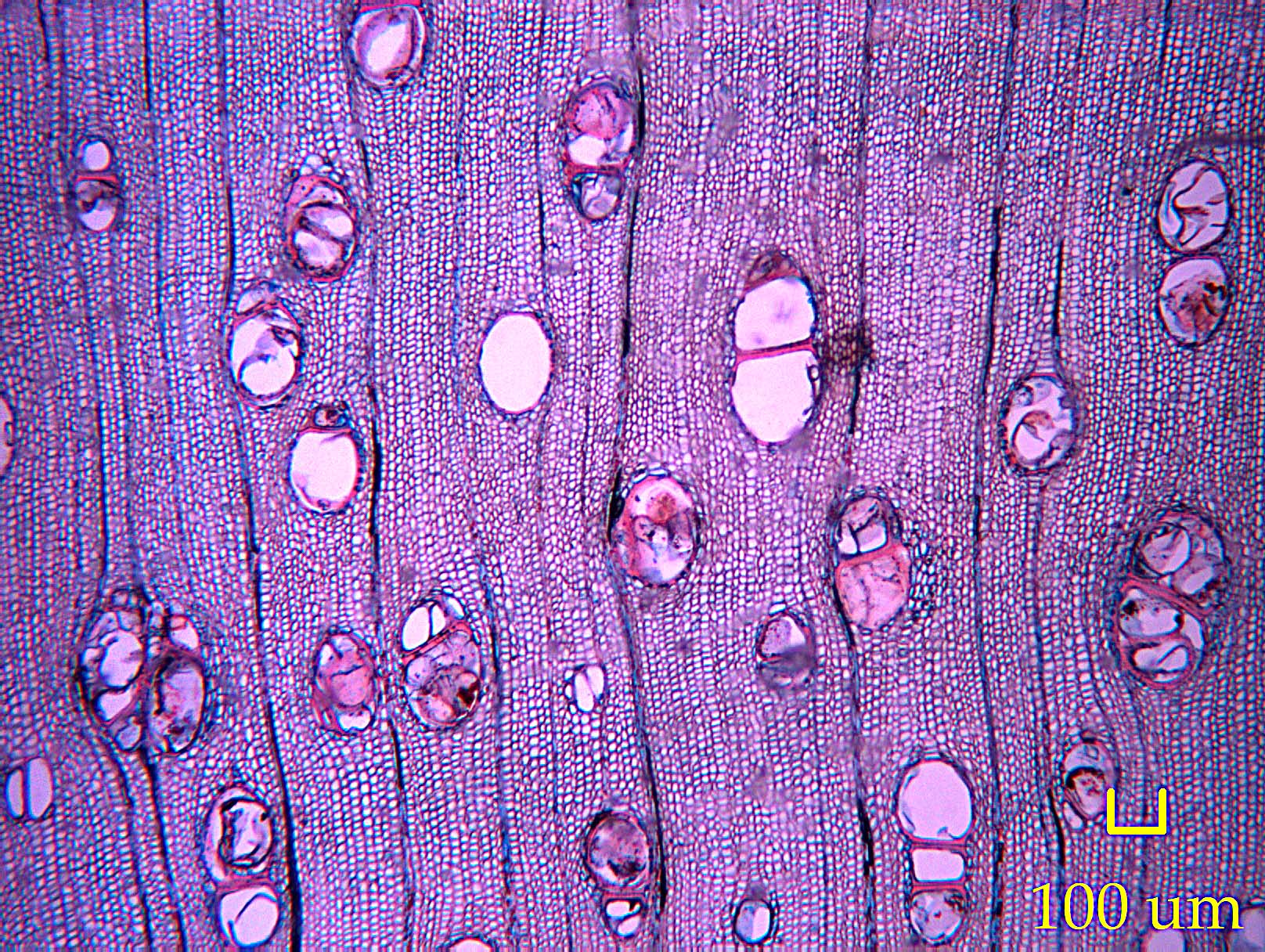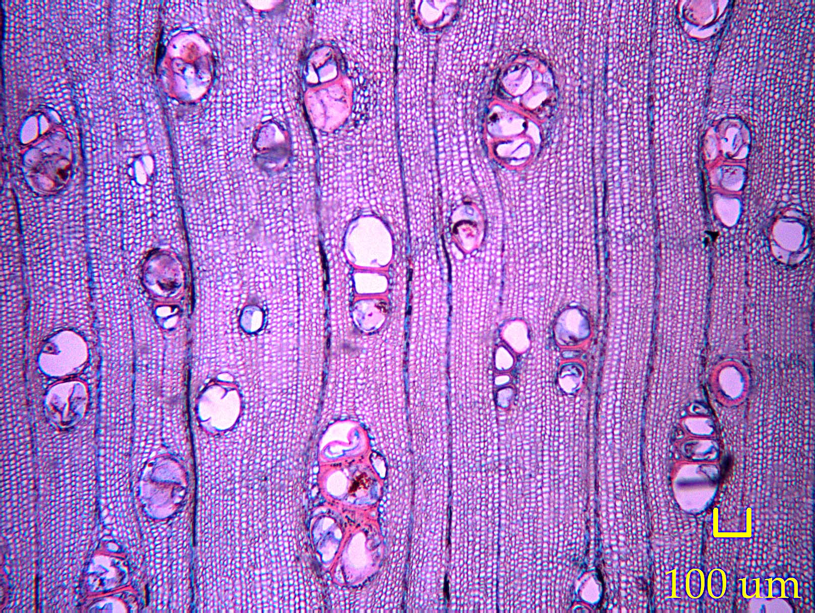 - 10 - Vasos (poros) en grupos radiales de 4 o más