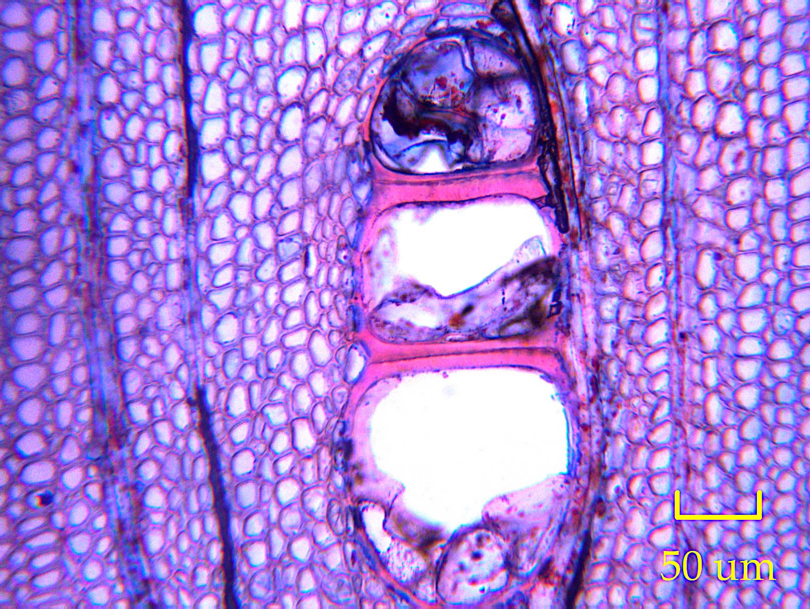 - 109 - Radios con una mezcla de células procumbentes, cuadradas y verticales