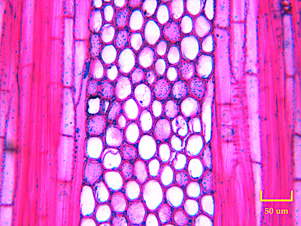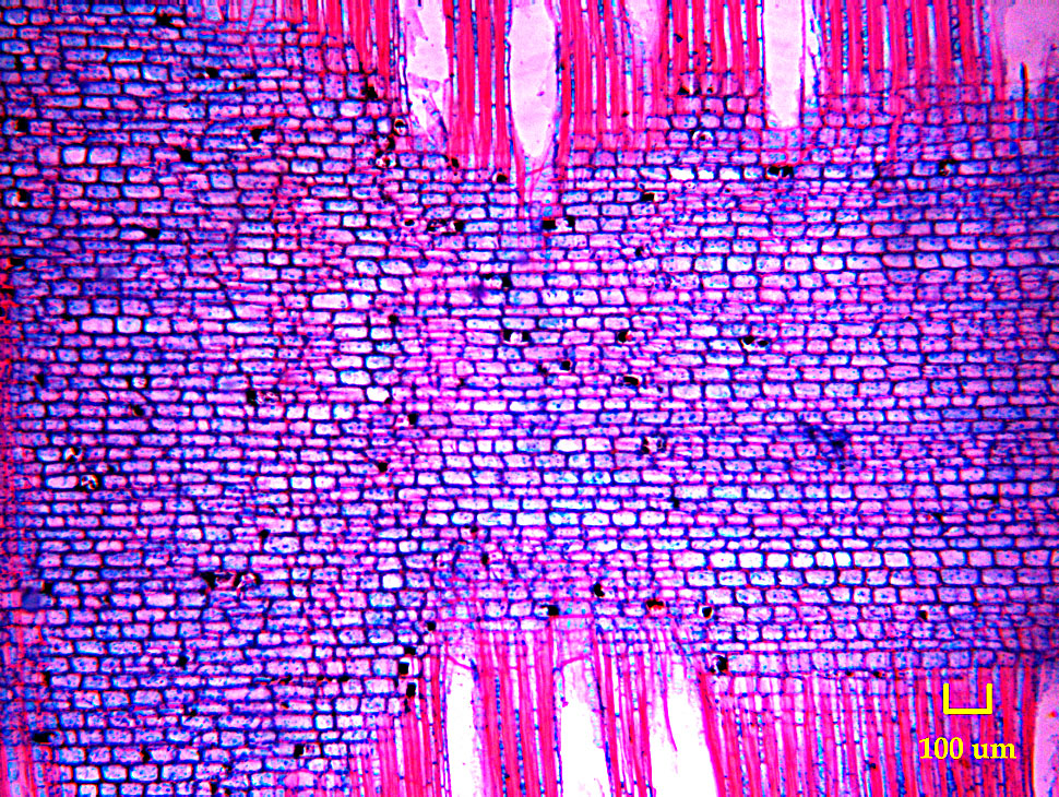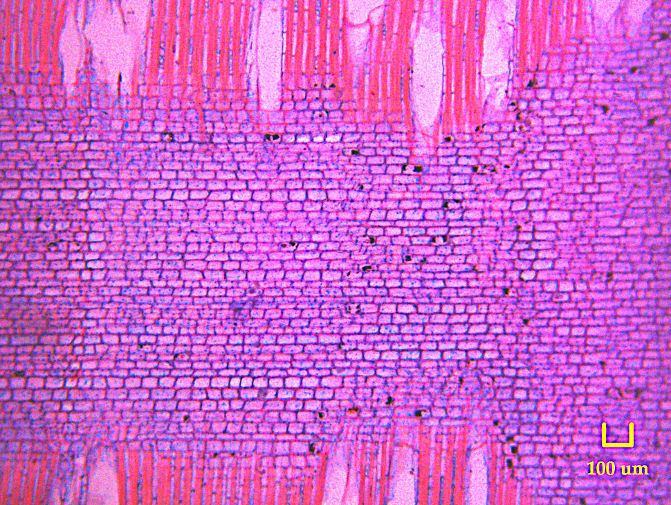 - 107 - Cuerpo del radio con células procumbentes con 2-4 filas de células verticales y/o cuadradas marginales