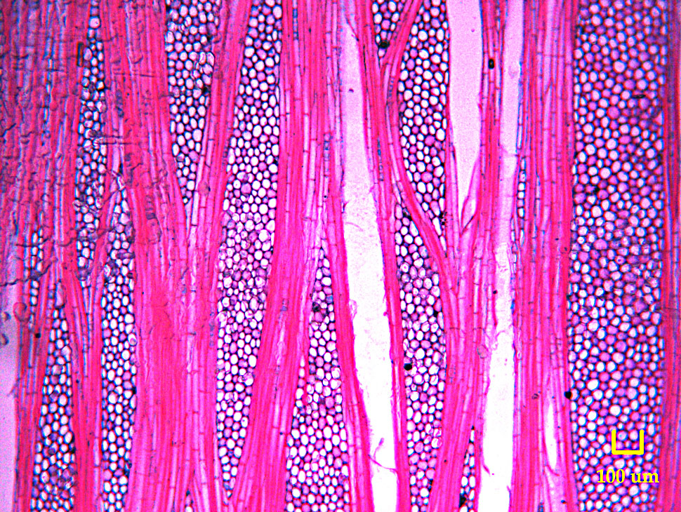- 93 - Ocho (5-8) células por hebra de parénquima