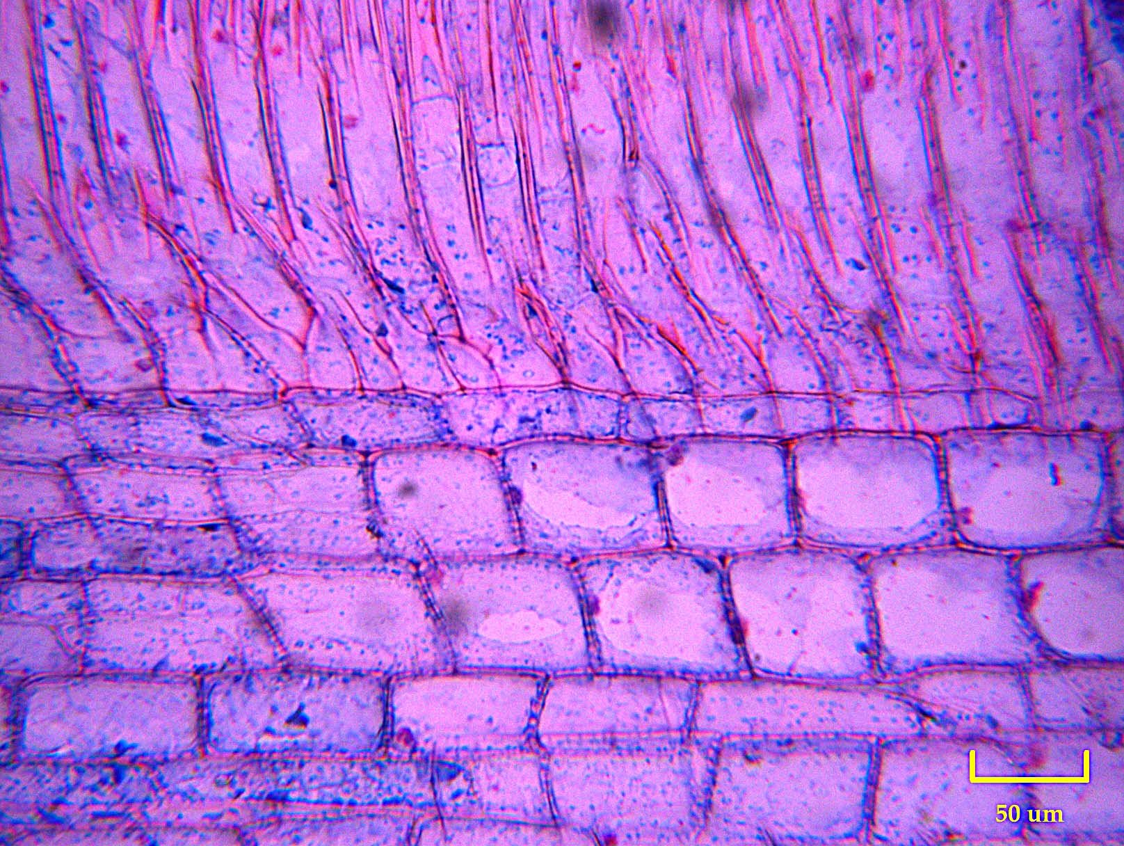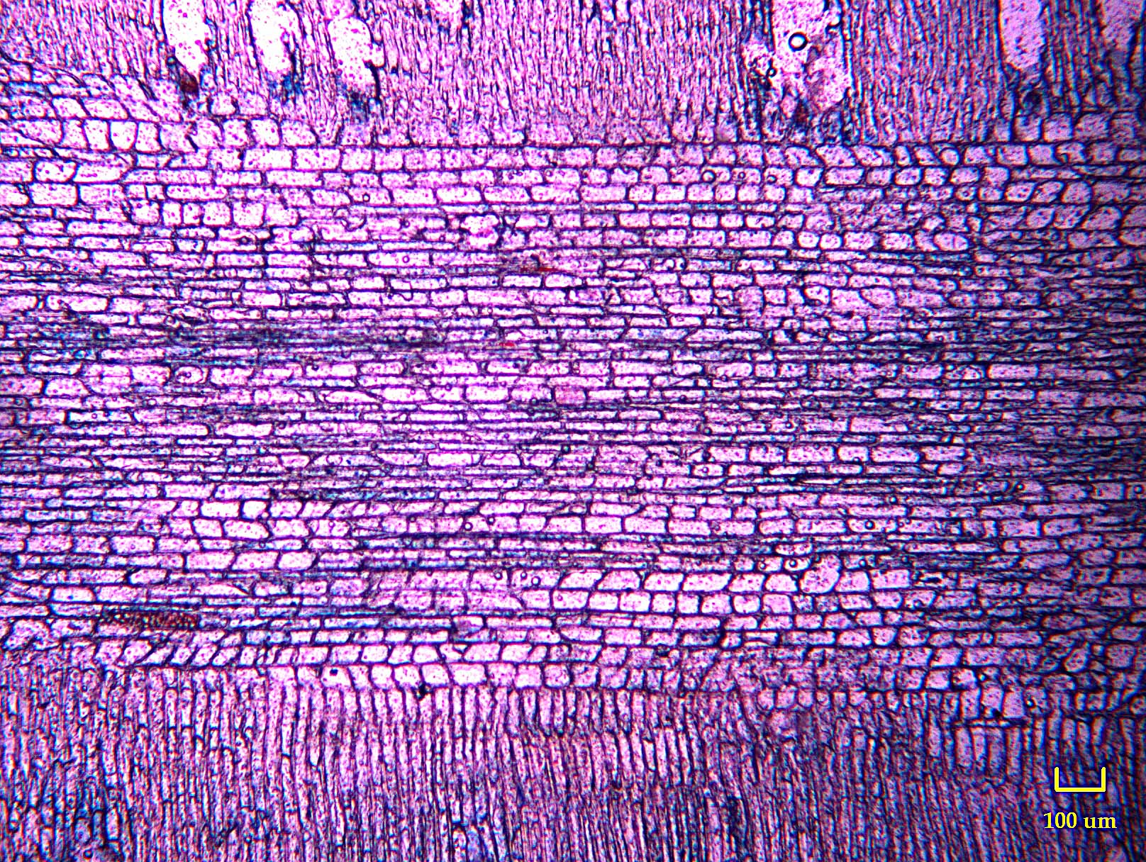 - 106 - Cuerpo del radio con células procumbentes y una sóla fila de células verticales y/o cuadradas marginales