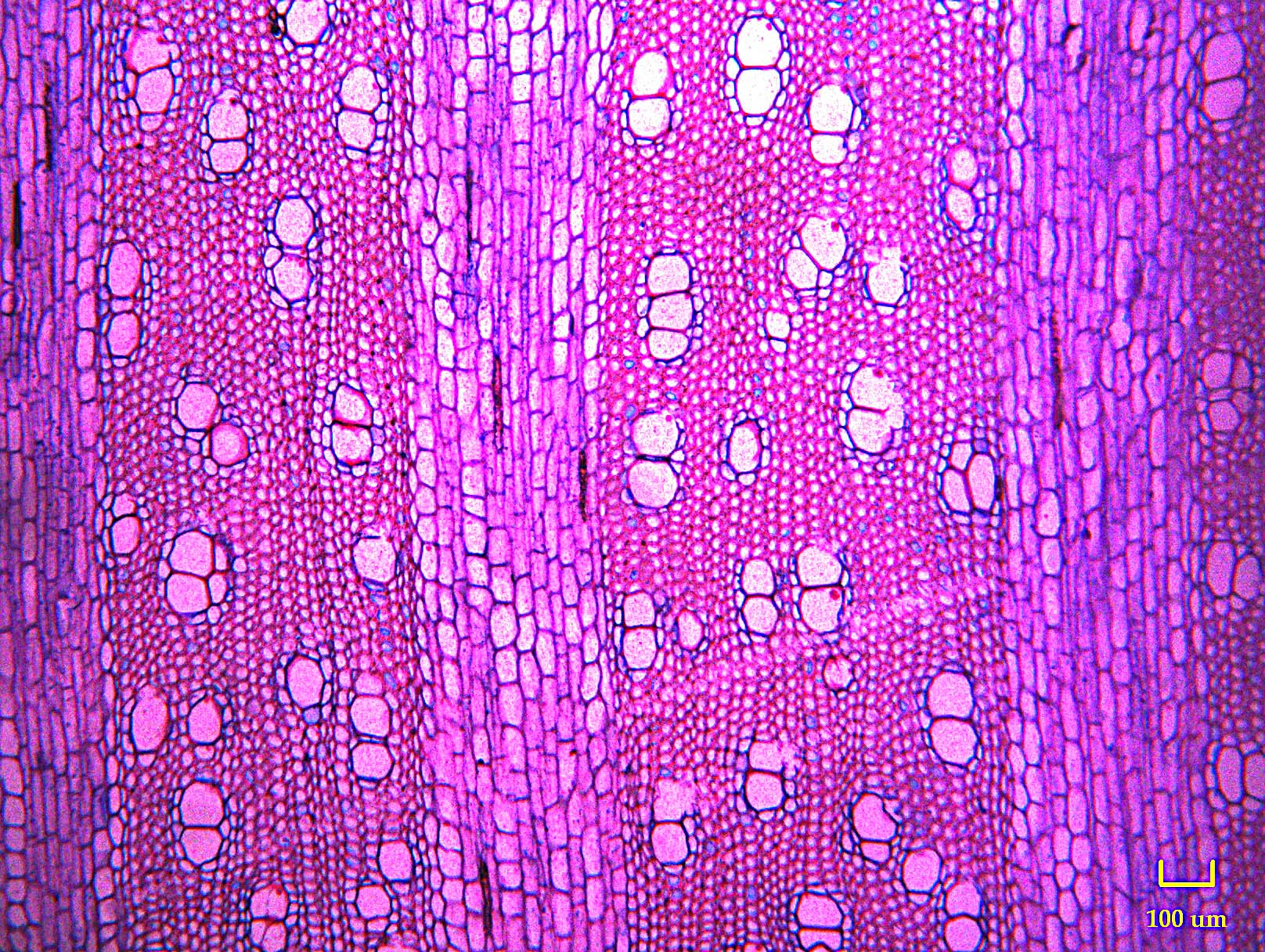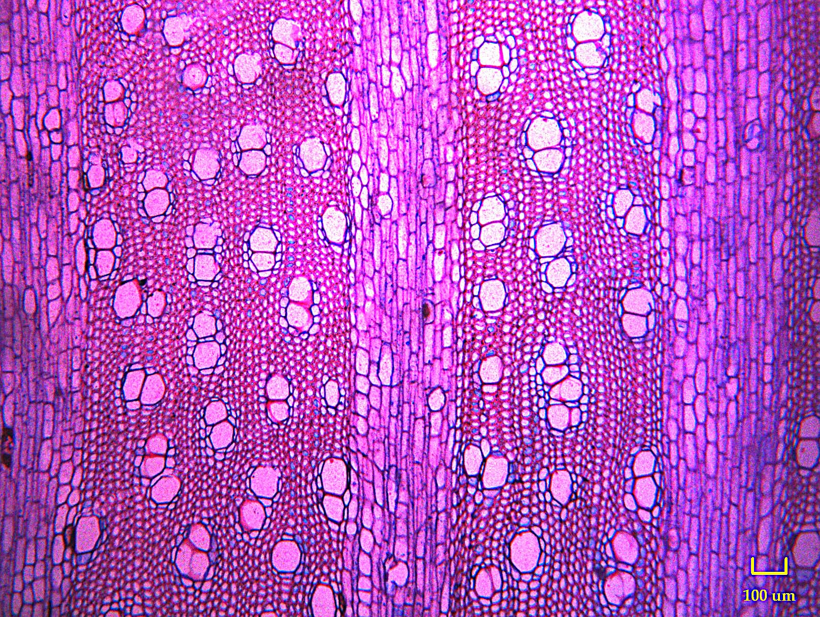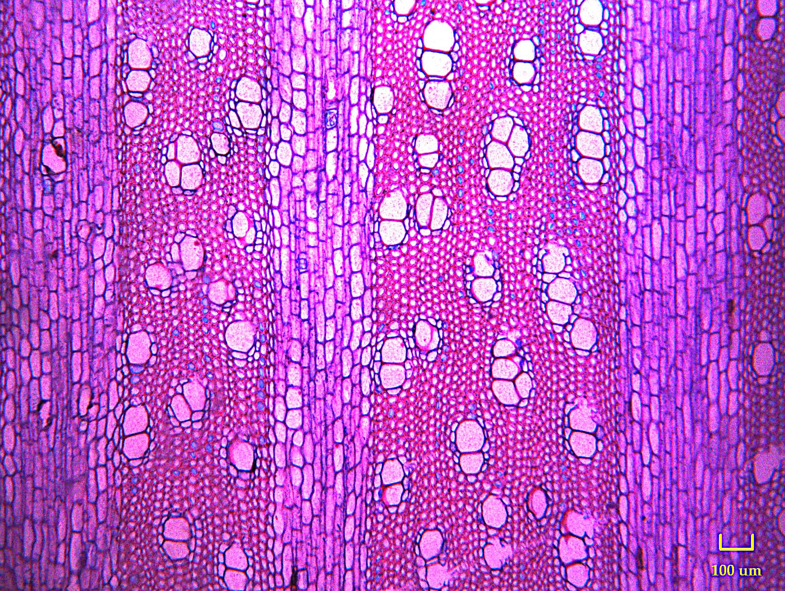 - 7 - Vasos (poros) en patrones radiales o diagonales