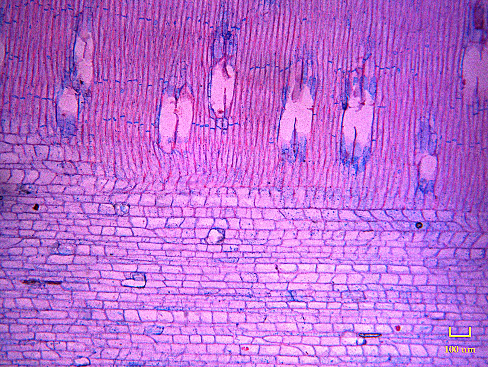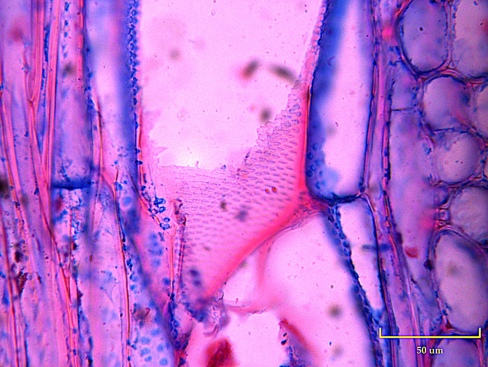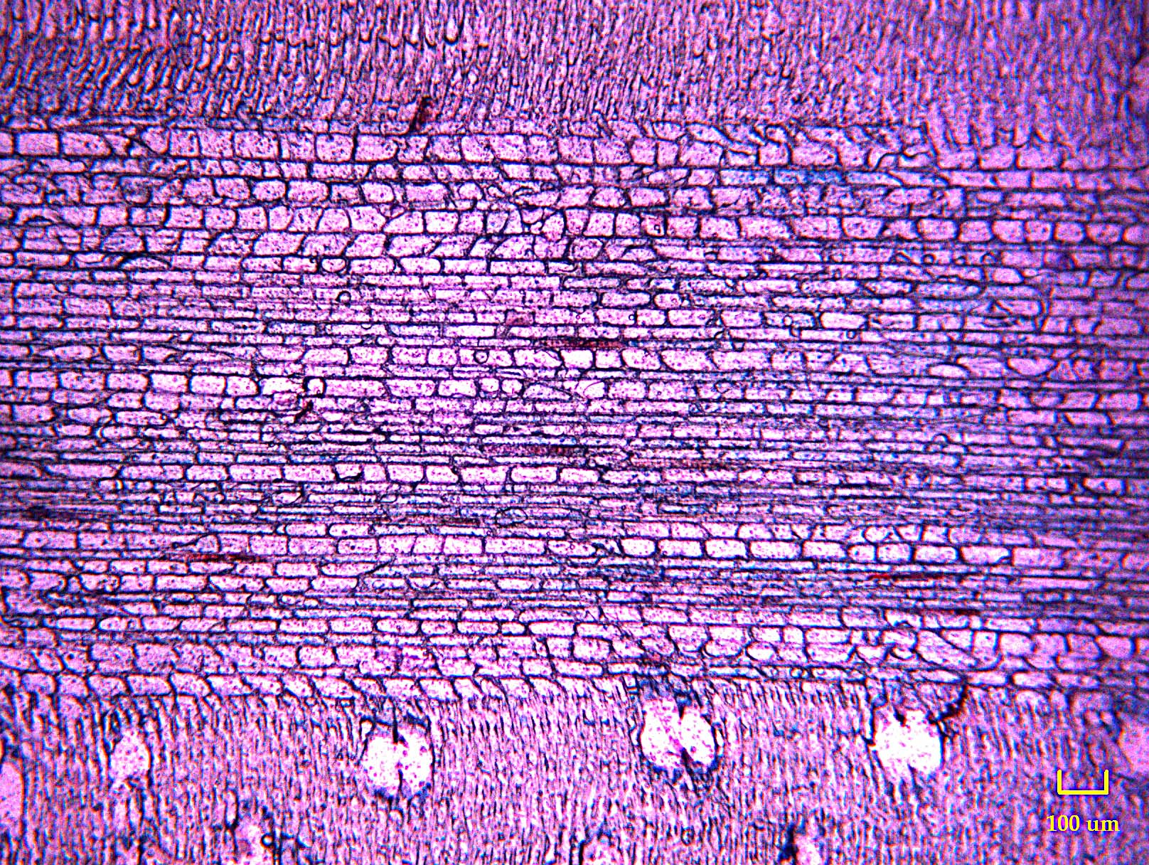 - 7 - Vasos (poros) en patrones radiales o diagonales