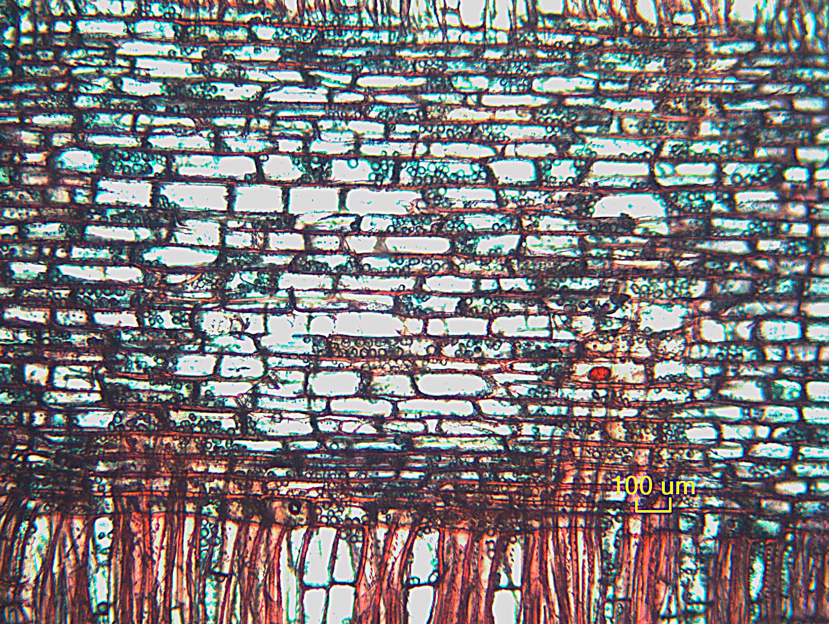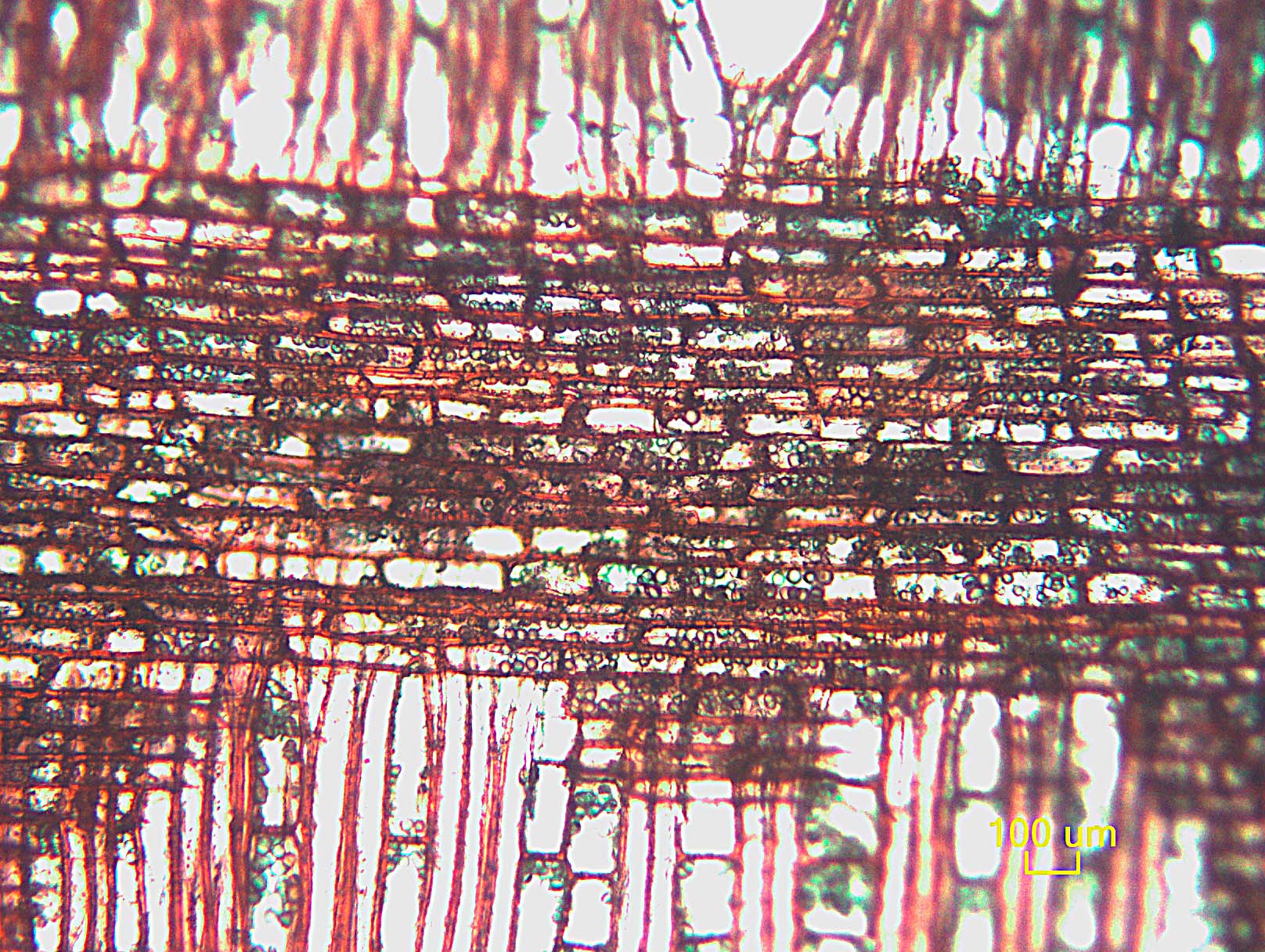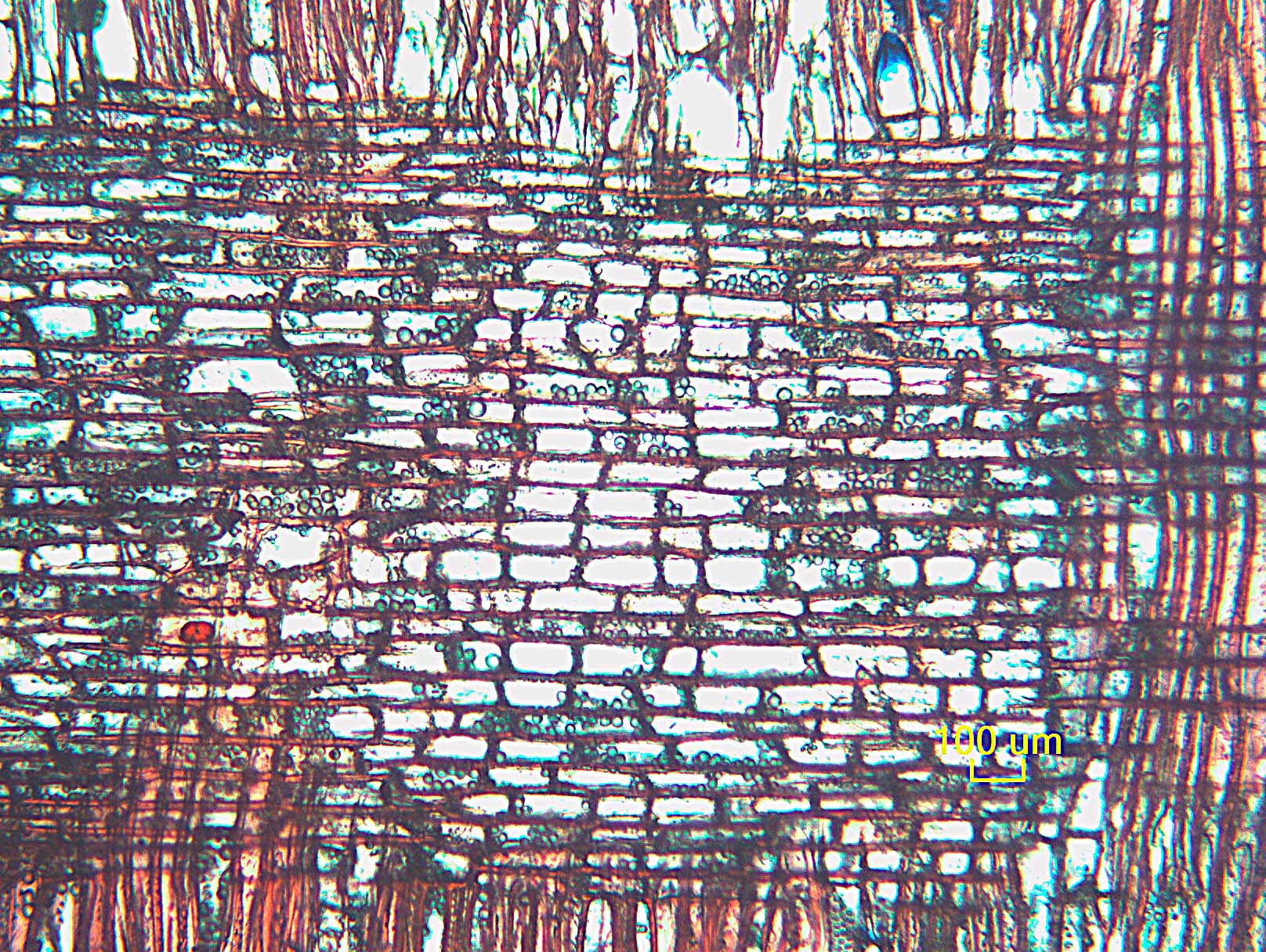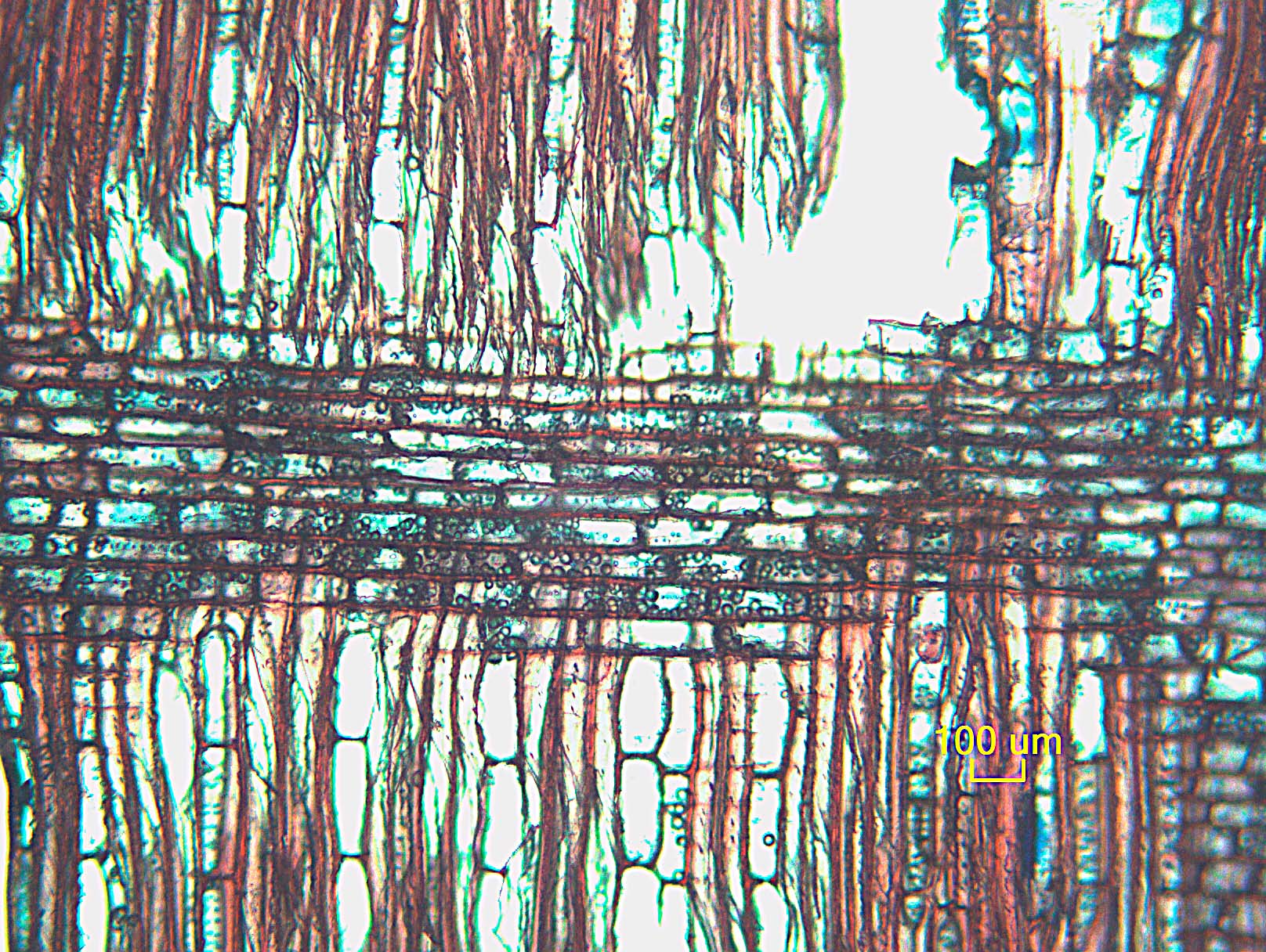- 107 - Cuerpo del radio con células procumbentes con 2-4 filas de células verticales y/o cuadradas marginales