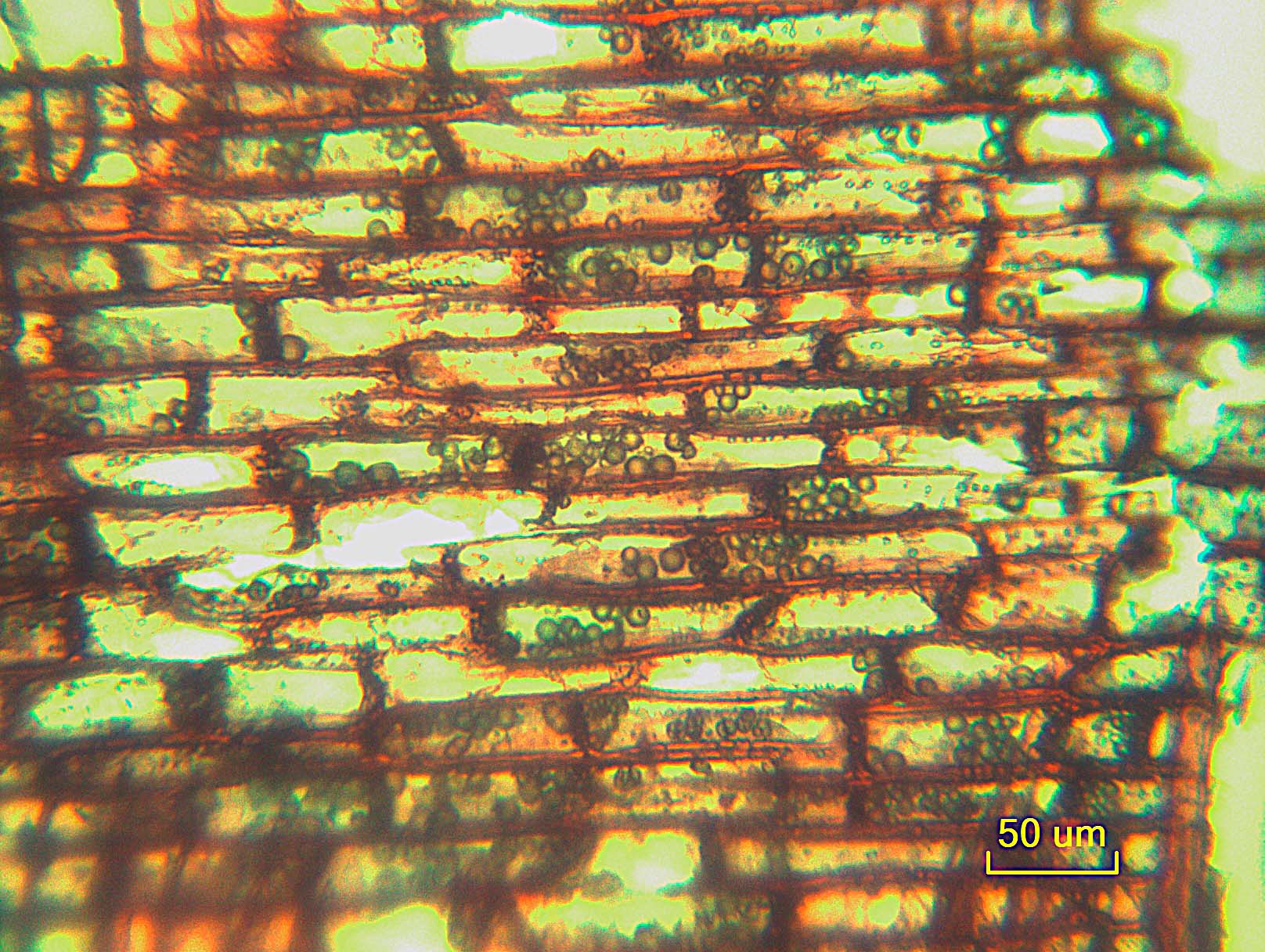- 93 - Ocho (5-8) células por hebra de parénquima