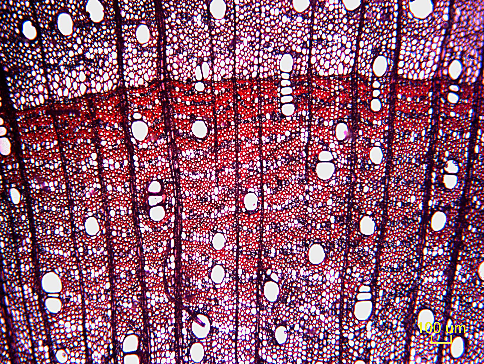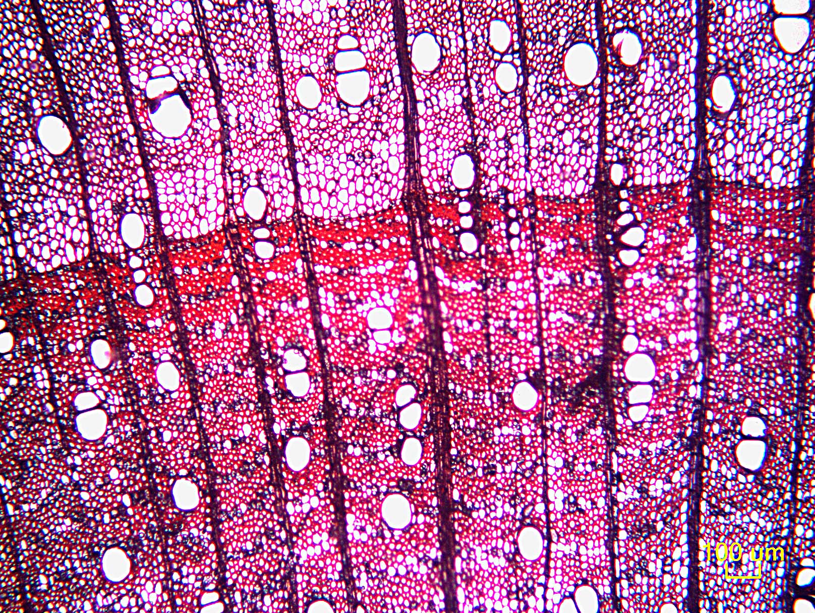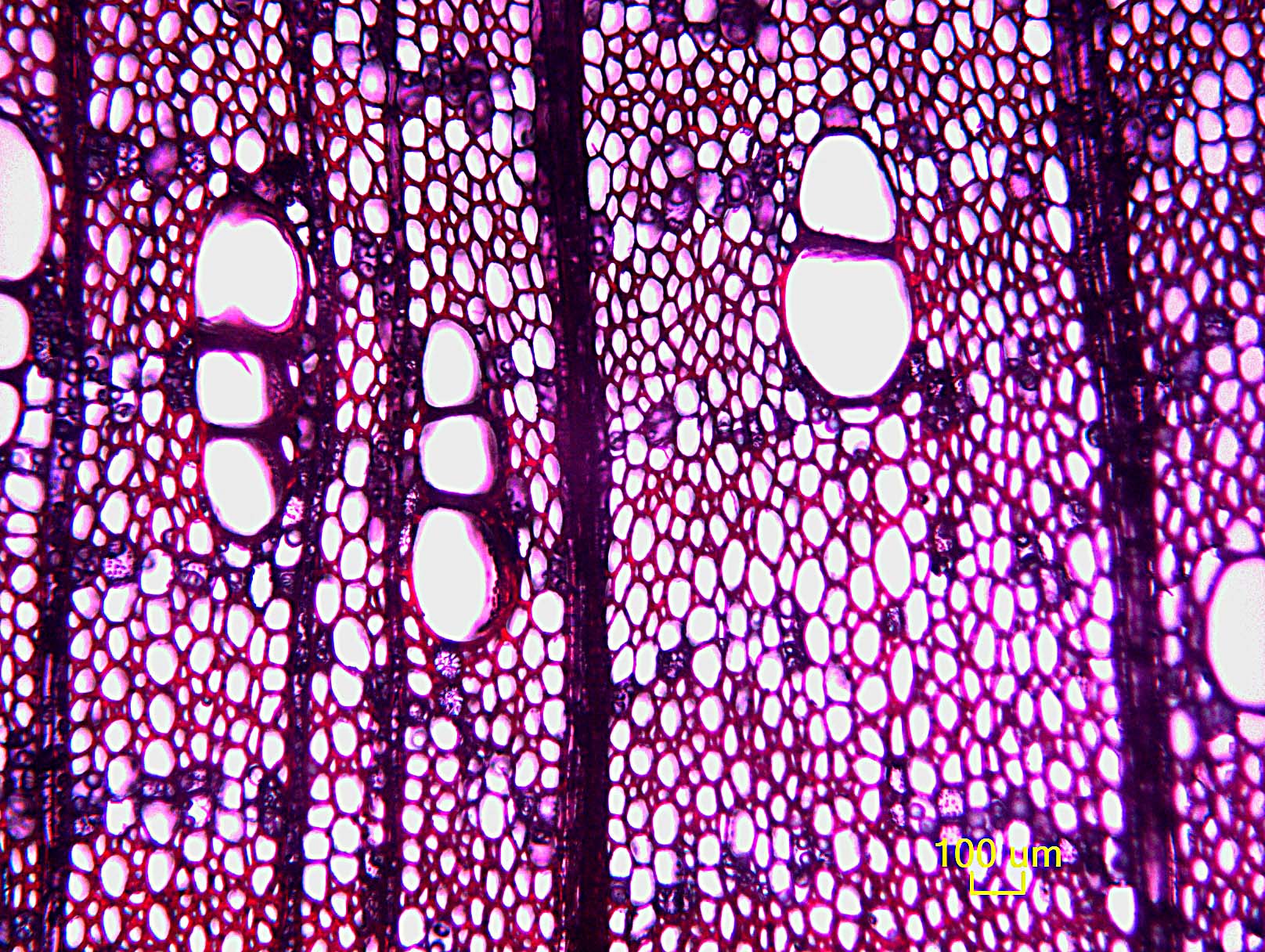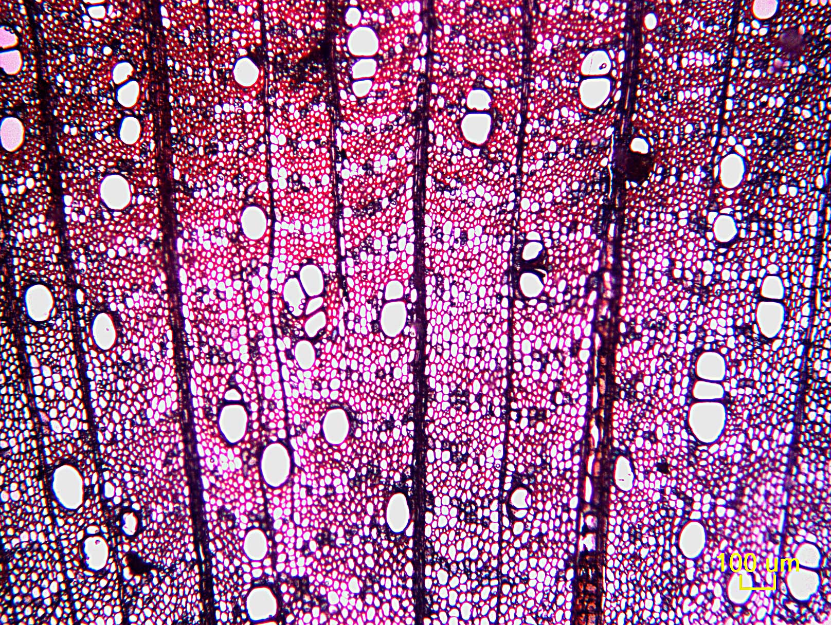 - 7 - Vasos (poros) en patrones radiales o diagonales