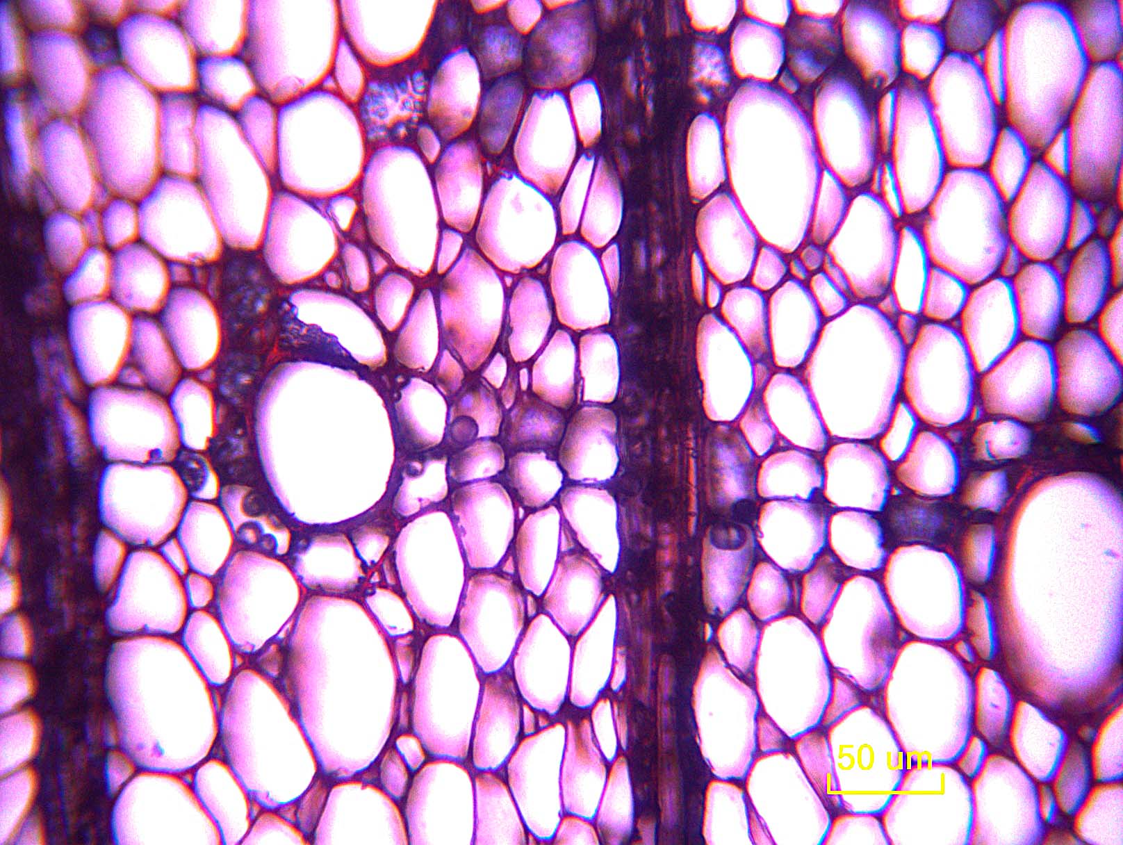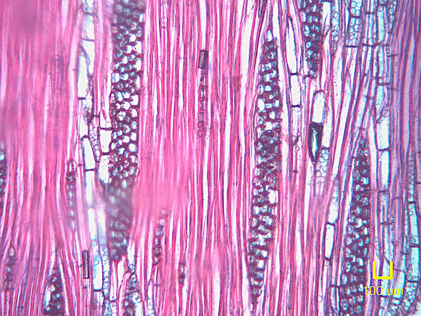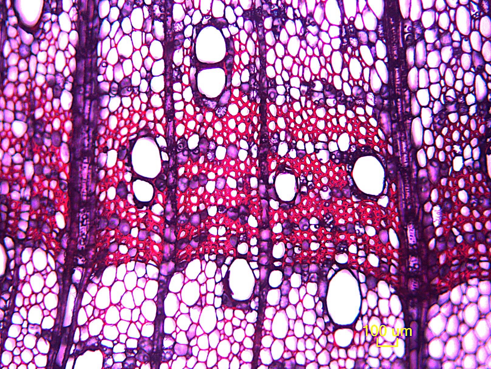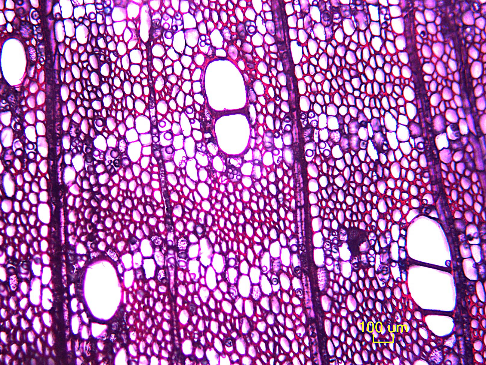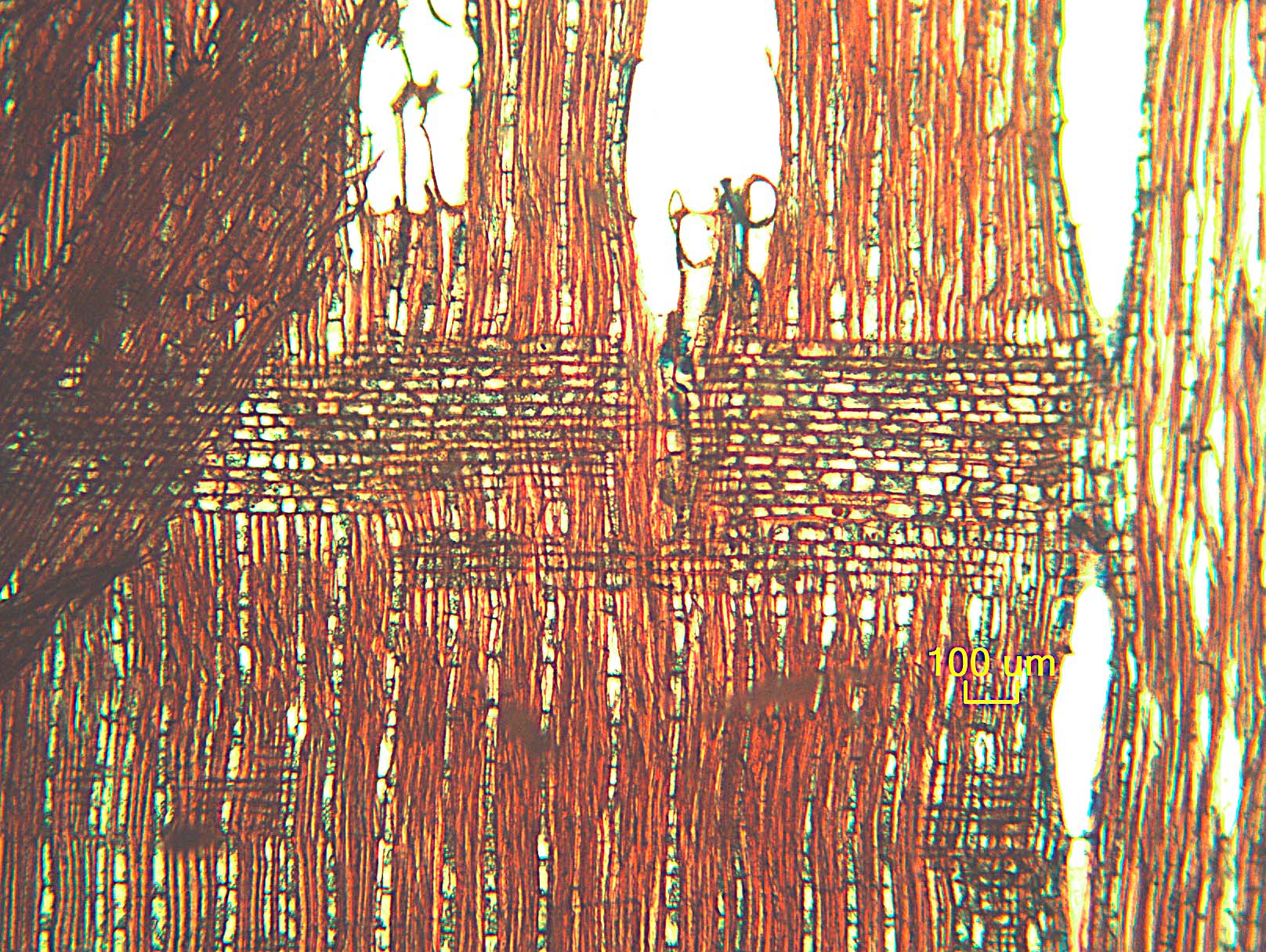 - 7 - Vasos (poros) en patrones radiales o diagonales