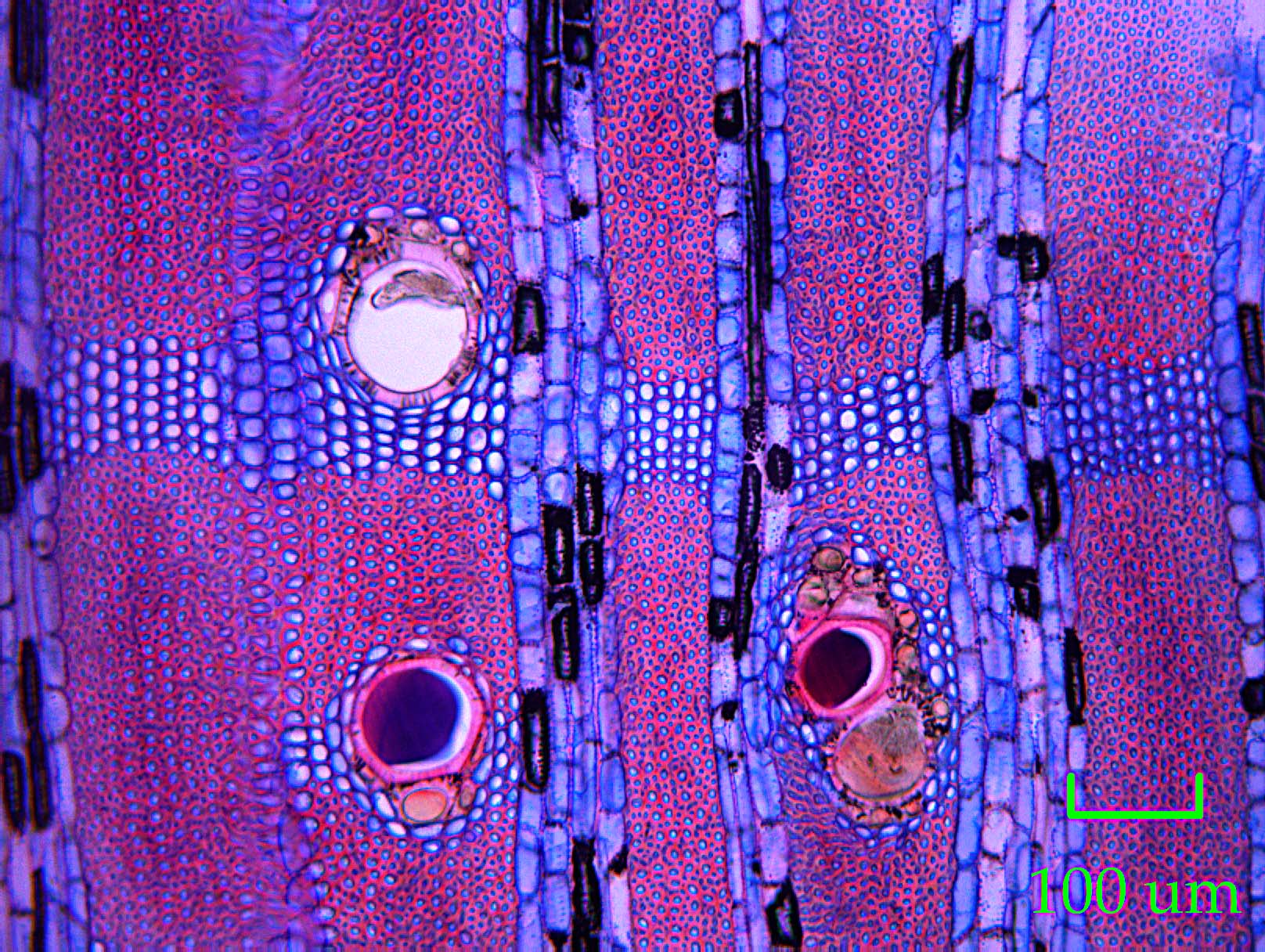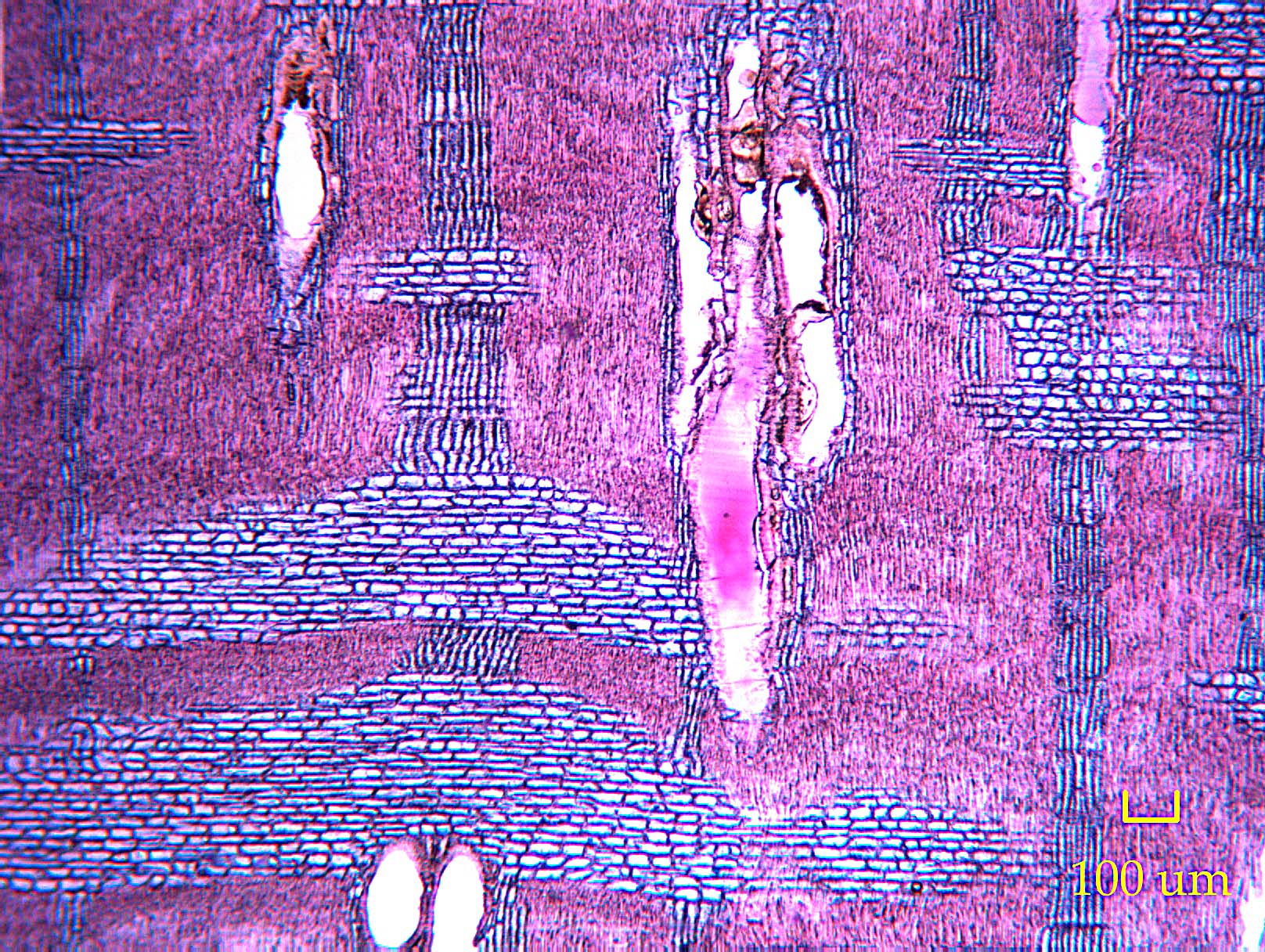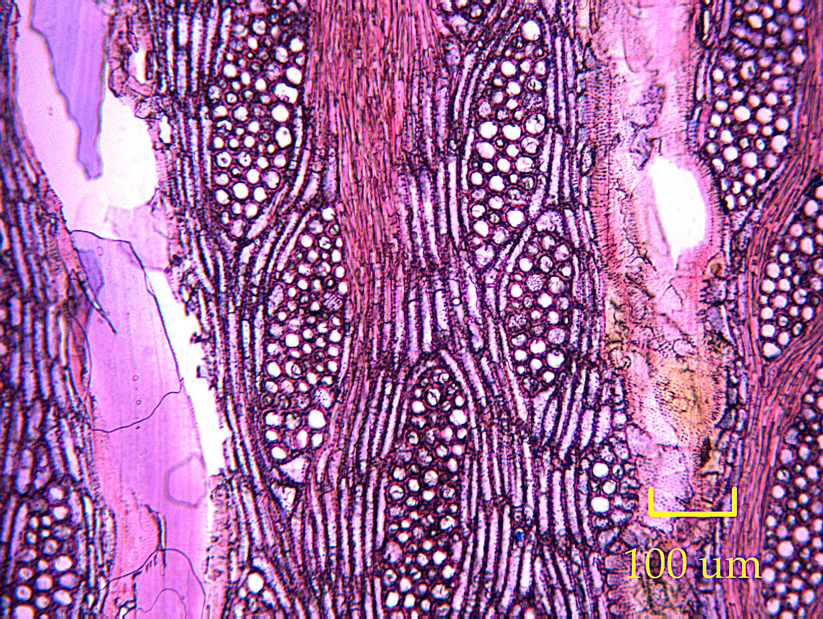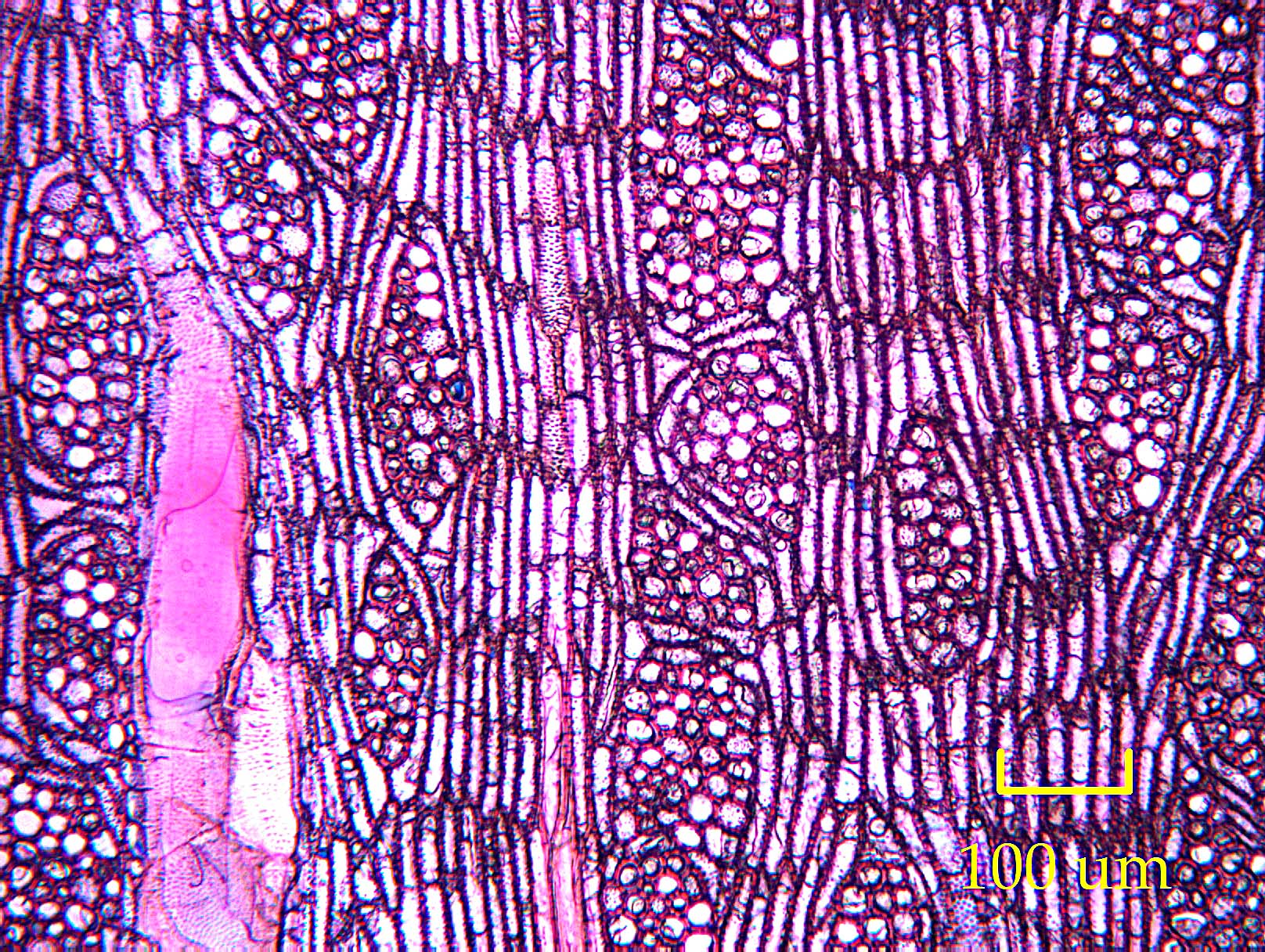 - 7 - Vasos (poros) en patrones radiales o diagonales