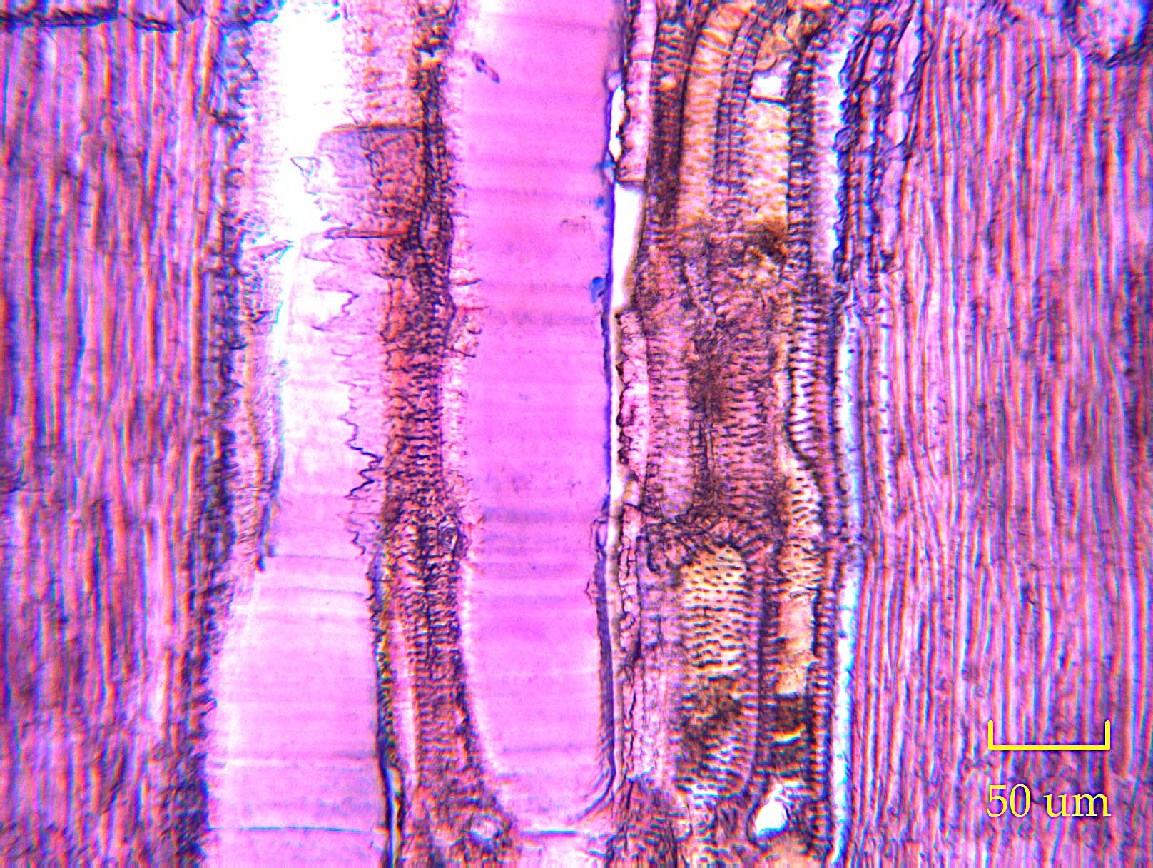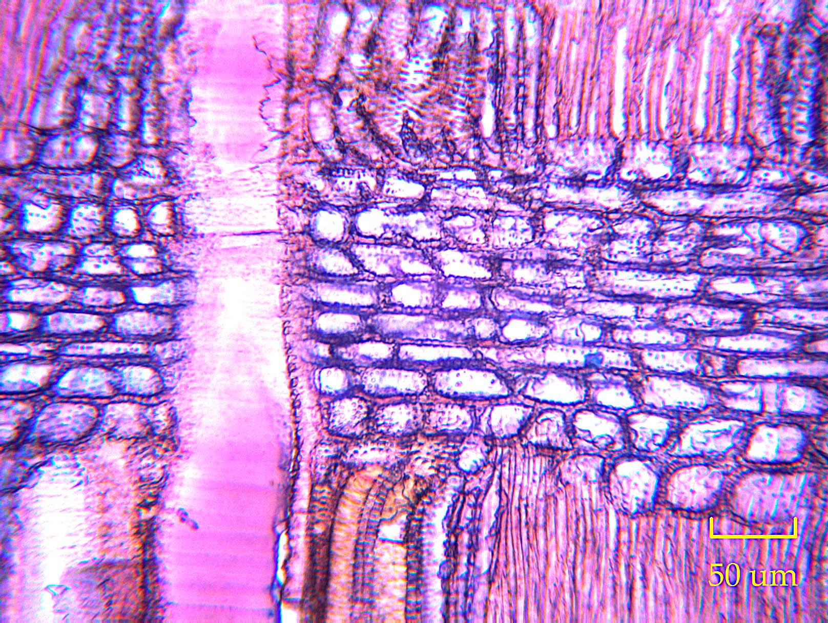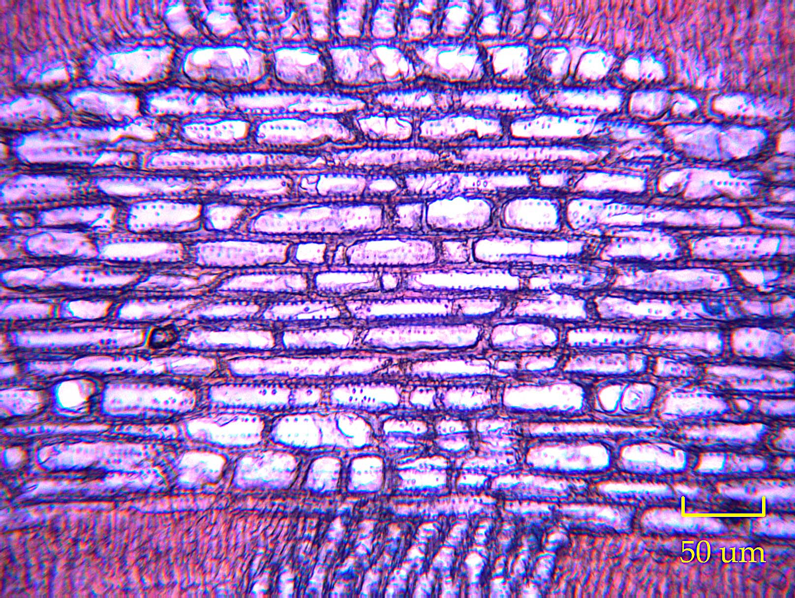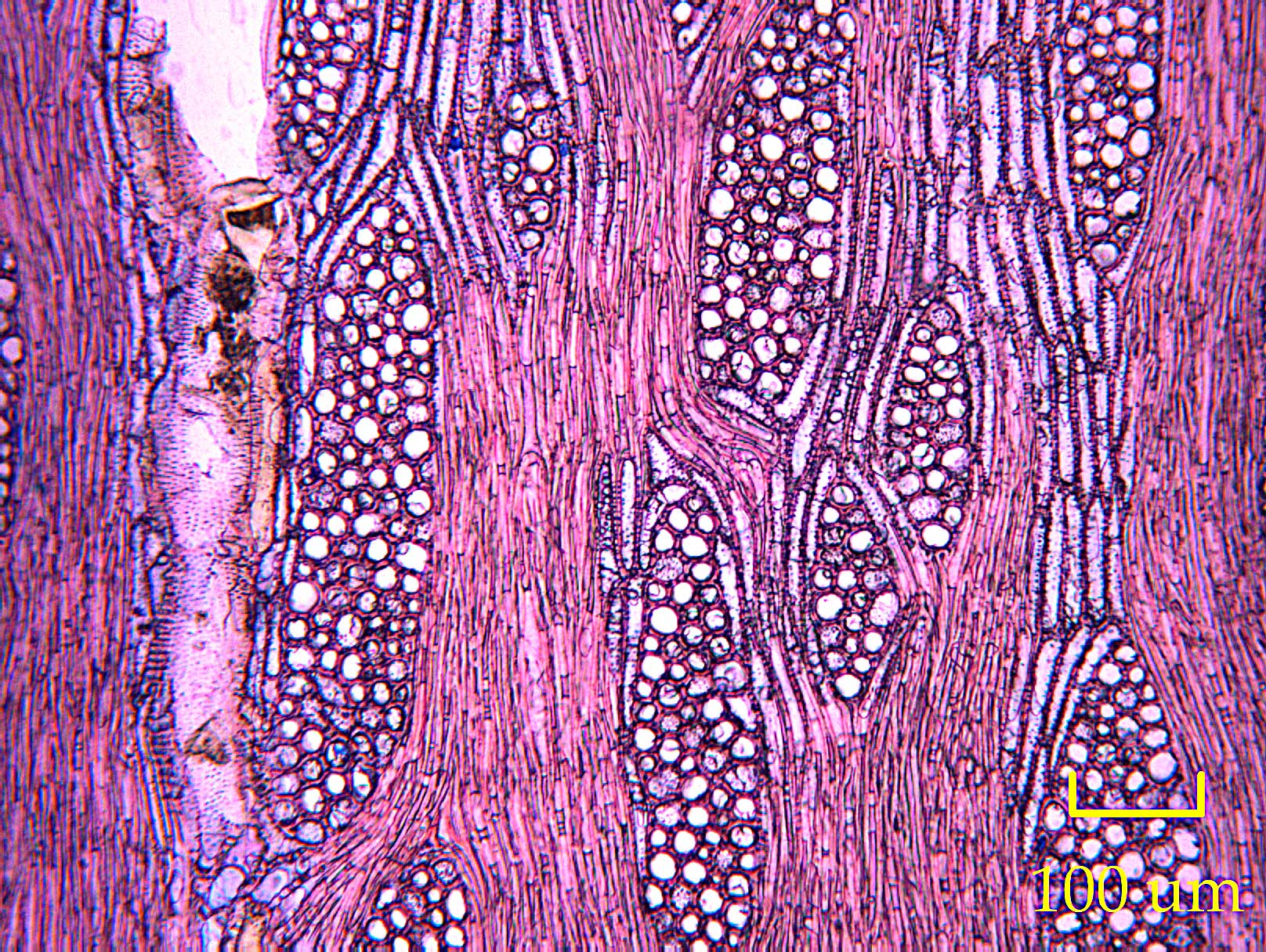 - 7 - Vasos (poros) en patrones radiales o diagonales