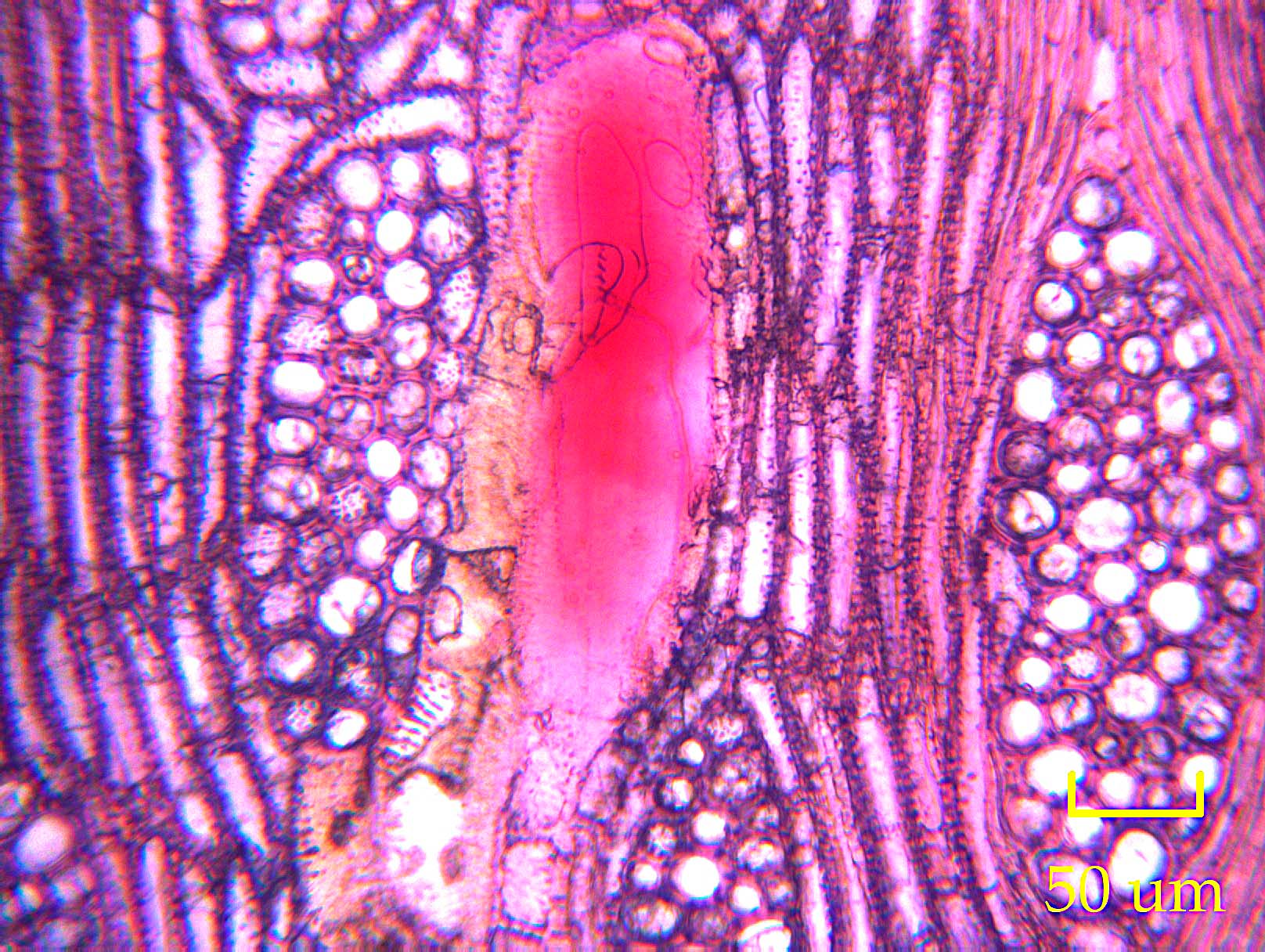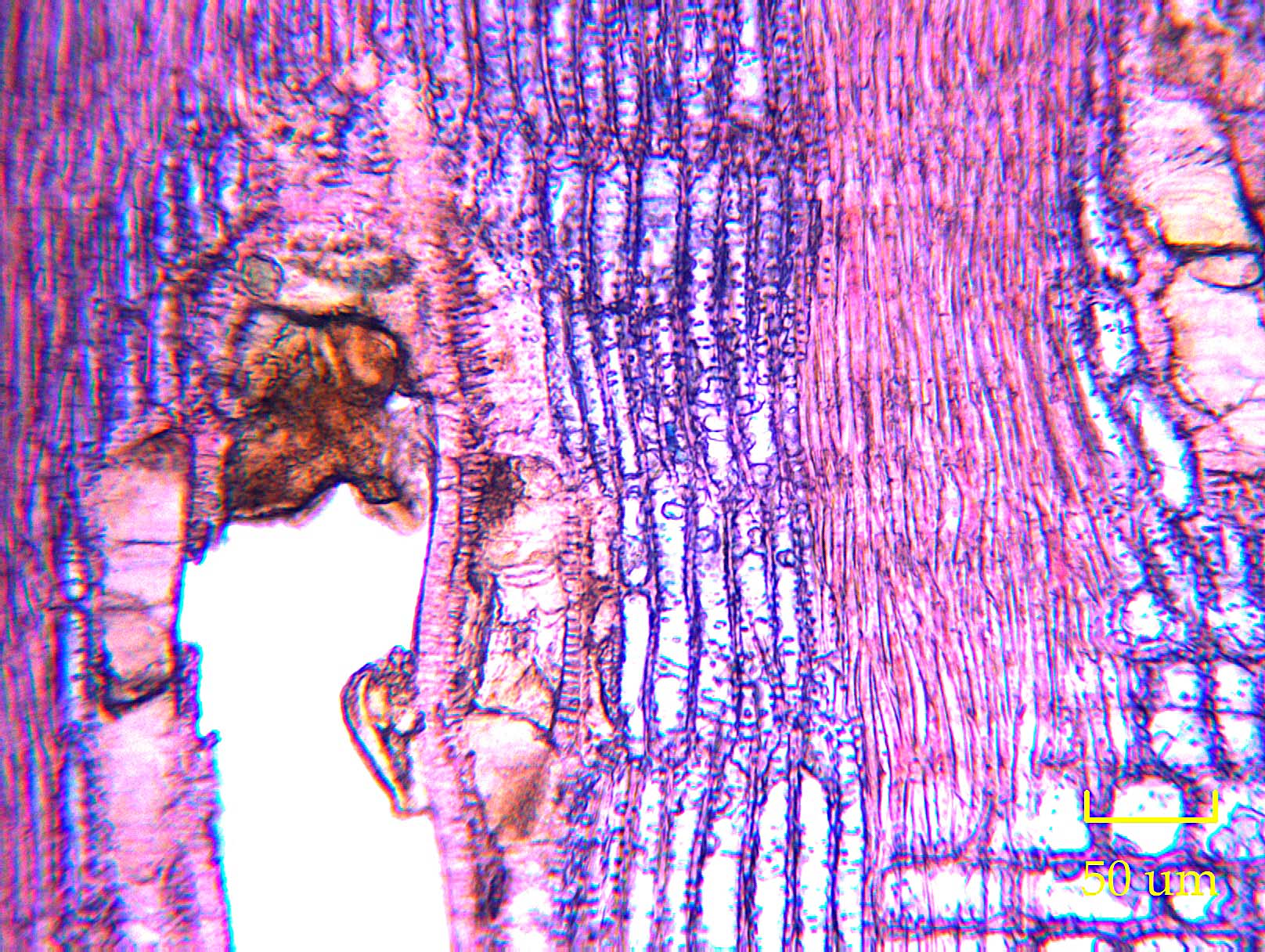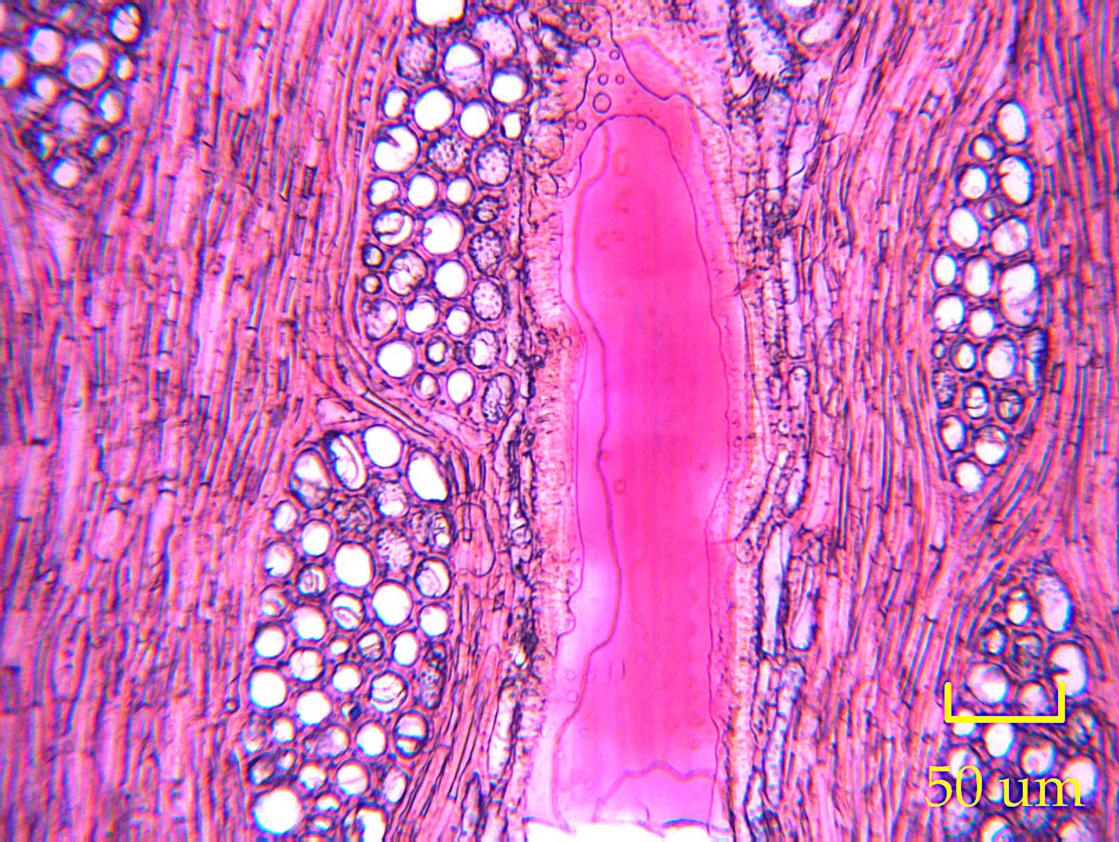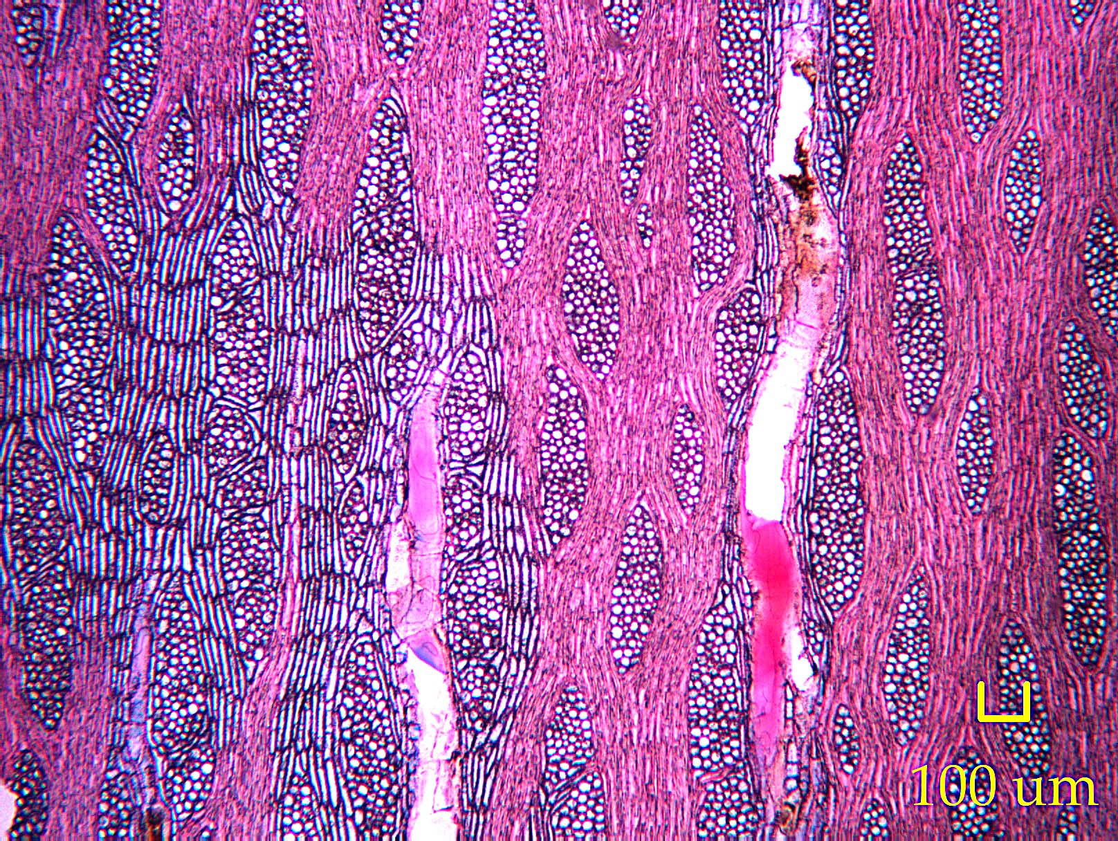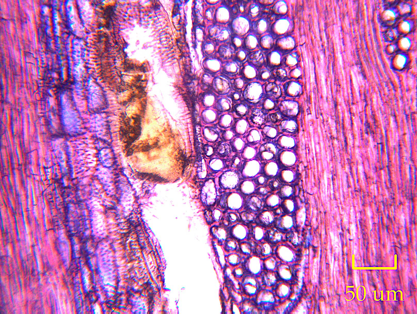 - 58 - Gomas y otros depósitos en vasos del duramen.