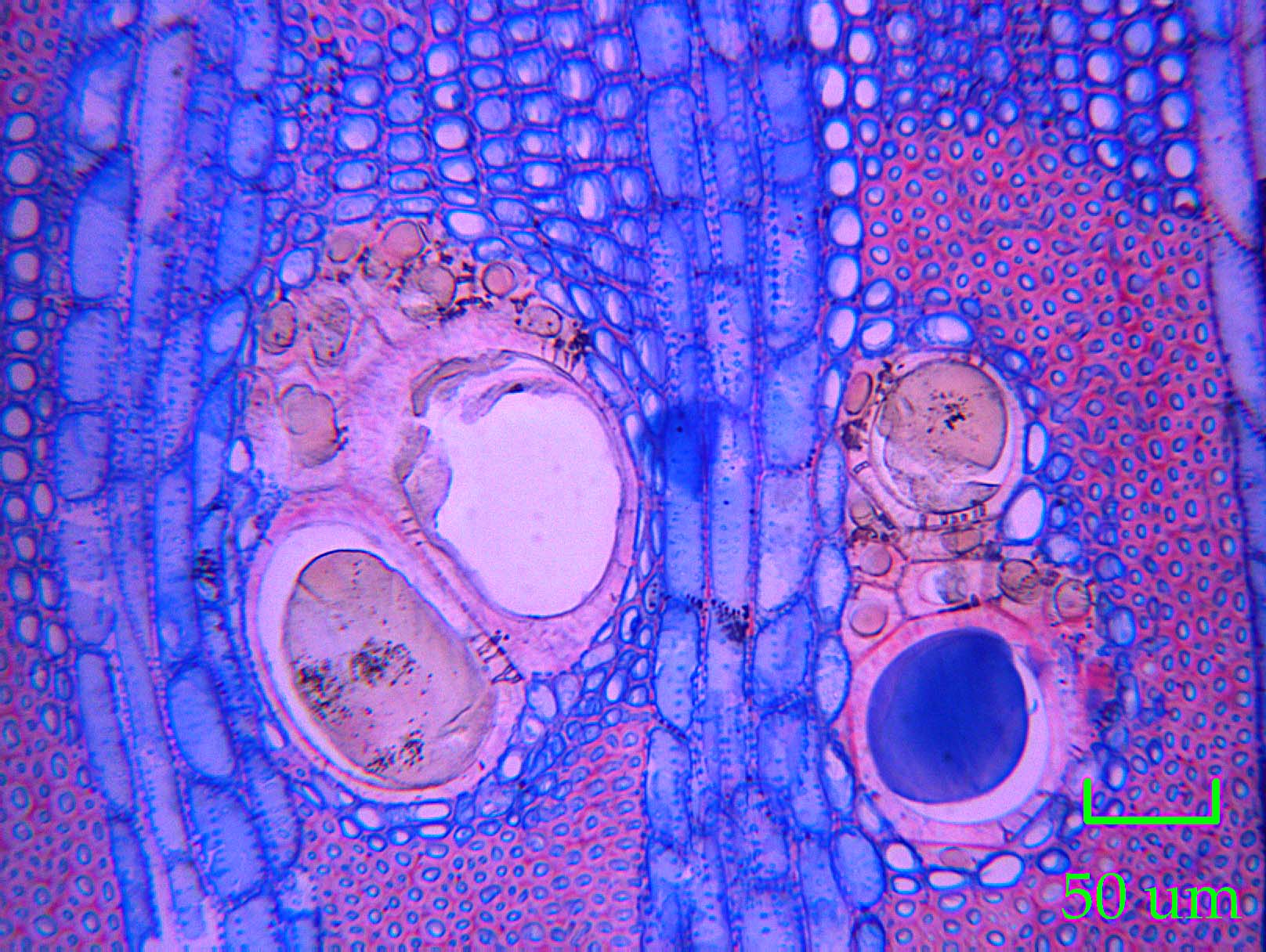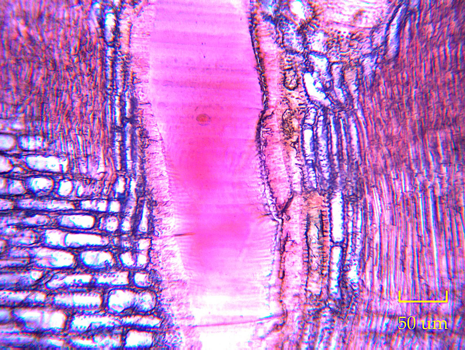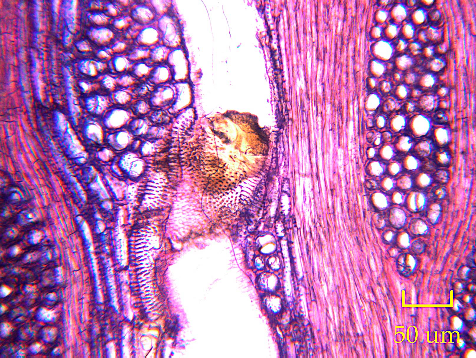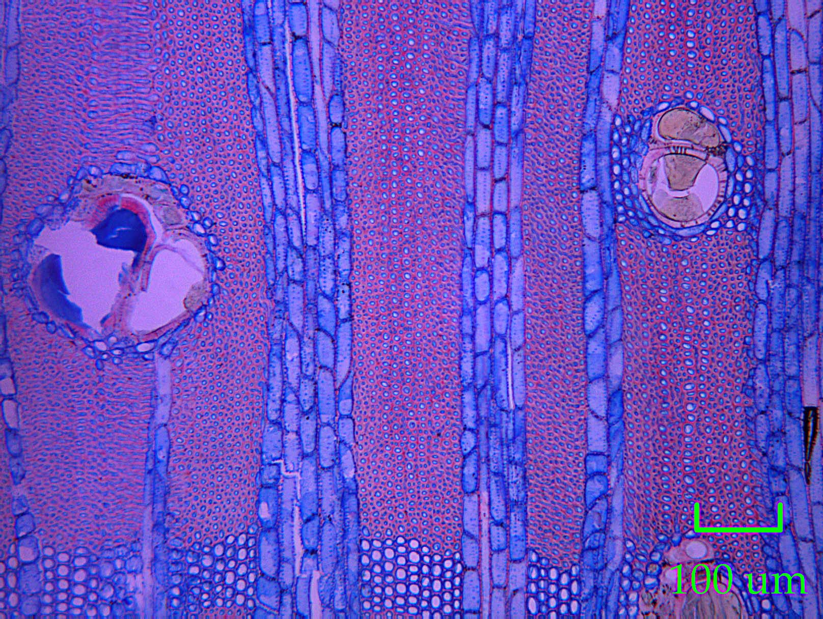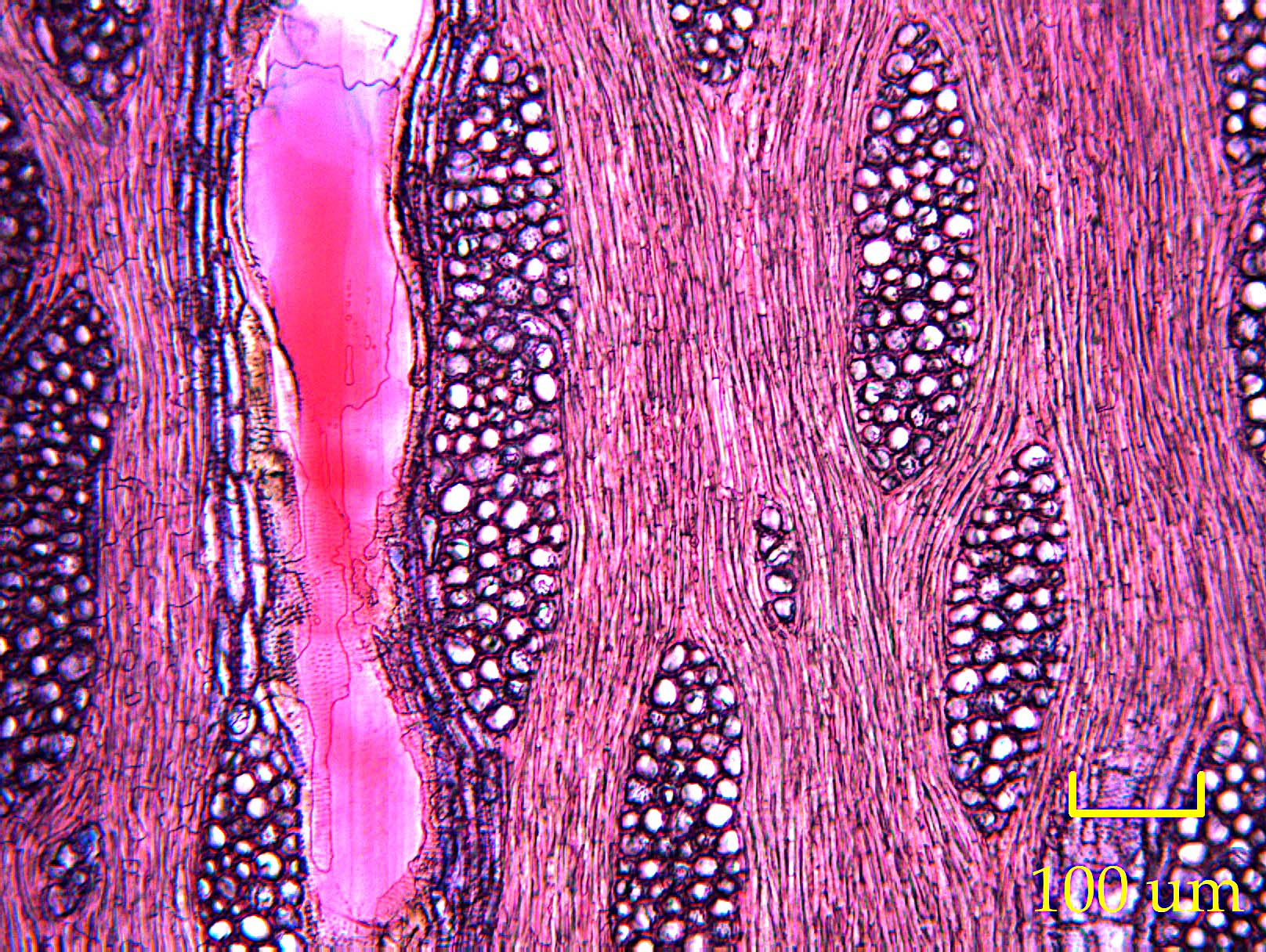 - 58 - Gomas y otros depósitos en vasos del duramen.