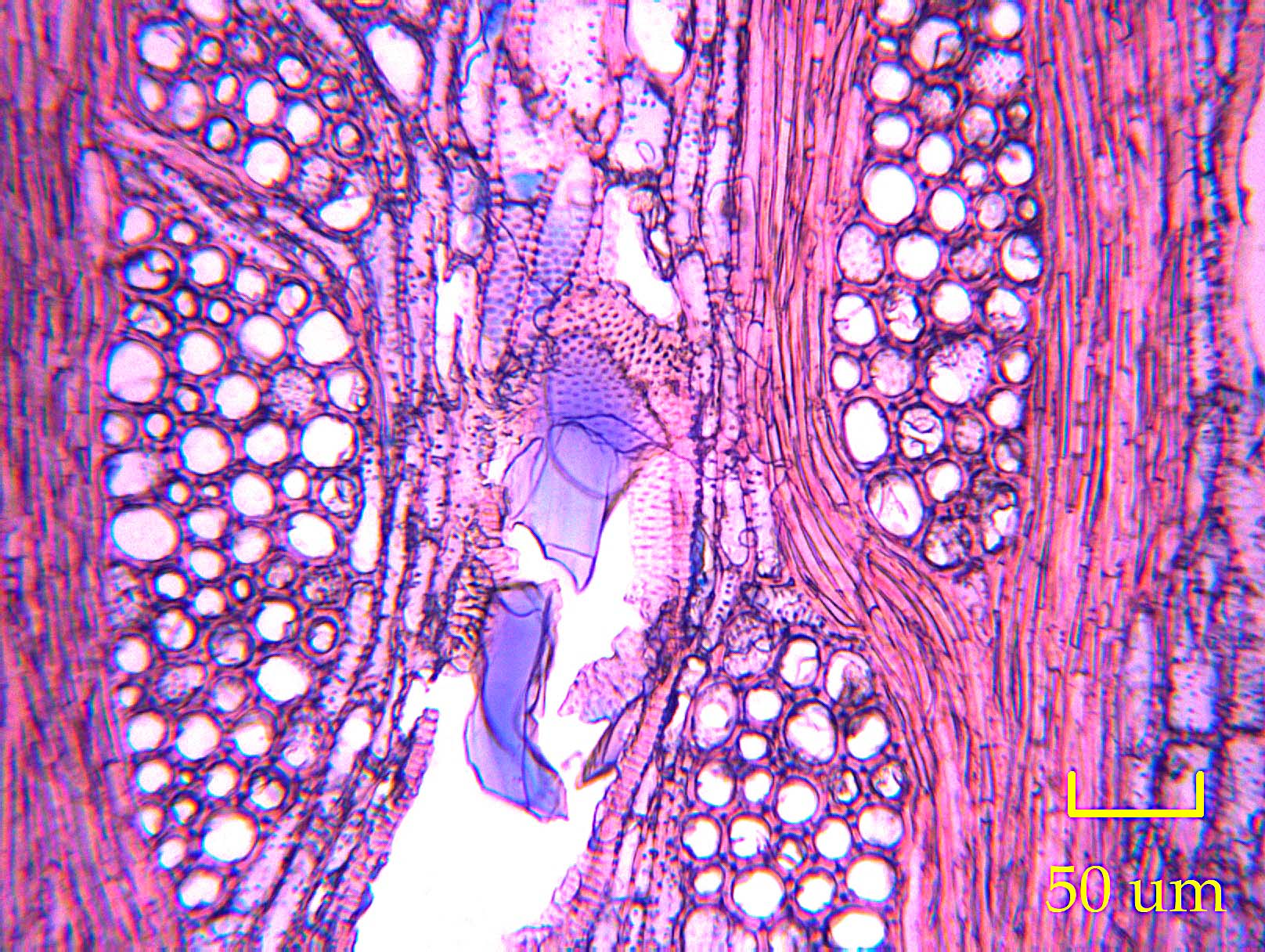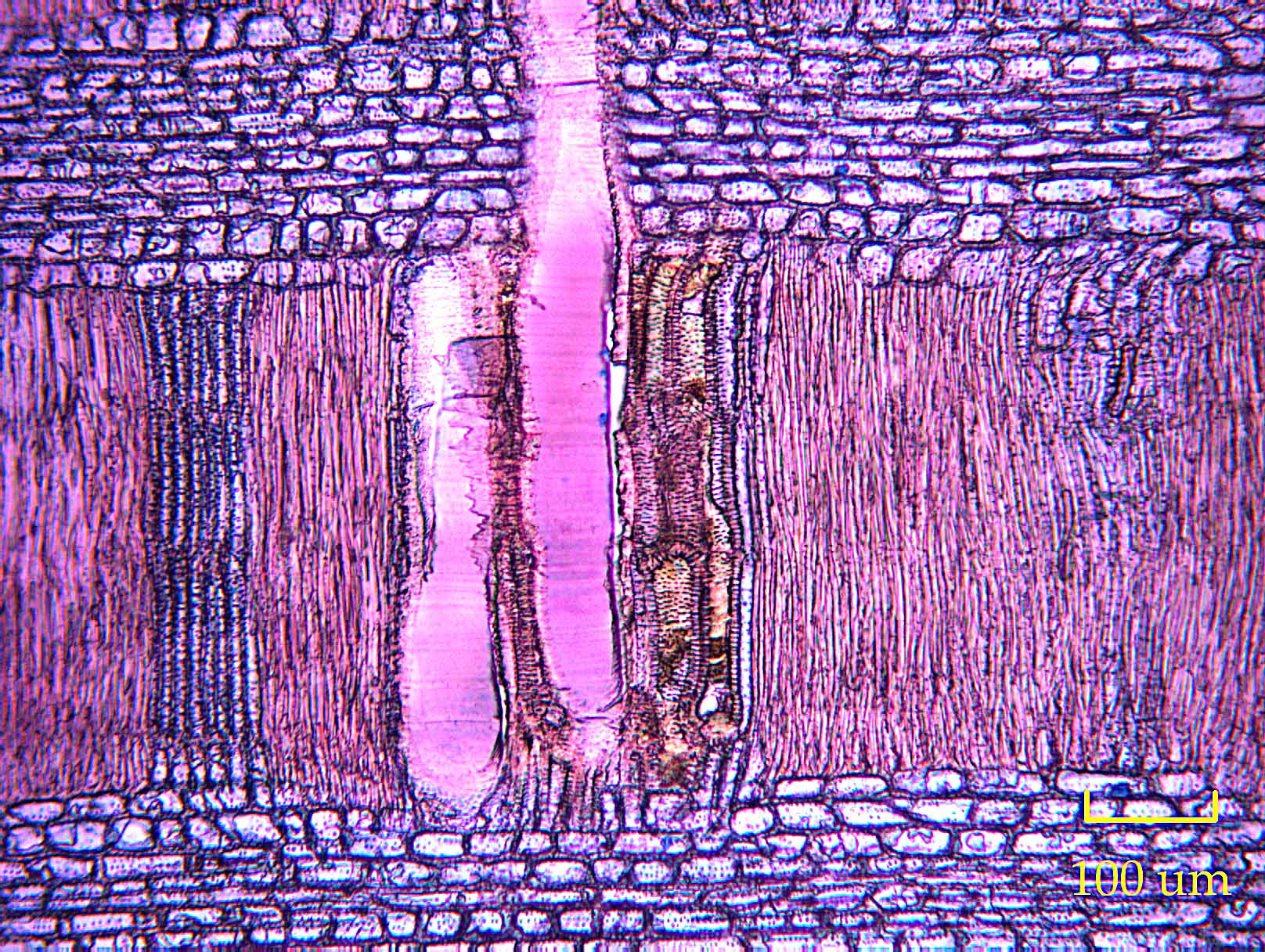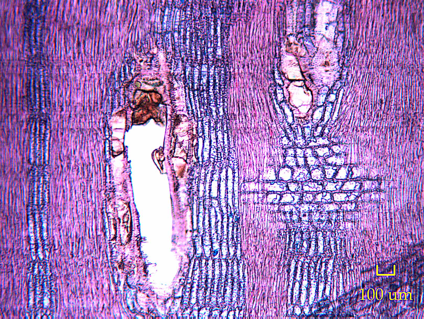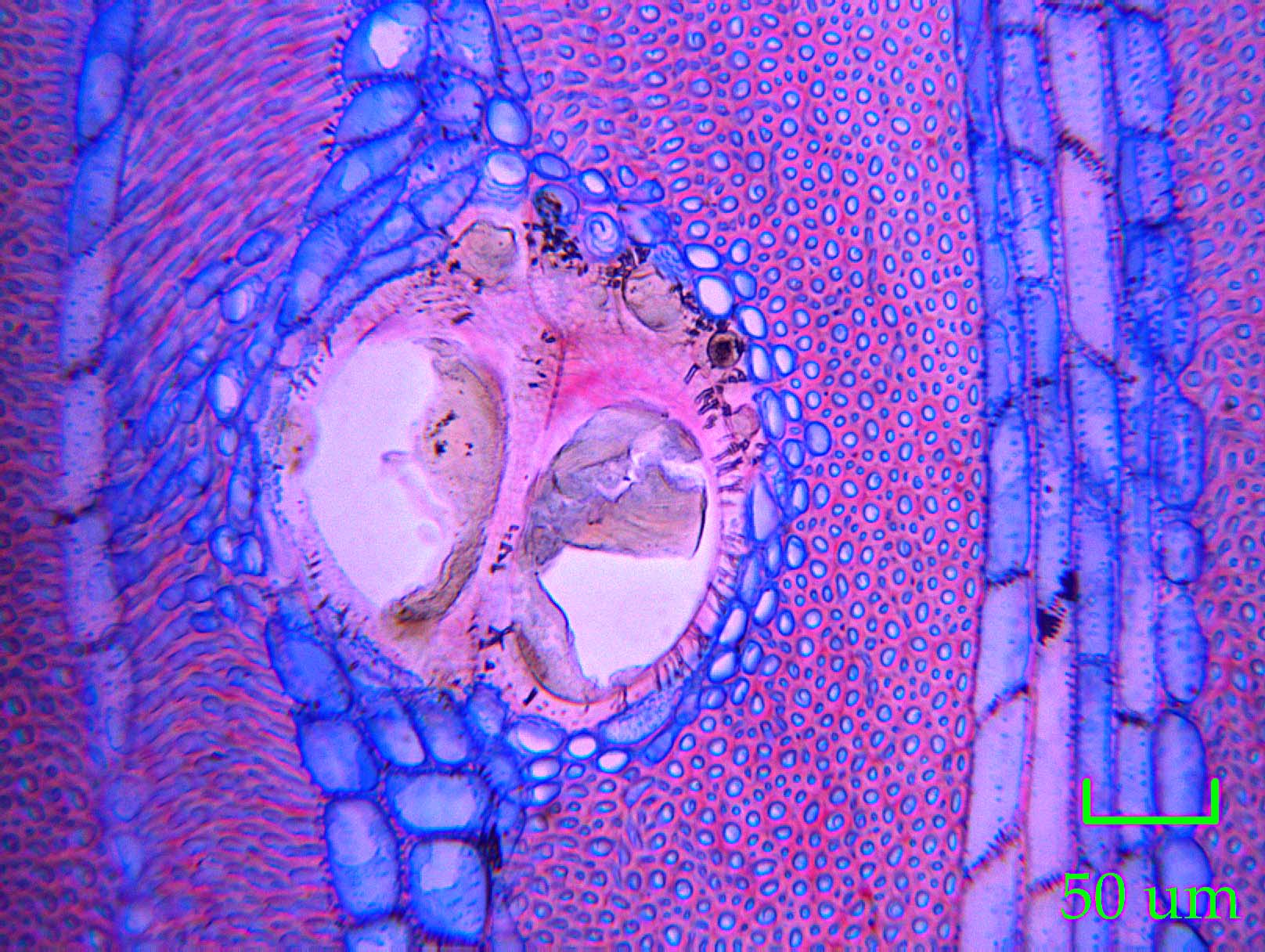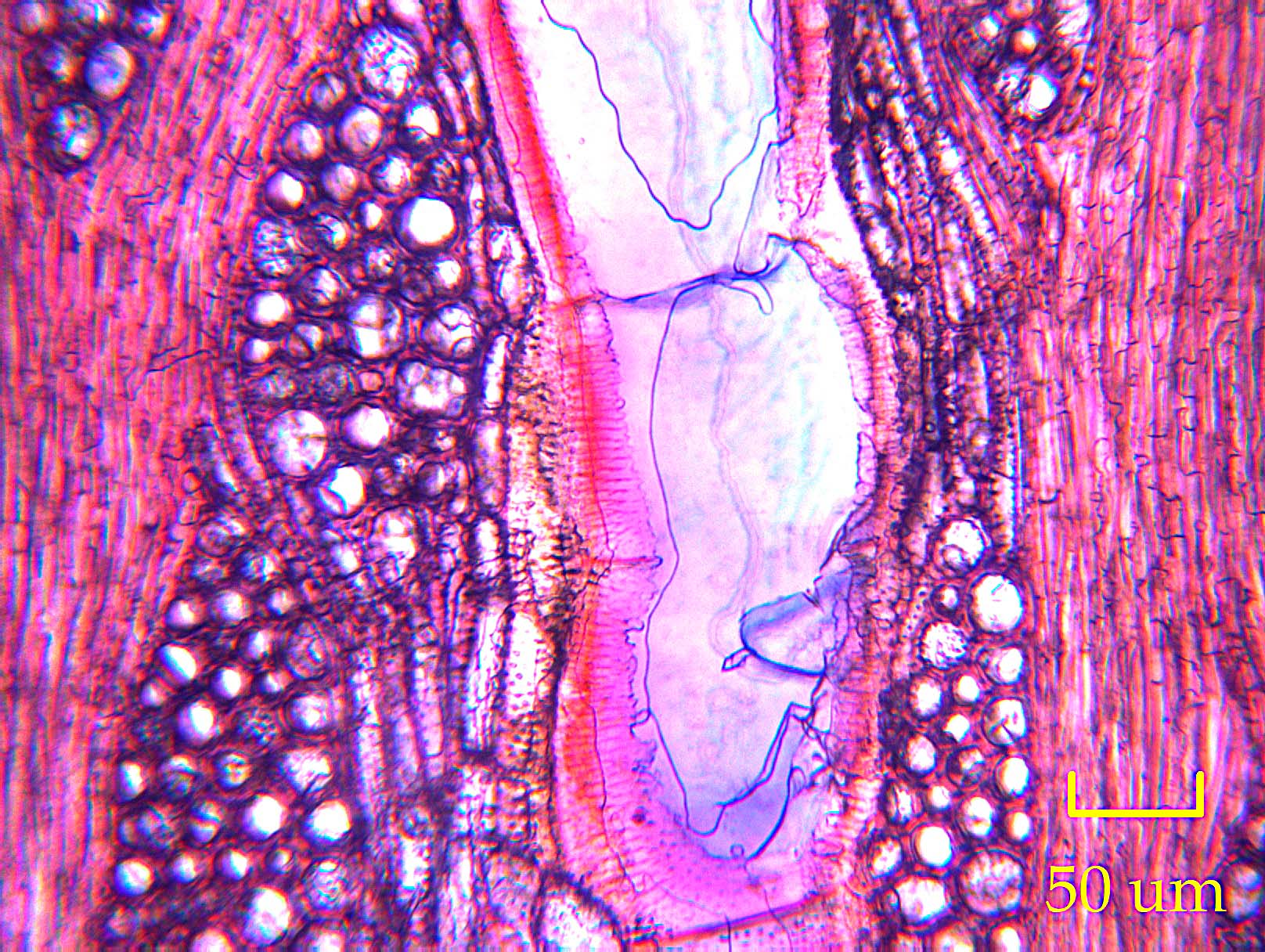 - 58 - Gomas y otros depósitos en vasos del duramen.