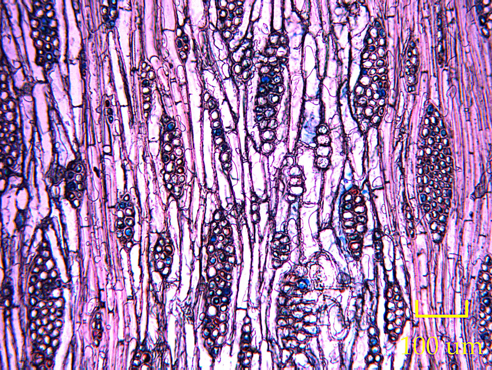 - 92 - Cuatro (3-4) células por hebra de parénquima