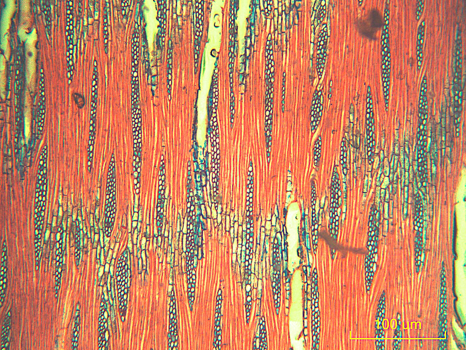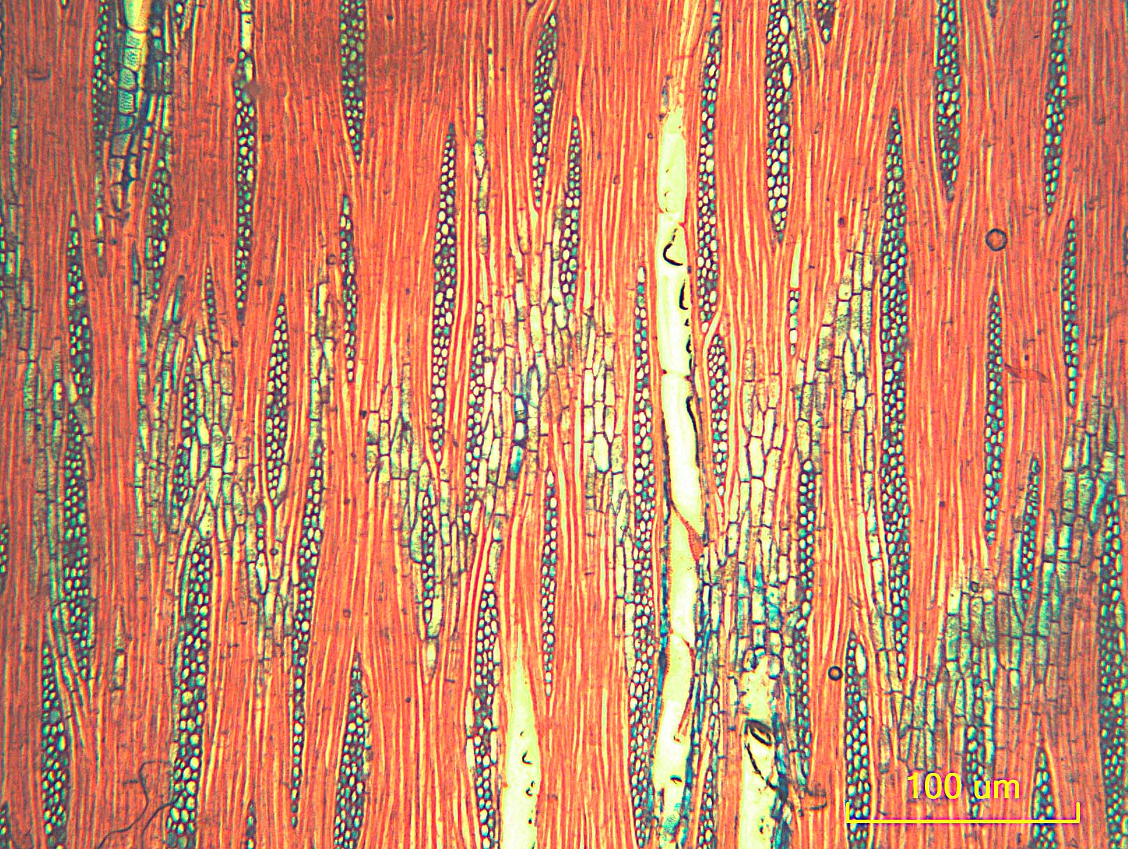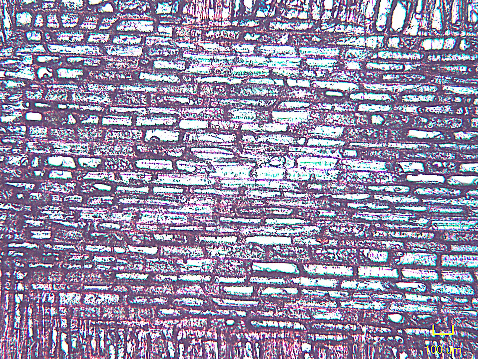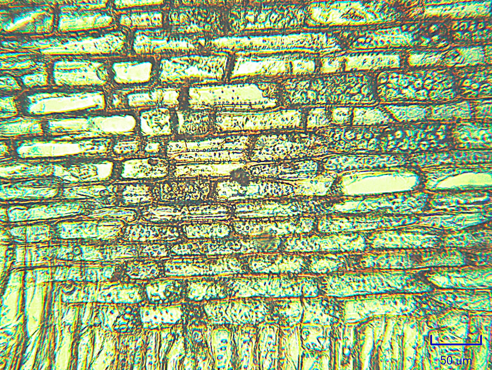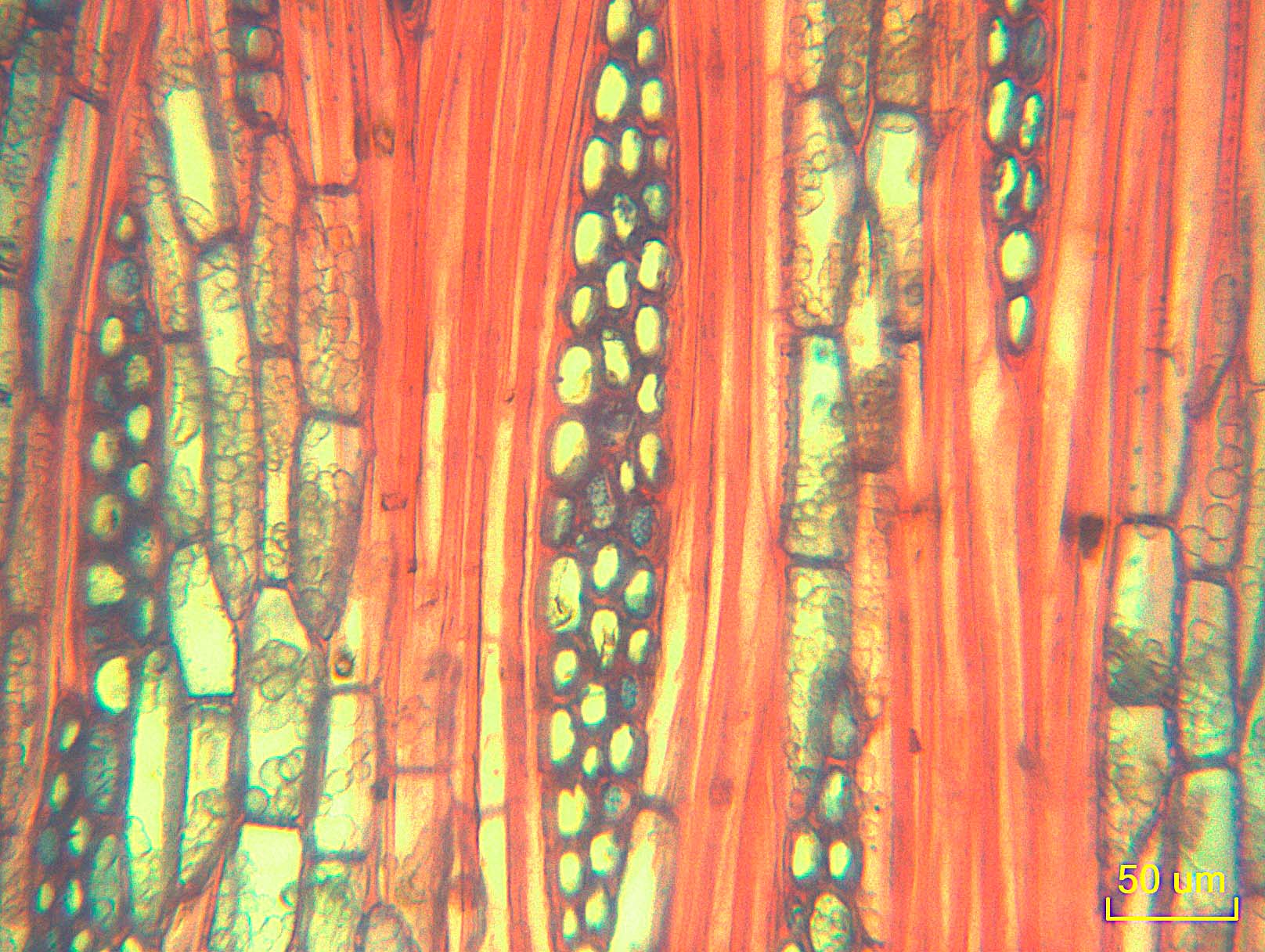 - 107 - Cuerpo del radio con células procumbentes con 2-4 filas de células verticales y/o cuadradas marginales