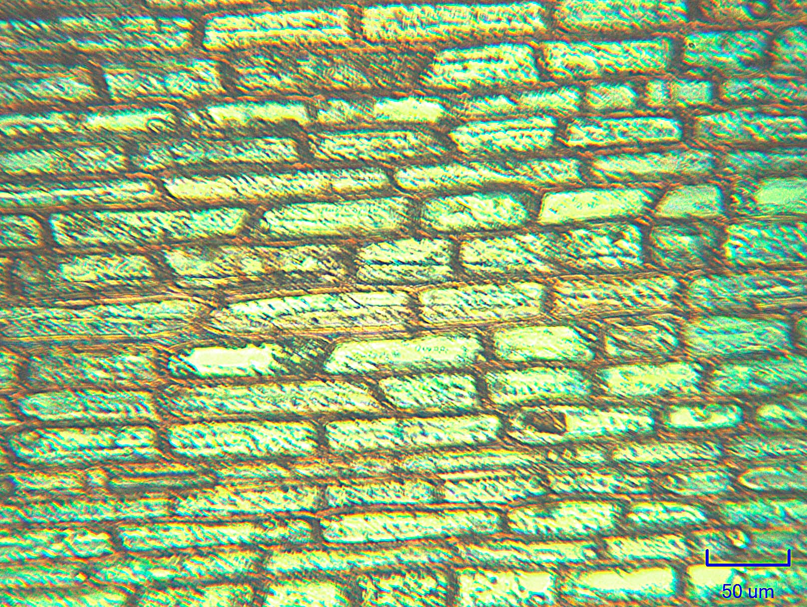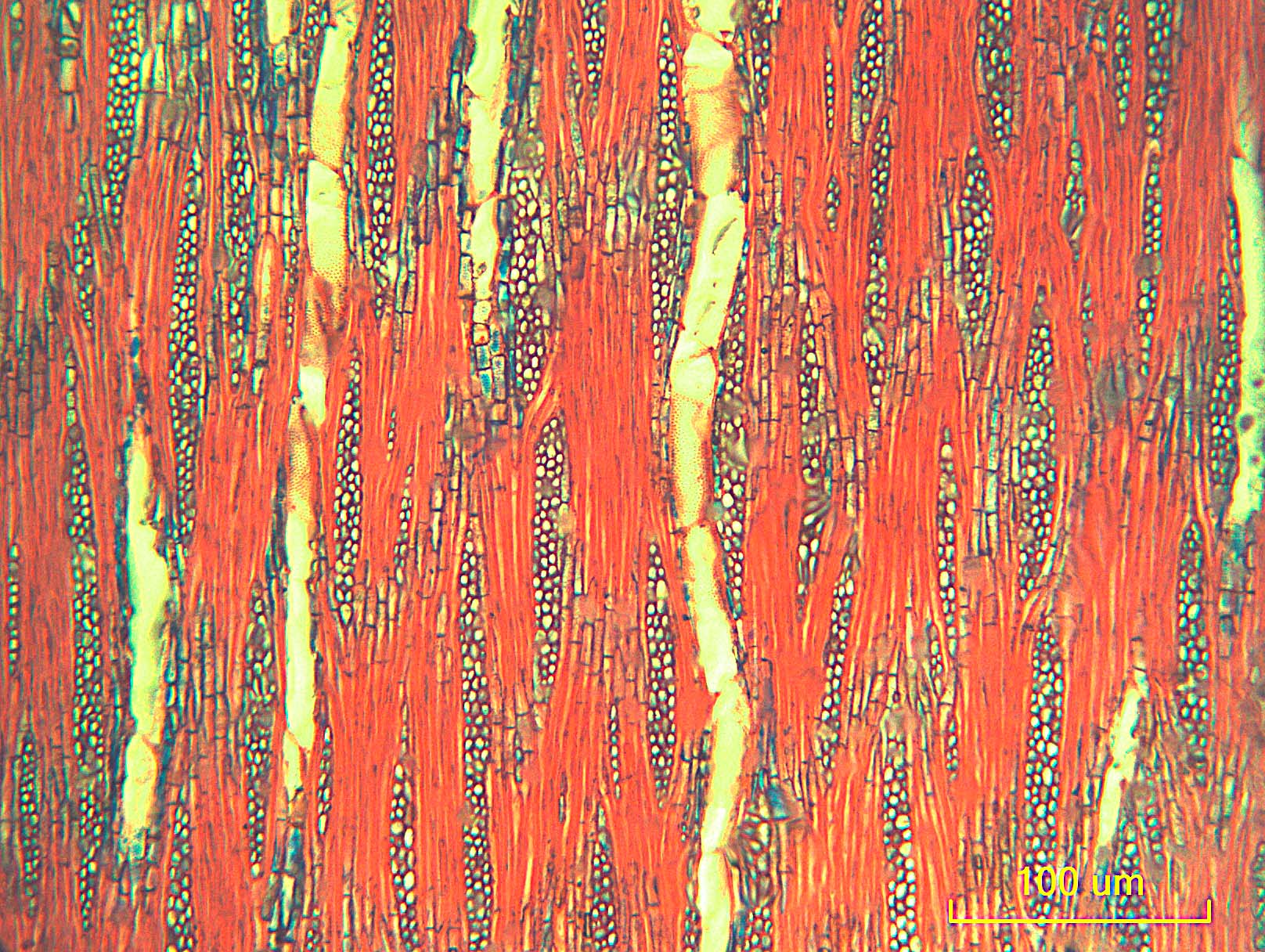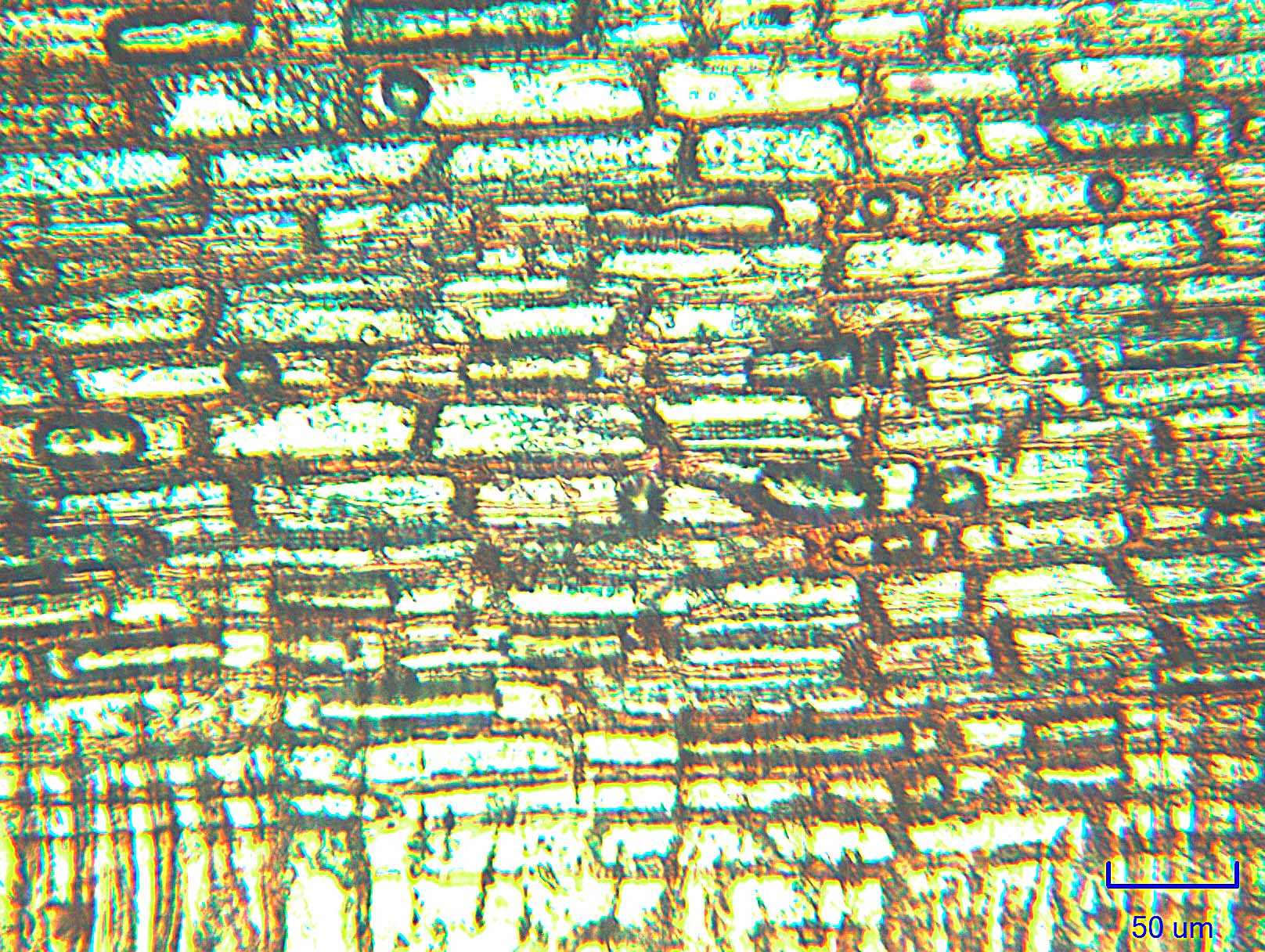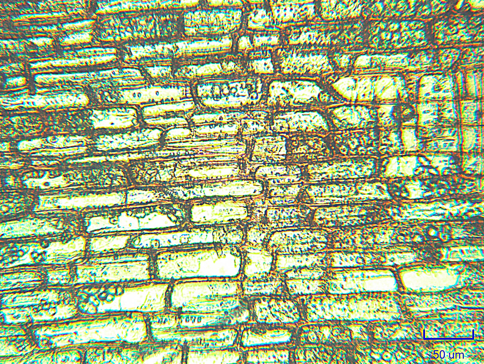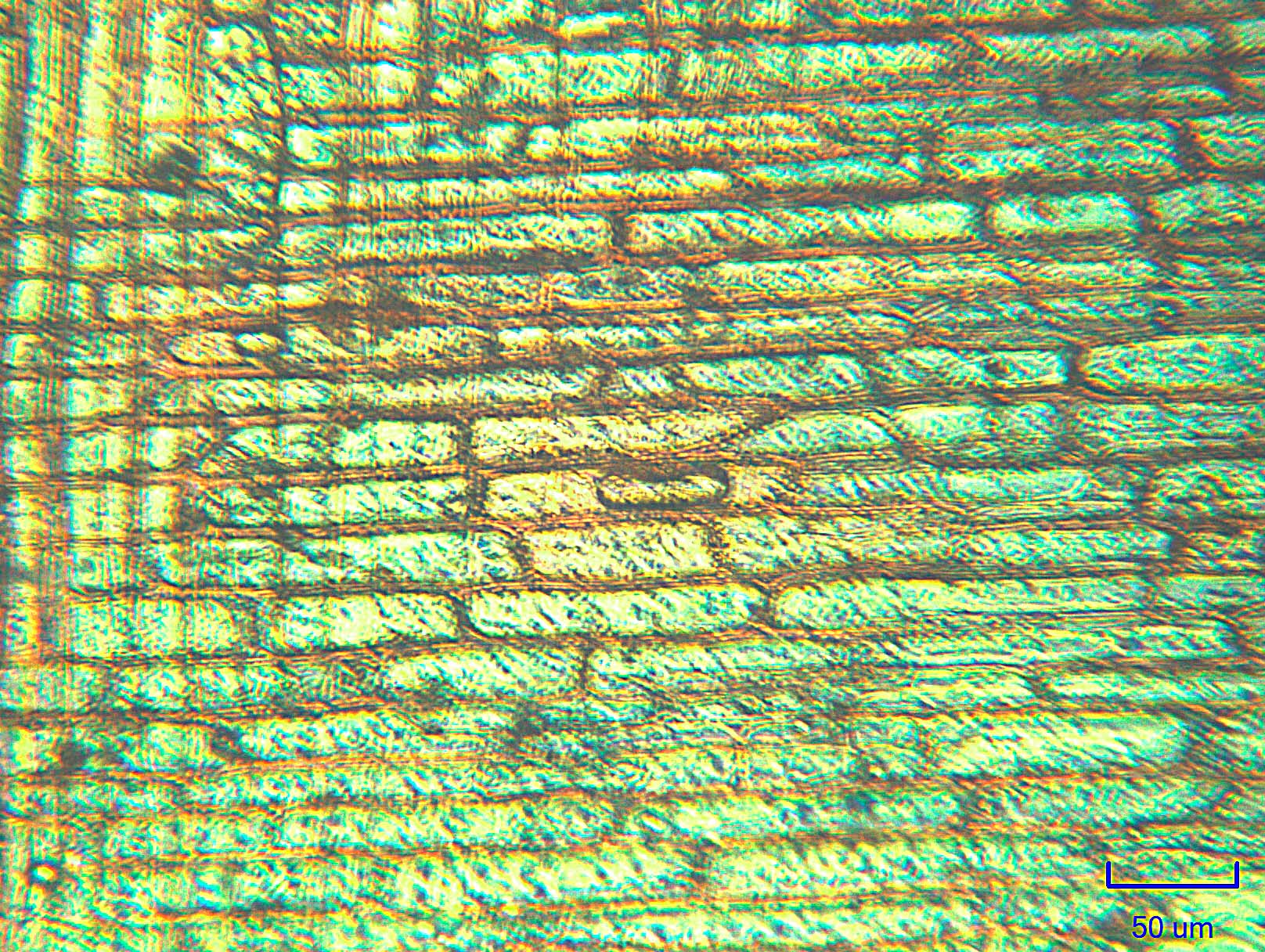 - 107 - Cuerpo del radio con células procumbentes con 2-4 filas de células verticales y/o cuadradas marginales