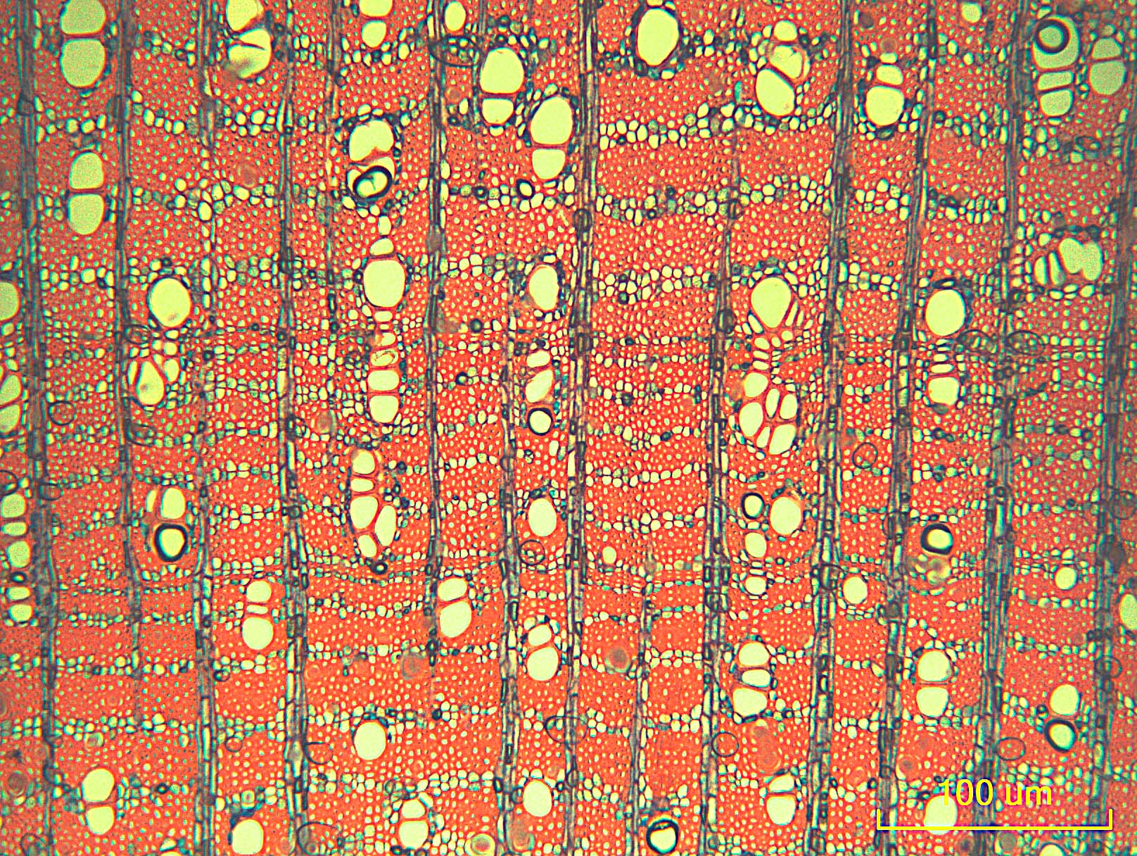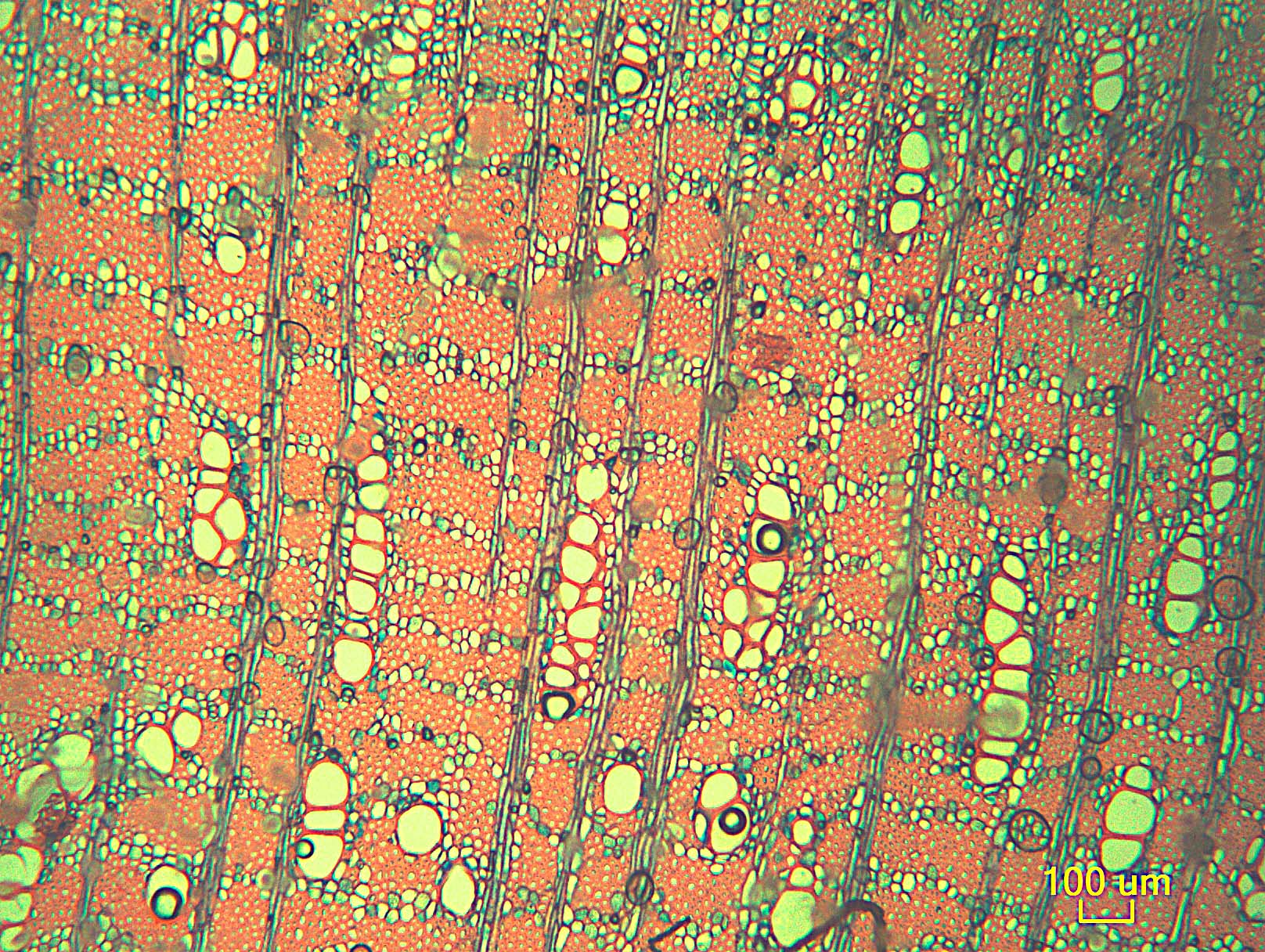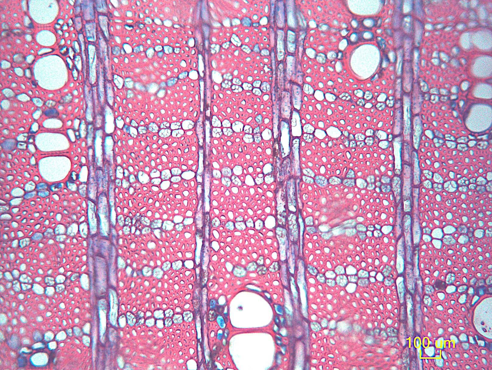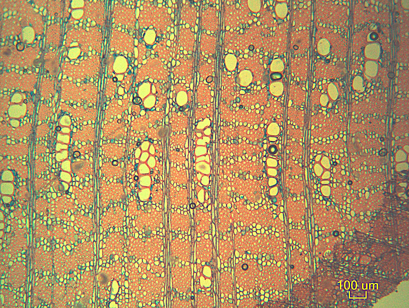- 7 - Vasos (poros) en patrones radiales o diagonales