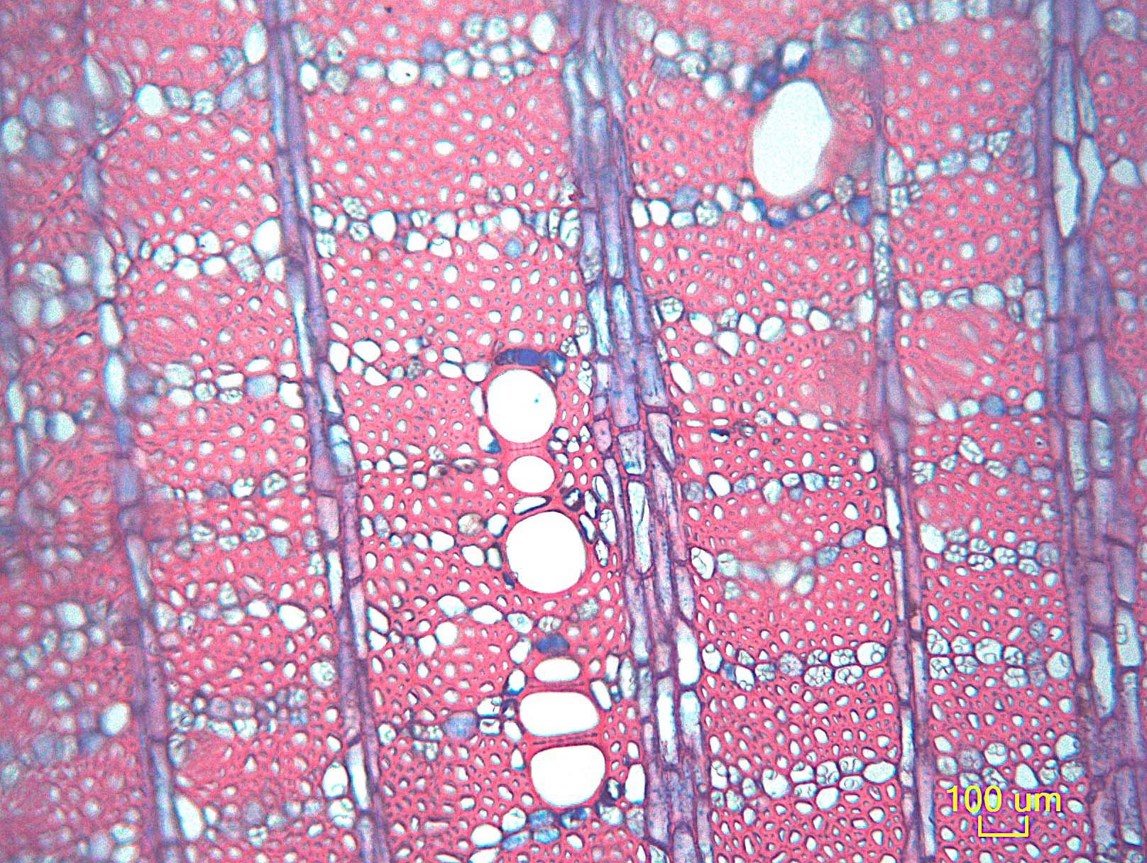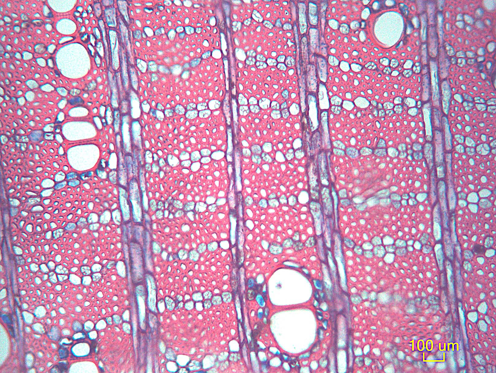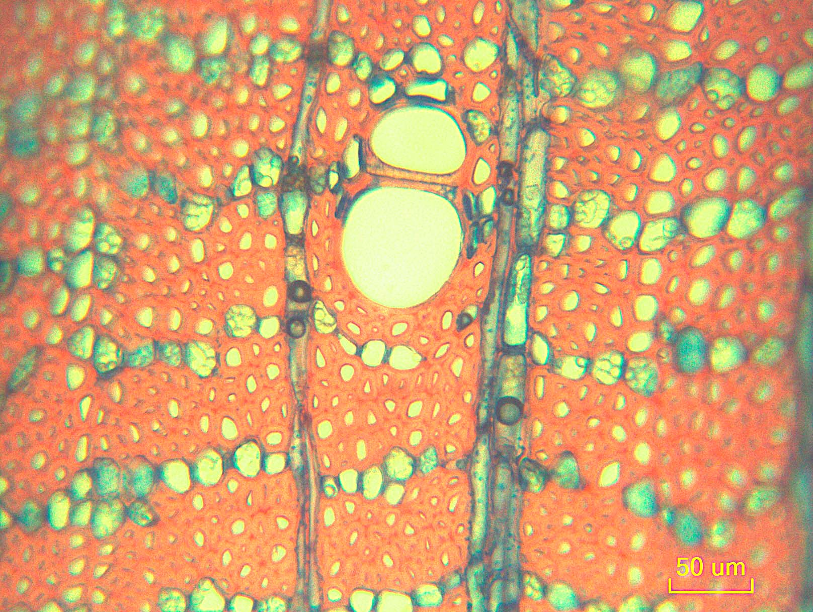 - 7 - Vasos (poros) en patrones radiales o diagonales