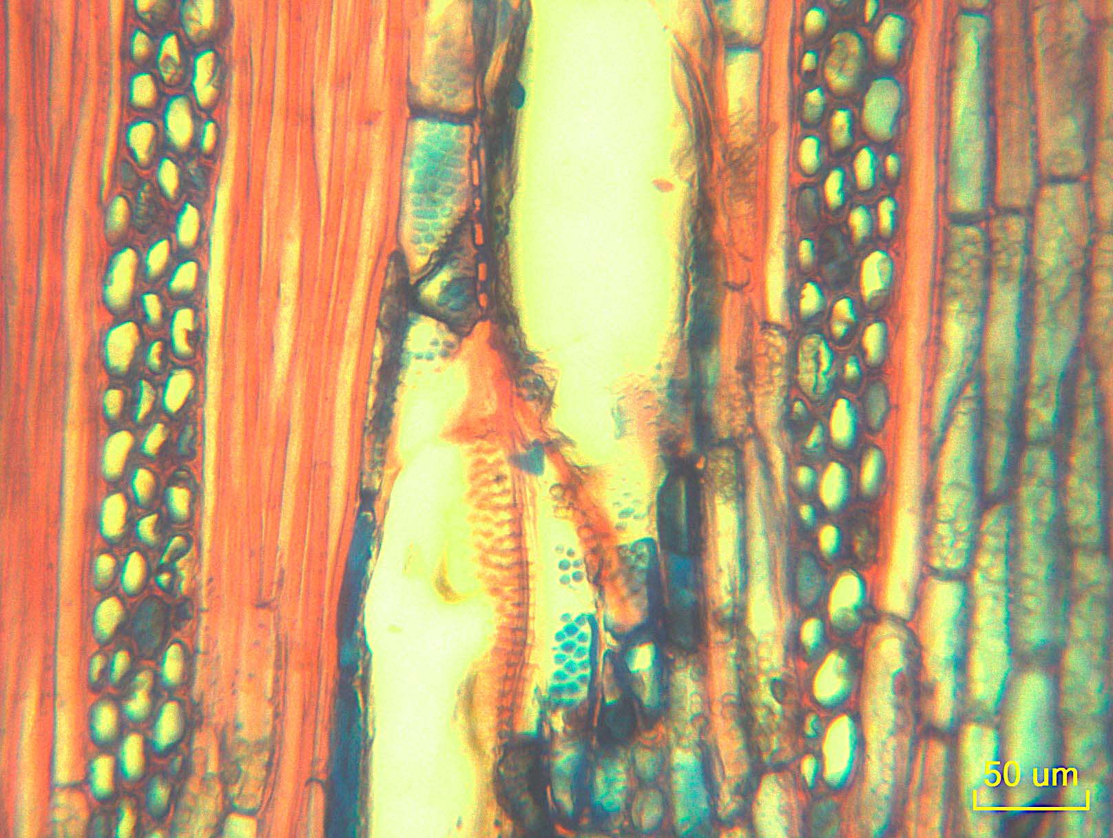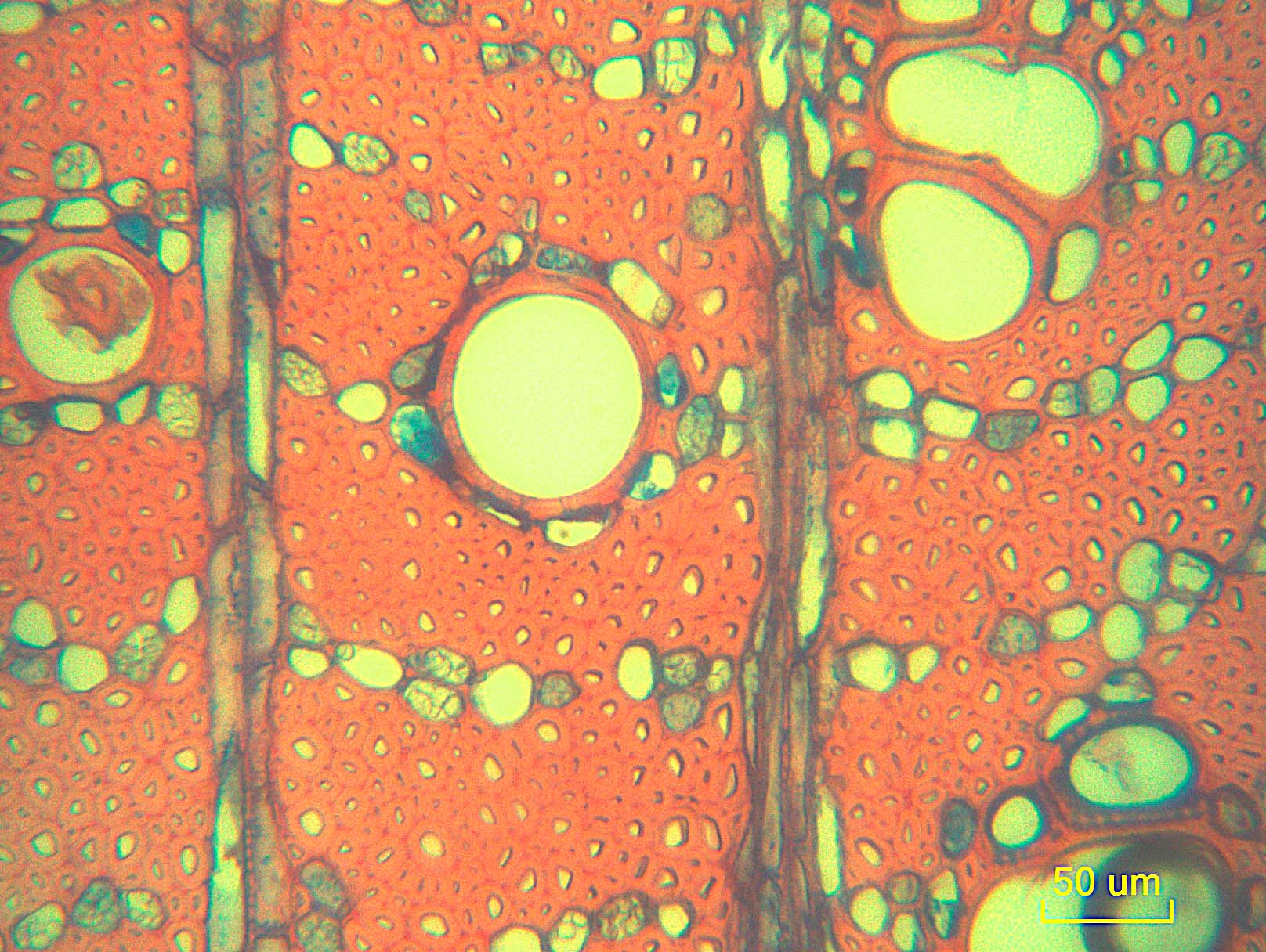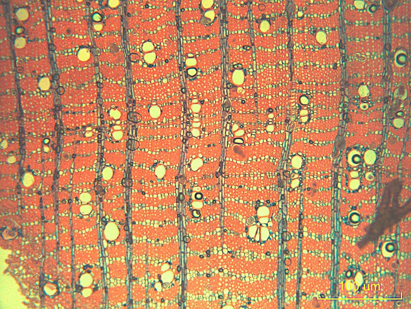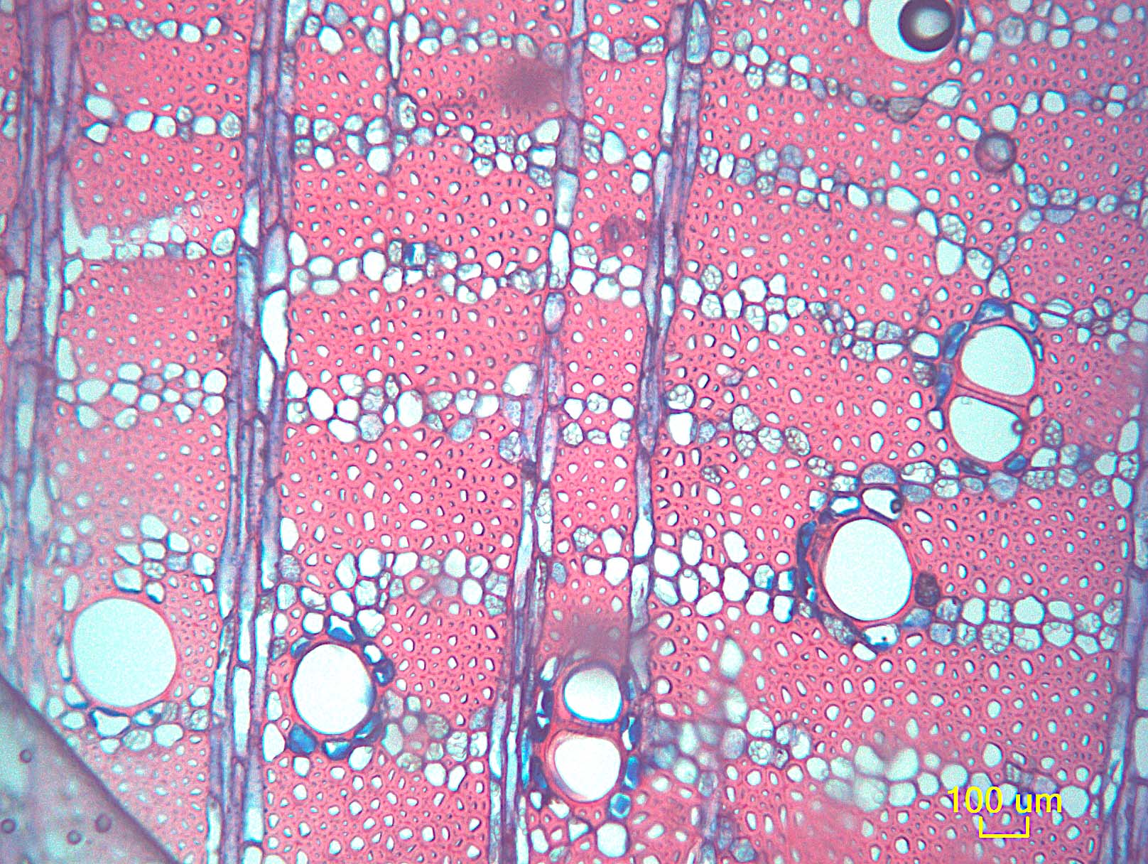 - 7 - Vasos (poros) en patrones radiales o diagonales